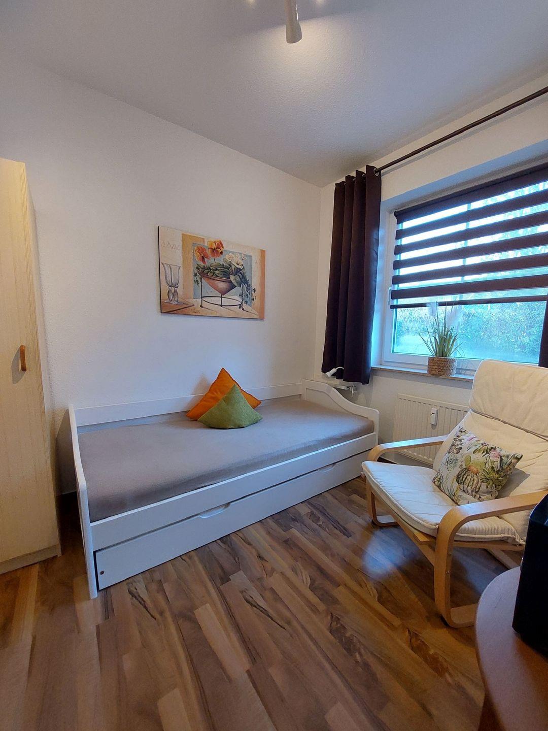 Ein weiteres nach Norden ausgerichtetes Zimmer kann als Schlaf- oder Kinderzimmer genutzt werden.