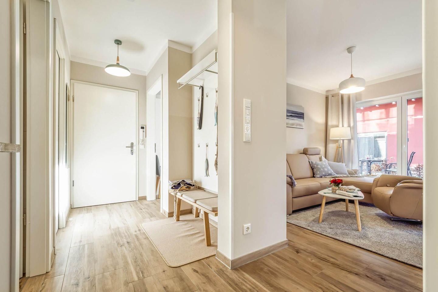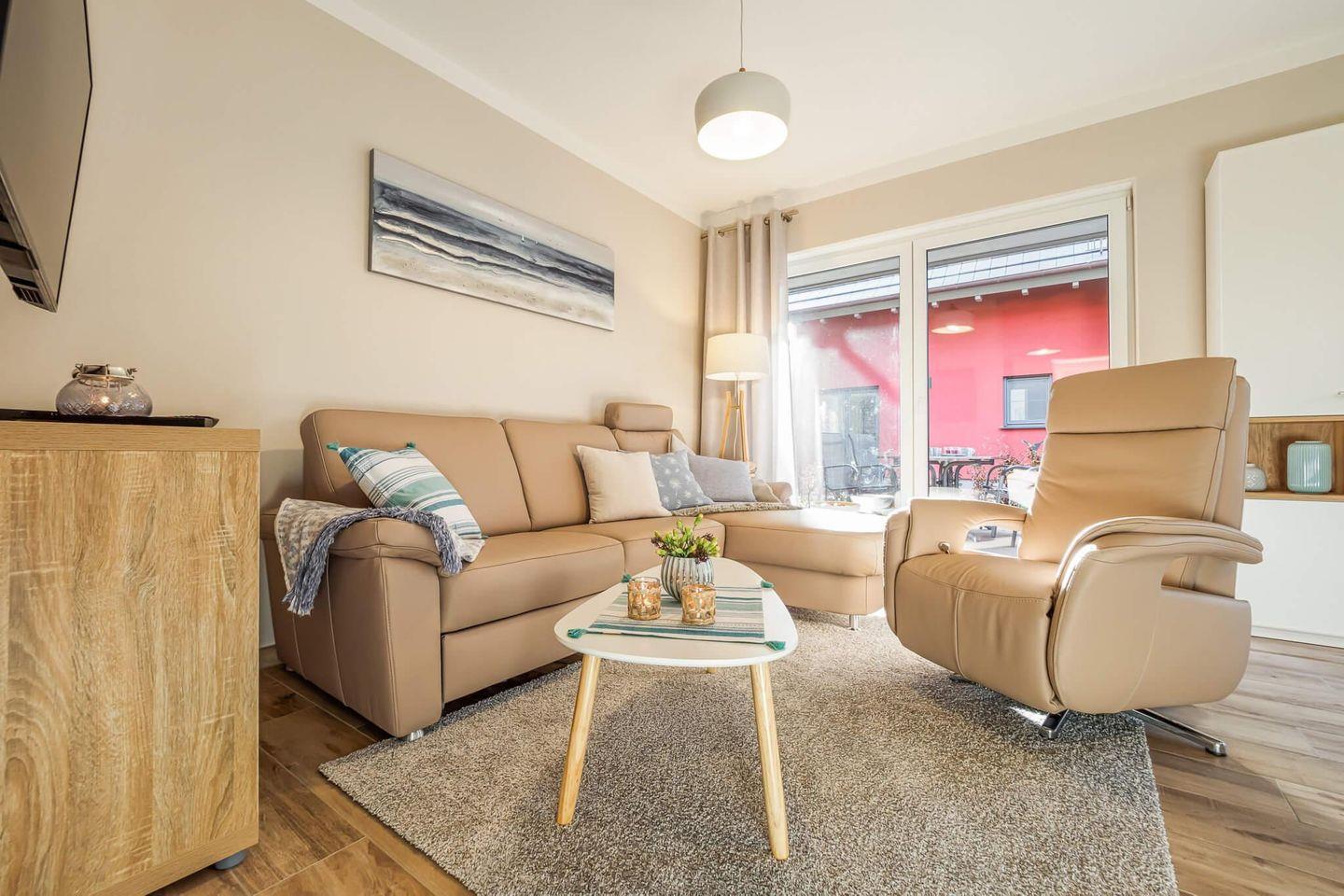 Moderne Ferienwohnung "Seebrise" in Zingst, nur 2-3 Minuten vom Ostseestrand entfernt, mit Terrasse und moderner Ausstattung.