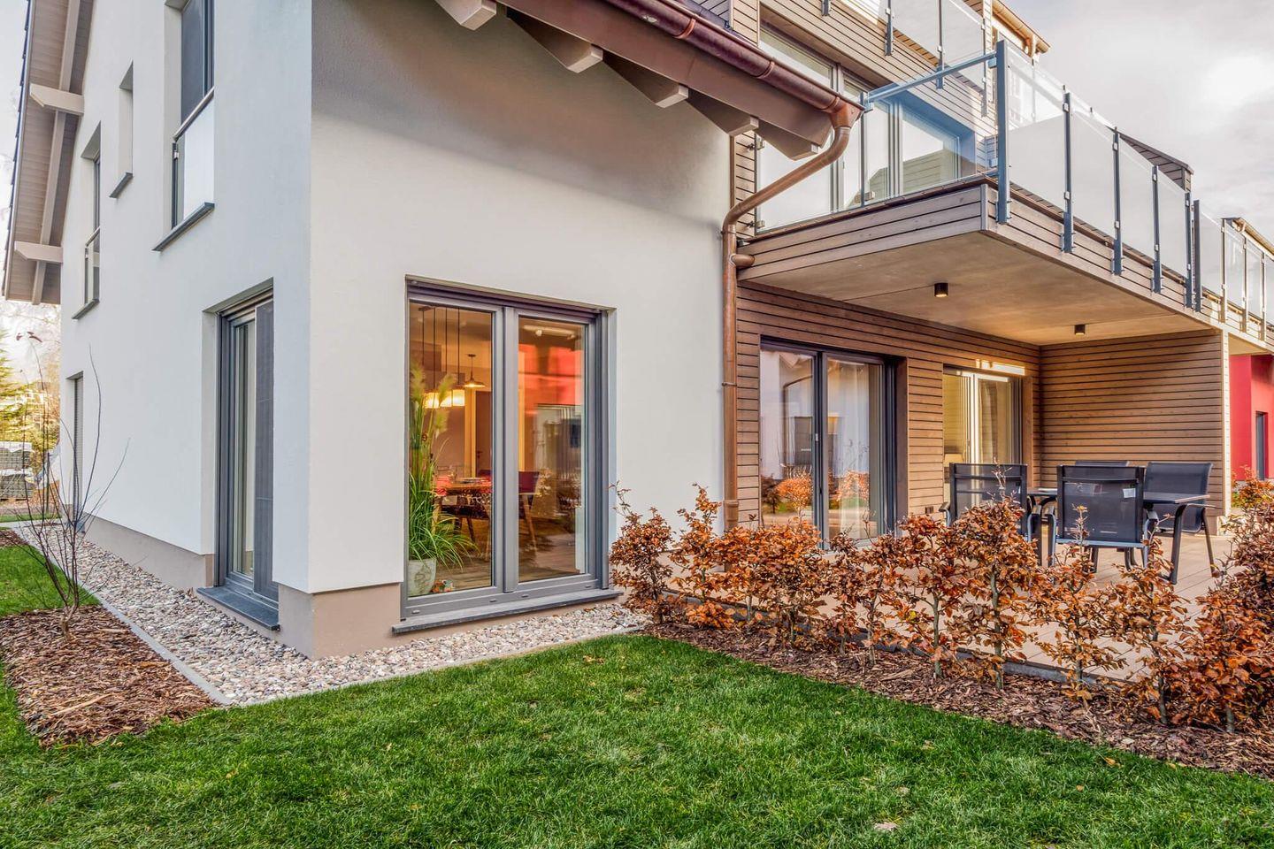 Die moderne Ferienwohnung wurde 2019 erbaut und punktet mit einem stilvollen, offenen Wohnkonzept, das nahtlos Wohn- und Essbereich miteinander verbindet. Die gut ausgestattete Küche lässt keine Wünsche offen und bietet unter anderem einen Induktionsherd, einen Backofen, eine Spülmaschine sowie einen Kühlschrank mit Gefrierfach. Genießen Sie Ihre Mahlzeiten auf der gemütlichen Terrasse, ausgestattet mit Gartenmöbeln und einem Grill.