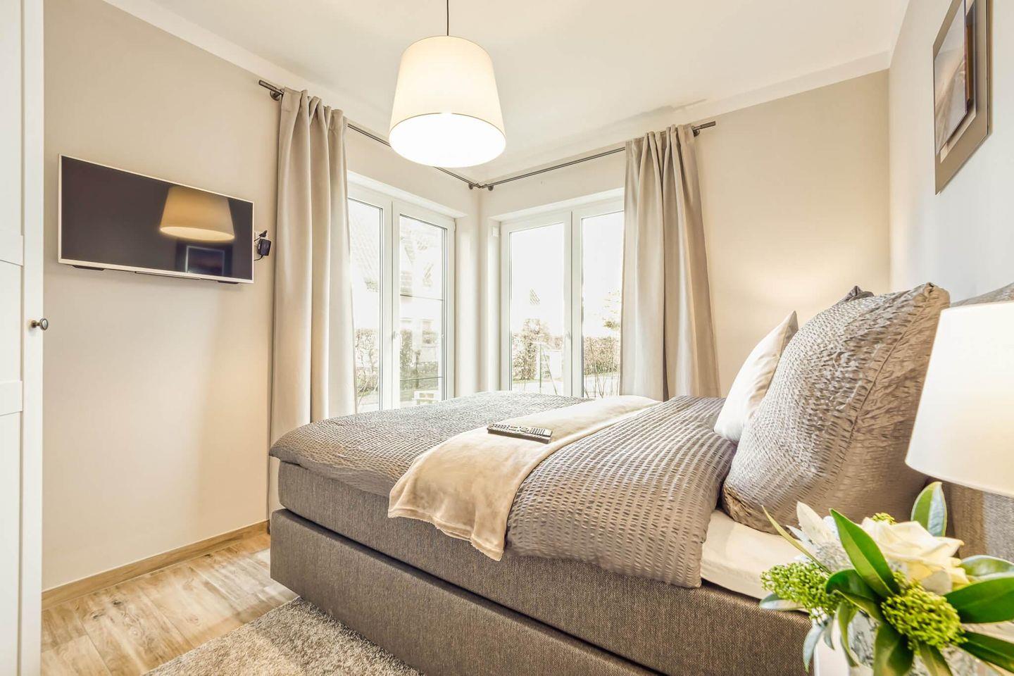 Es gibt 2 liebevoll eingerichtete Schlafzimmer mit TV und Boxspringbetten.