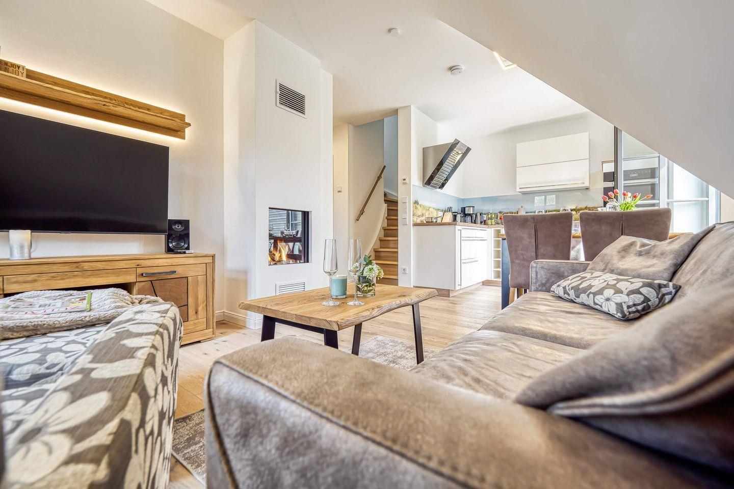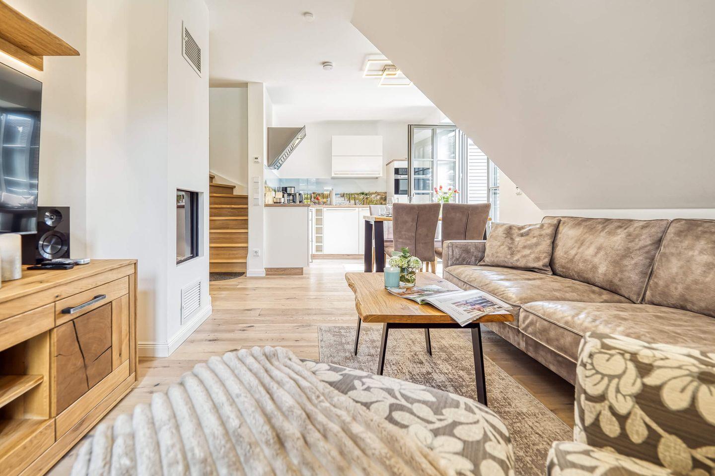 Die hochwertig eingerichtete Maisonette-Ferienwohnung mit Fußbodenheizung für 4 Personen liegt im Dachgeschoss eines modernen Landhauses, das 2022 fertiggestellt wurde und ist nach Südwesten ausgerichtet. Die strandnahe Lage der Wohnung (ca. 300m, zu Fuß ca. 5 Minuten), wobei auch der Bäcker (ca. 200m), das Zentrum mit Geschäften und zahlreichen Restaurants (ca. 400m) sowie der Bodden (ca. 500m) nicht weit sind, bietet beste Bedingungen für einen erholsamen Urlaub in Zingst.