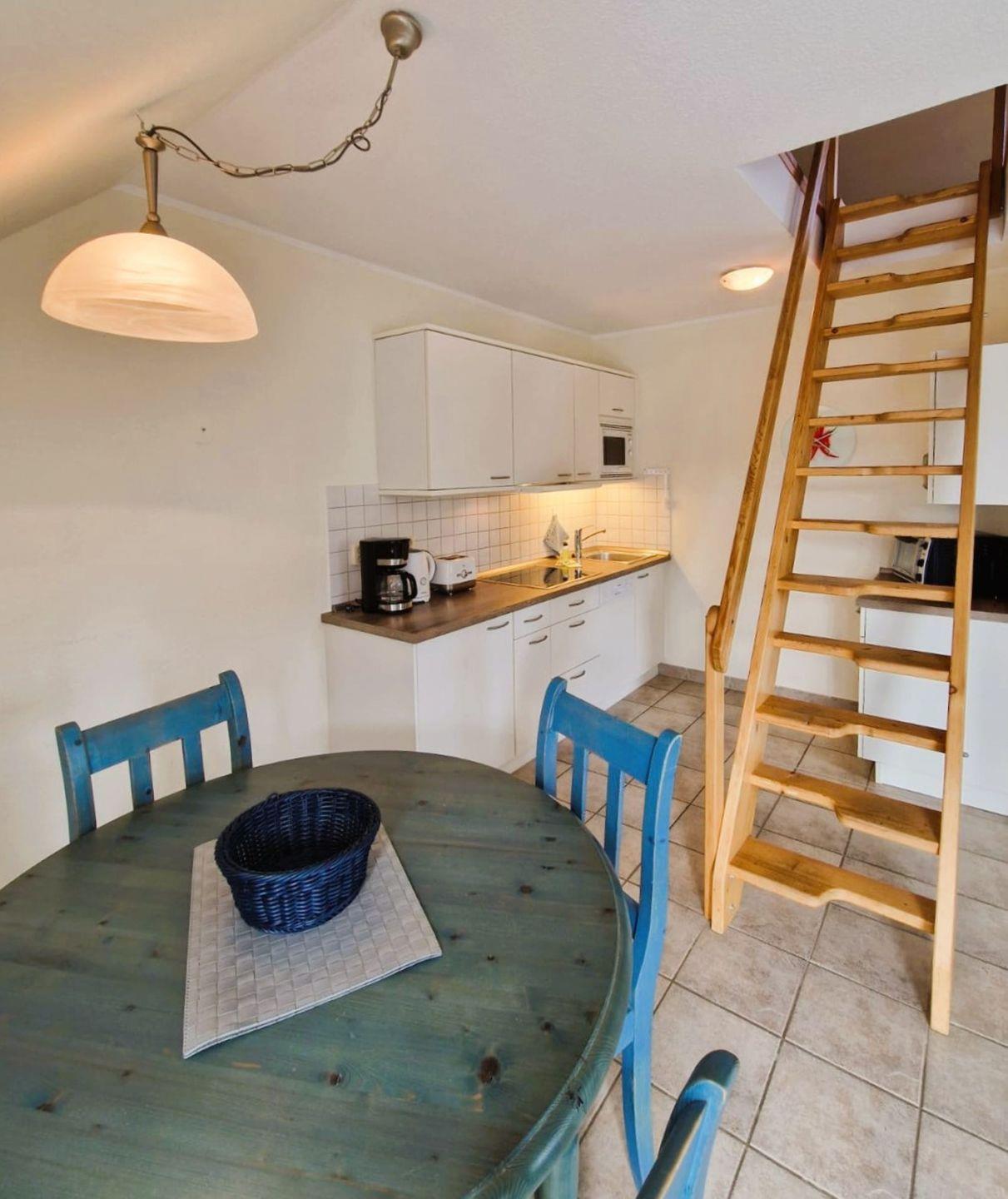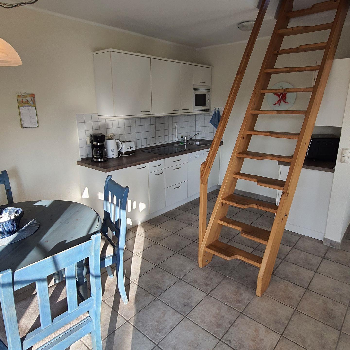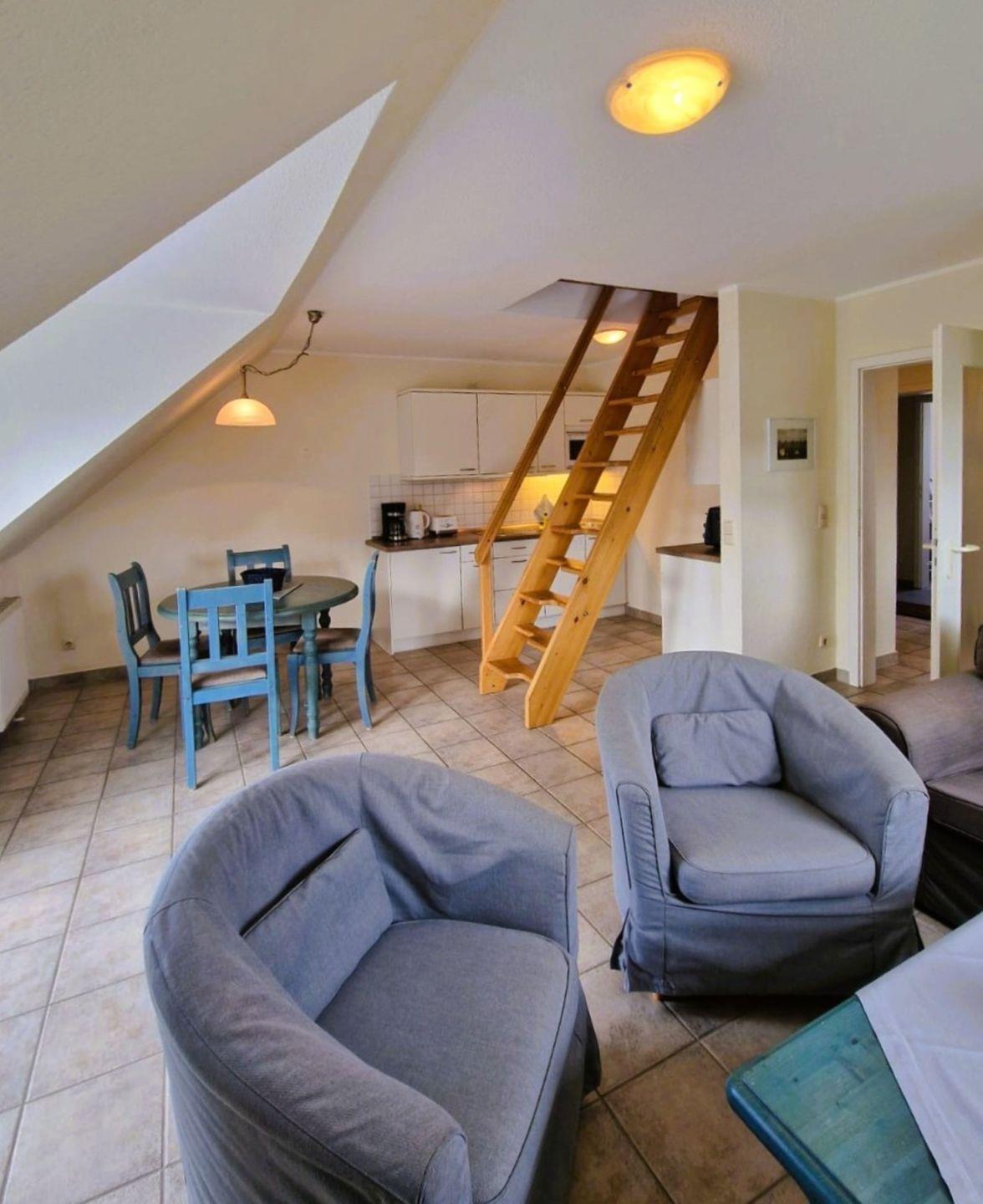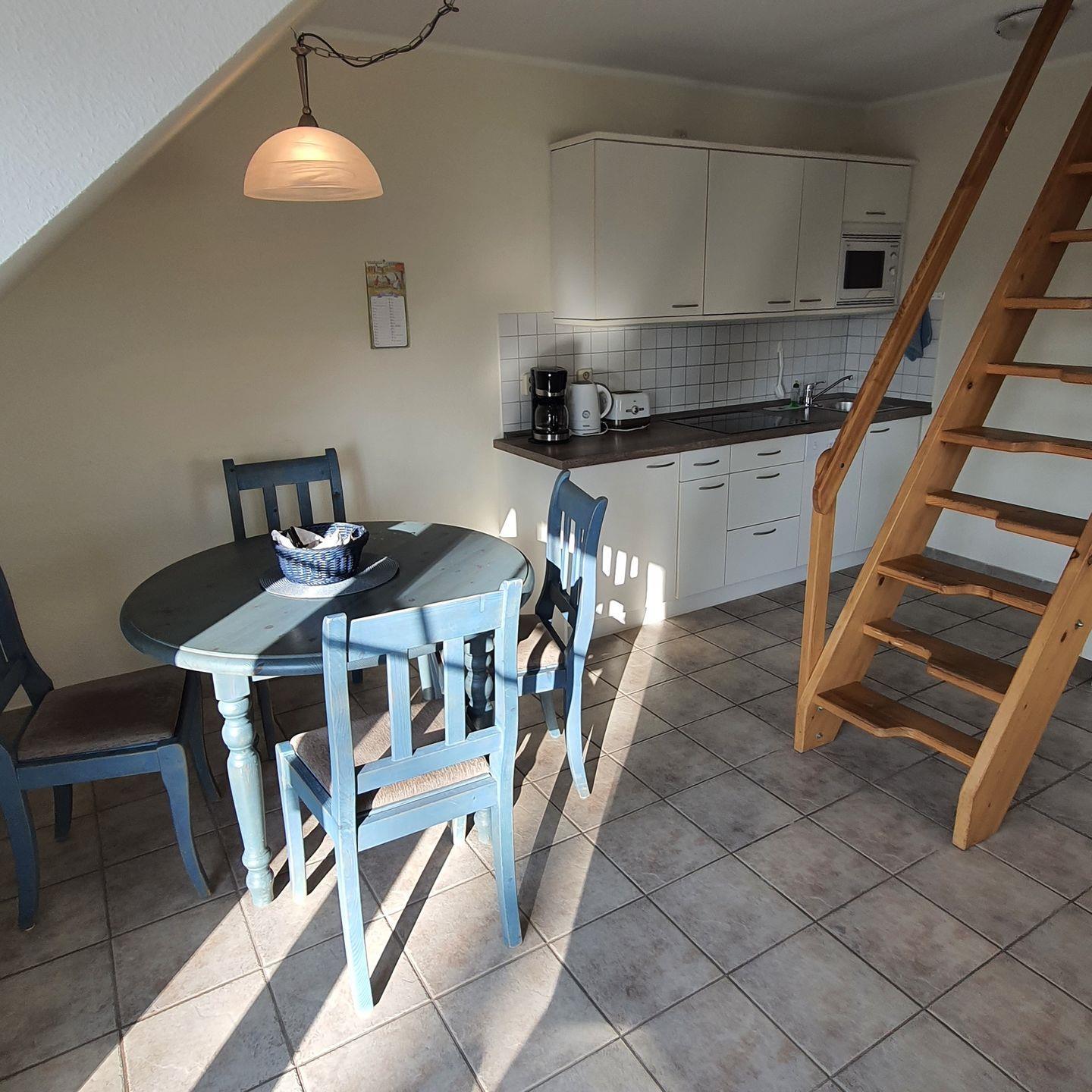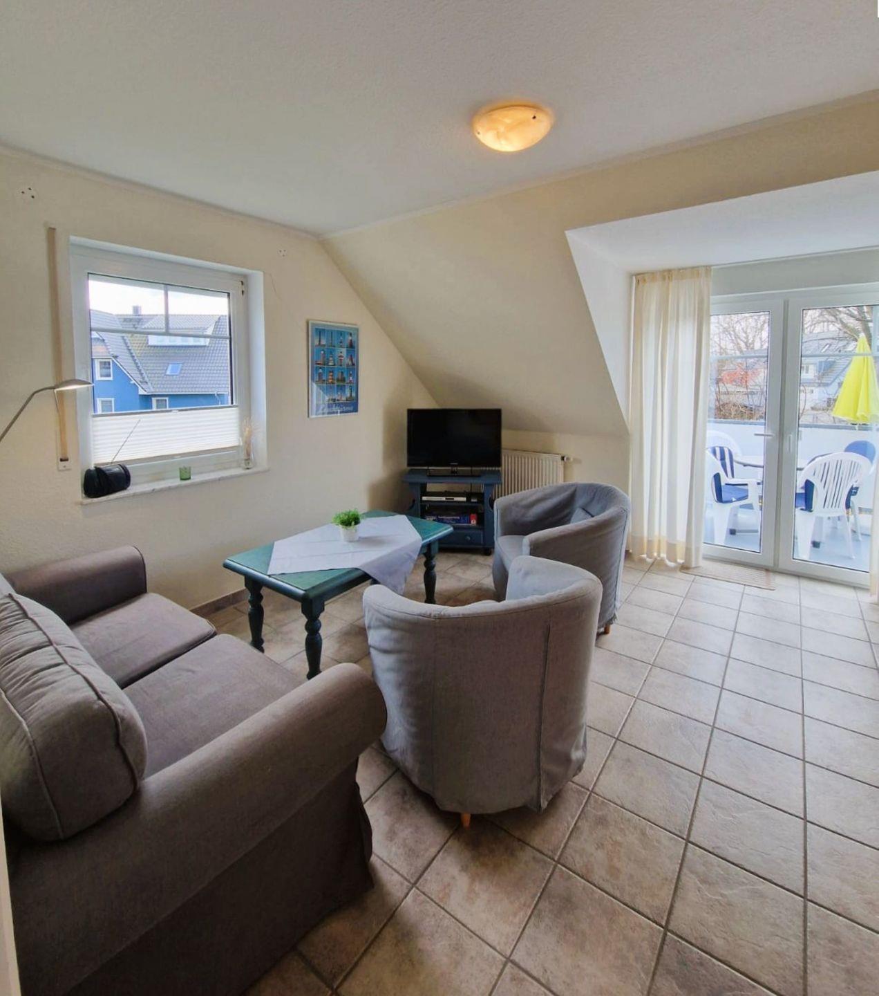 Gemütliche Ferienwohnung in einem Appartementhaus in Strandnähe, ca.68 m² groß,OG,Balkon, Wohnzimmer mit kompletter Küchenzeile, SAT-TV,Dusche/WC, Schlafzimmer,-Obergeschoß: offenes Schlafzimmer, Achtung!! steile Spartreppe ins OG, Kinderbett und Hochstuhl auf Anfrage, Bettwäsche und Handtücher bitte mitbringen, 1 PKW-Stellpatz Nr. 24, Fahrradraum vorhanden. Der Strand ist ca. 200 m entfernt