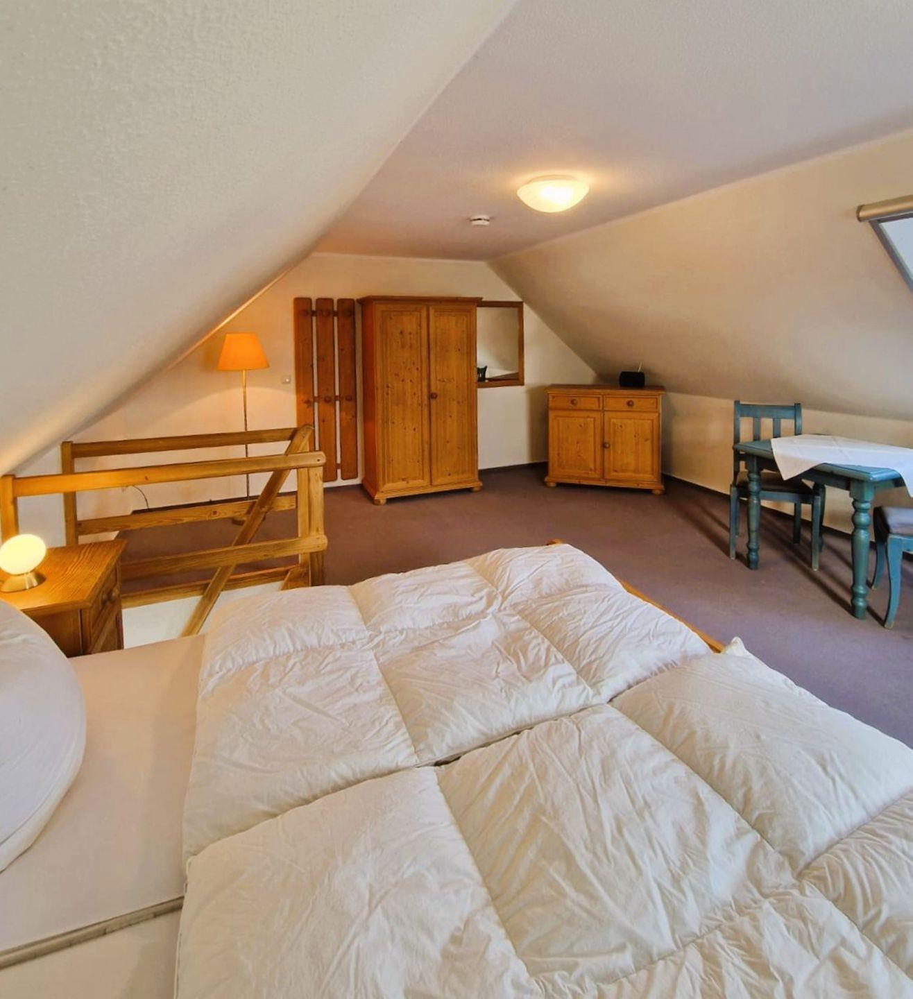 Obergeschoß: offenes Schlafzimmer, Achtung!! steile Spartreppe ins OG,