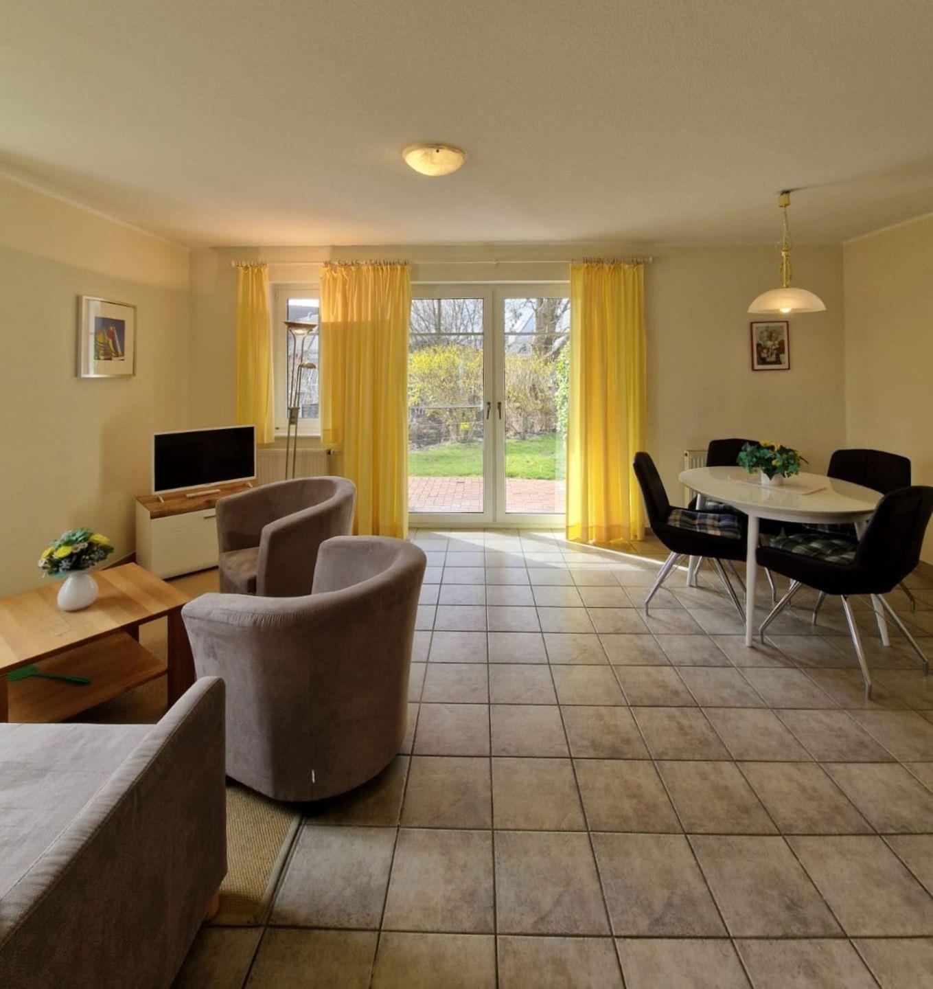 Gemütliche Ferienwohnung in einem Appartementhaus in Strandnähe, ca.50 m², EG, Terrasse, Wohnzimmer mit komplett ausgestatteter Küchenzeile, Schlafcouch, SAT-TV, Schlafzimmer mit Ehebett, Dusche/WC, Fön, Bettwäsche und Handtücher bitte mit bringen, 1 PKW-Stellplatz Nr. 21 und Fahrradraum vorhanden. Haustiere nicht erlaubt, Nichtraucherwohnung, der Starnd ist ca. 200 m entfernt.