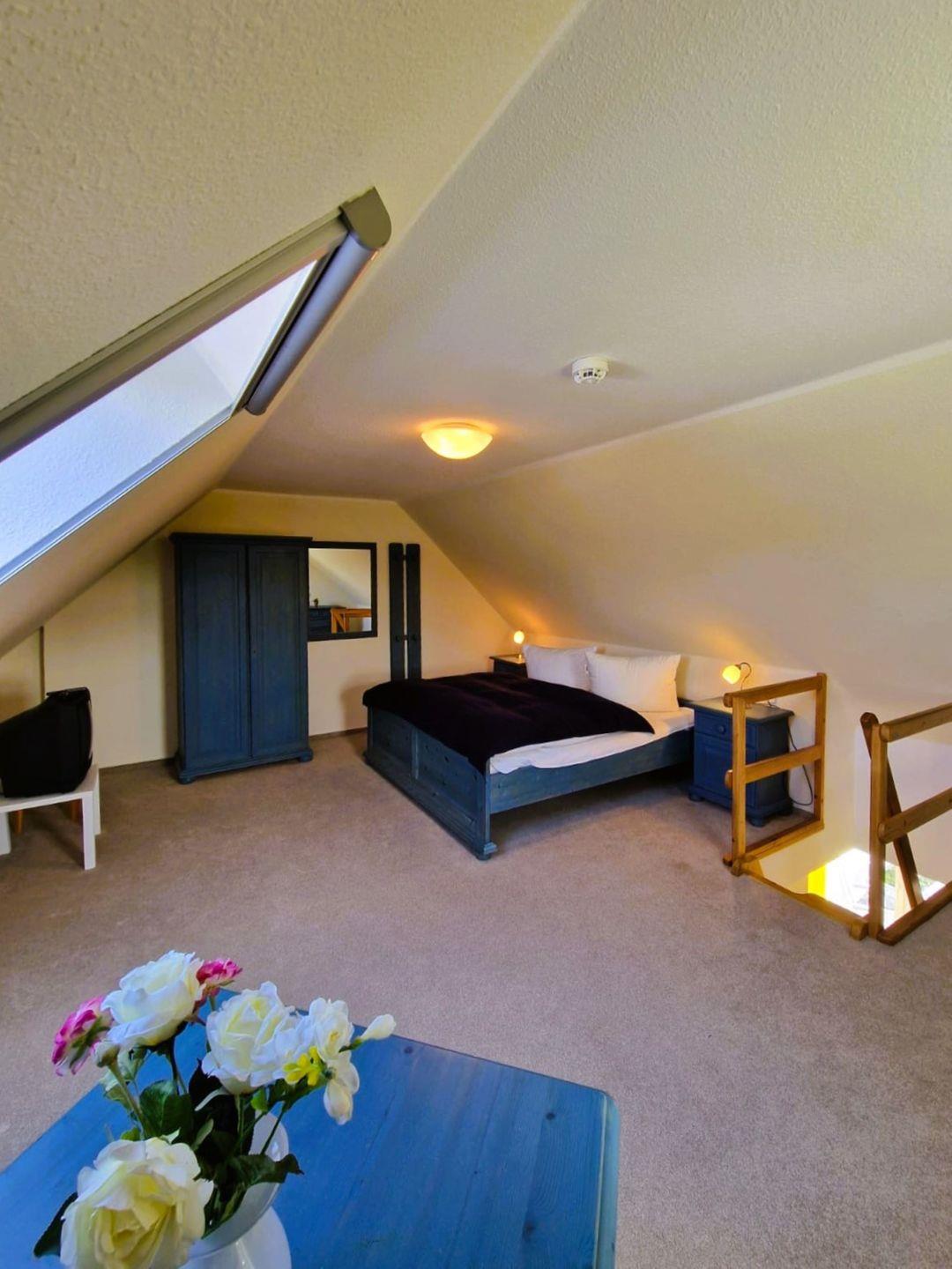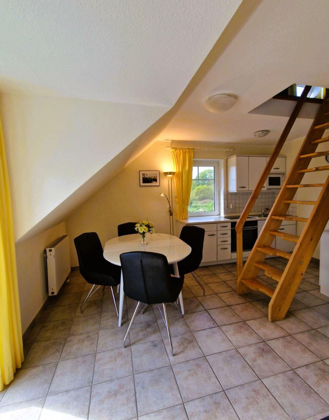 gemütliche Ferienwohnung in einem Appartementhaus, ca.70 m², OG, Balkon, Wohnzimmer mit Küchenzeile (Kühlschrank ohne Gefrierfach), Schlafcouch, SAT-TV, Dusche/WC, Fön, Schlafzimmer, Obergeschoß: offenes Schlafzimmer, steile Spartreppe ins OG!