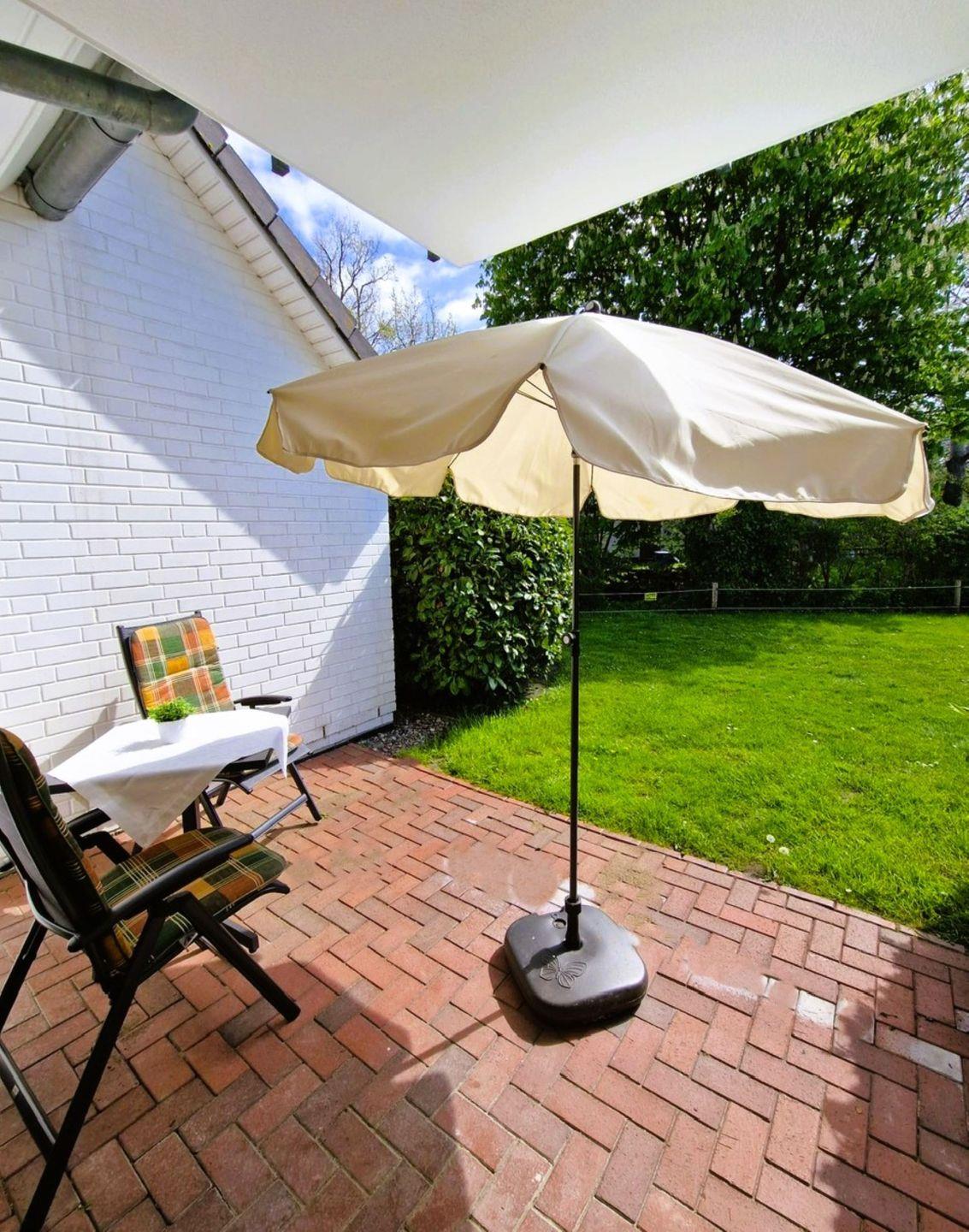 Gemütliche Ferienwohnung in einem Appartementhaus in Strandnähe, nur 150m zum Strand, ca.59 m² groß, Erdgeschoss mit Terrasse, die offene Küchenzeile ist mit Spühlmaschine, Mikrowelle und E-Herd ausgestattet, ohne Backofen. Im Schlafzimmer befindet sich ein Doppelbett (1,80m x 2,00 m) bodentiefe Fenster mit Aussenjalousie im Wohnzimmer und Schlafzimmer lassen viel Licht in die Wohnung. Im innenliegenes Bad befinden sich Dusche/WC. Es gehört ein PKW Stellplatz mit der Nr. 20 zur Wohnung.