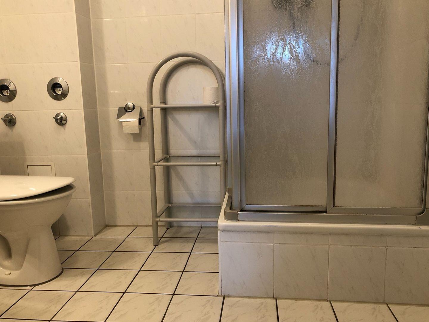 Das Badezimmer ist mit einer praktischen Dusche ausgestattet.