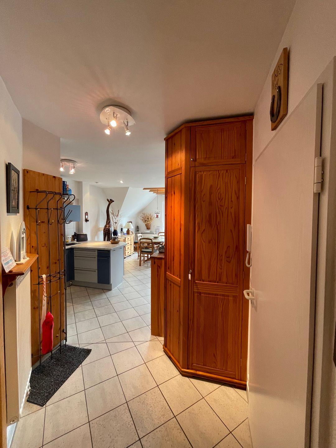 Gemütliche Ferienwohning in einem Appartementhaus, ca.73 m², großer Balkon, bis zum Strand sind es ca.300m, 1 PKW-Stellplatz Nr.5, 1.-Stock: Nichtraucherwohnung, komfortable Ausstattung, Wohnzimmer mit Küchenzeile, SAT-TV, Dusche/WC Waschmaschine/Trockner gegen Gebühr, Schlafzimmer, Obergeschoß: offenes Schlafzimmer mit getrennten Betten, Dusche/WC Bettwäsche und Handtücher bitte mitbringen, WLAN-Internetzugang