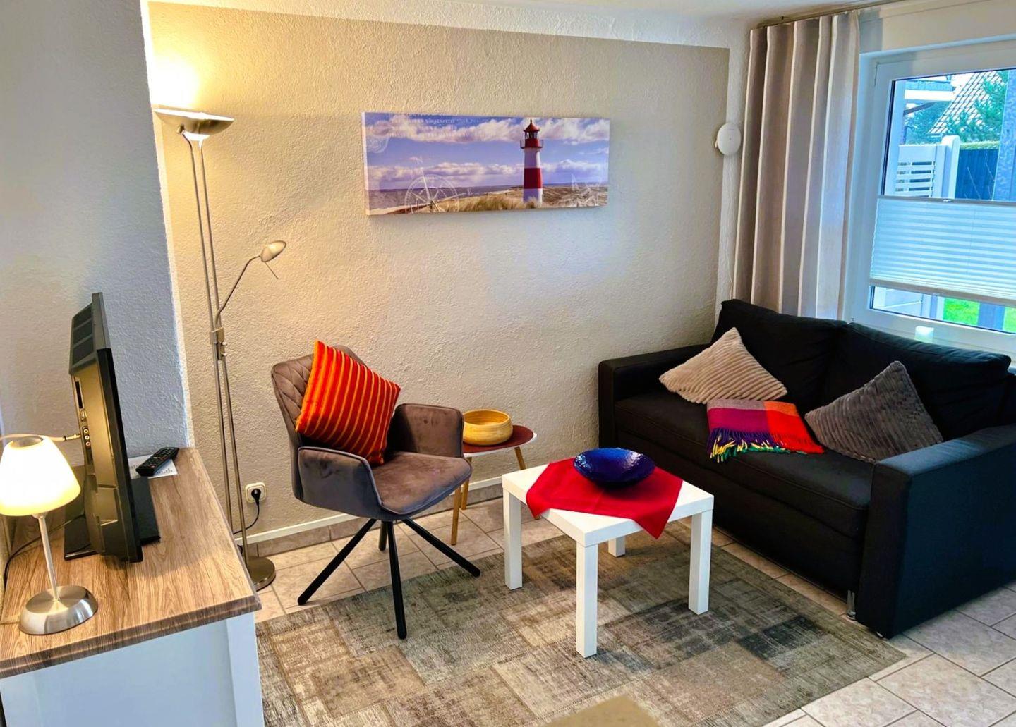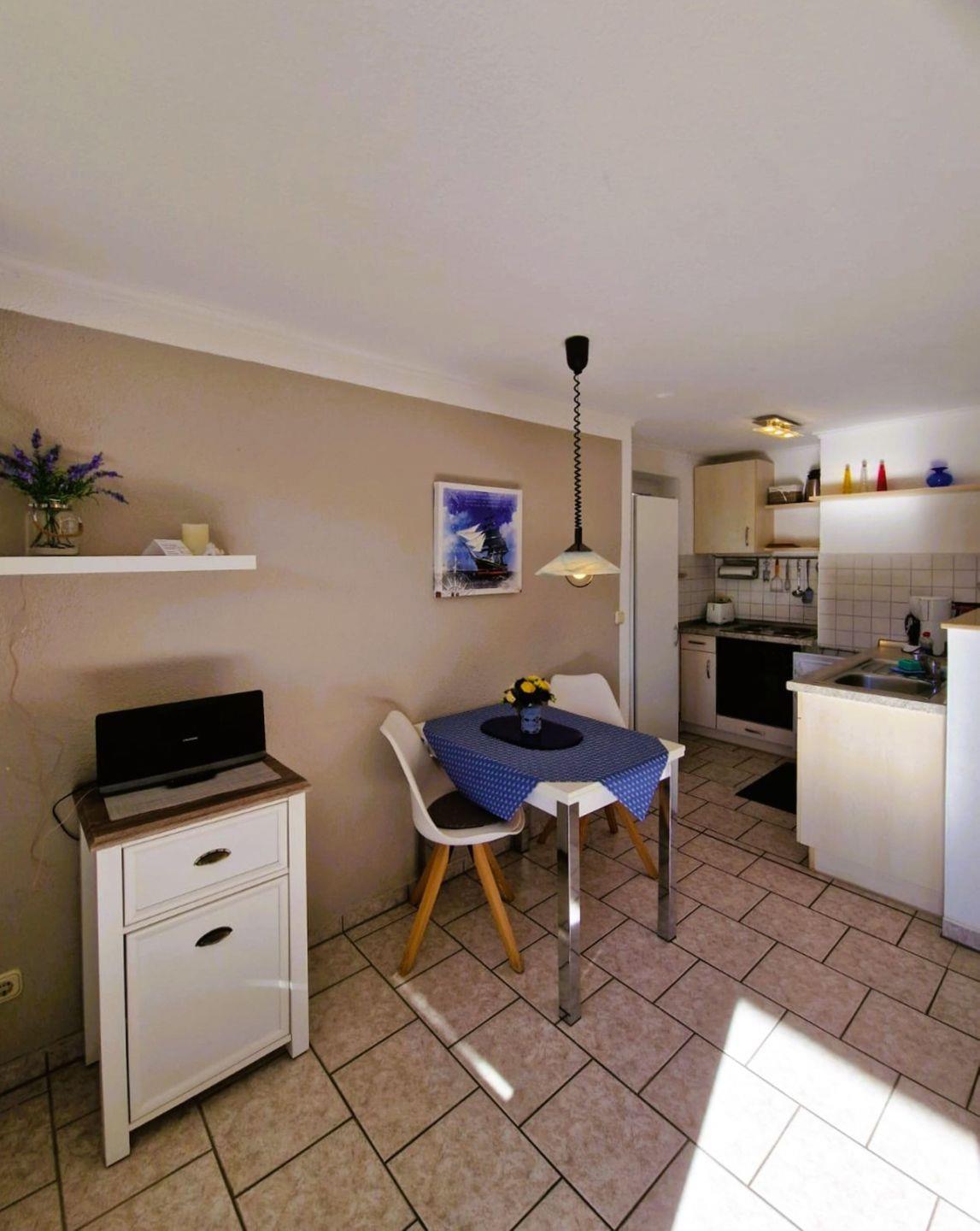 Moderne Ferienwohnung im Ferienhaus (paterre) für max. 2 Personen, ca 50mq, Terrasse, Terrassenmöbel, Sonnenschirm, Insektenschutz,