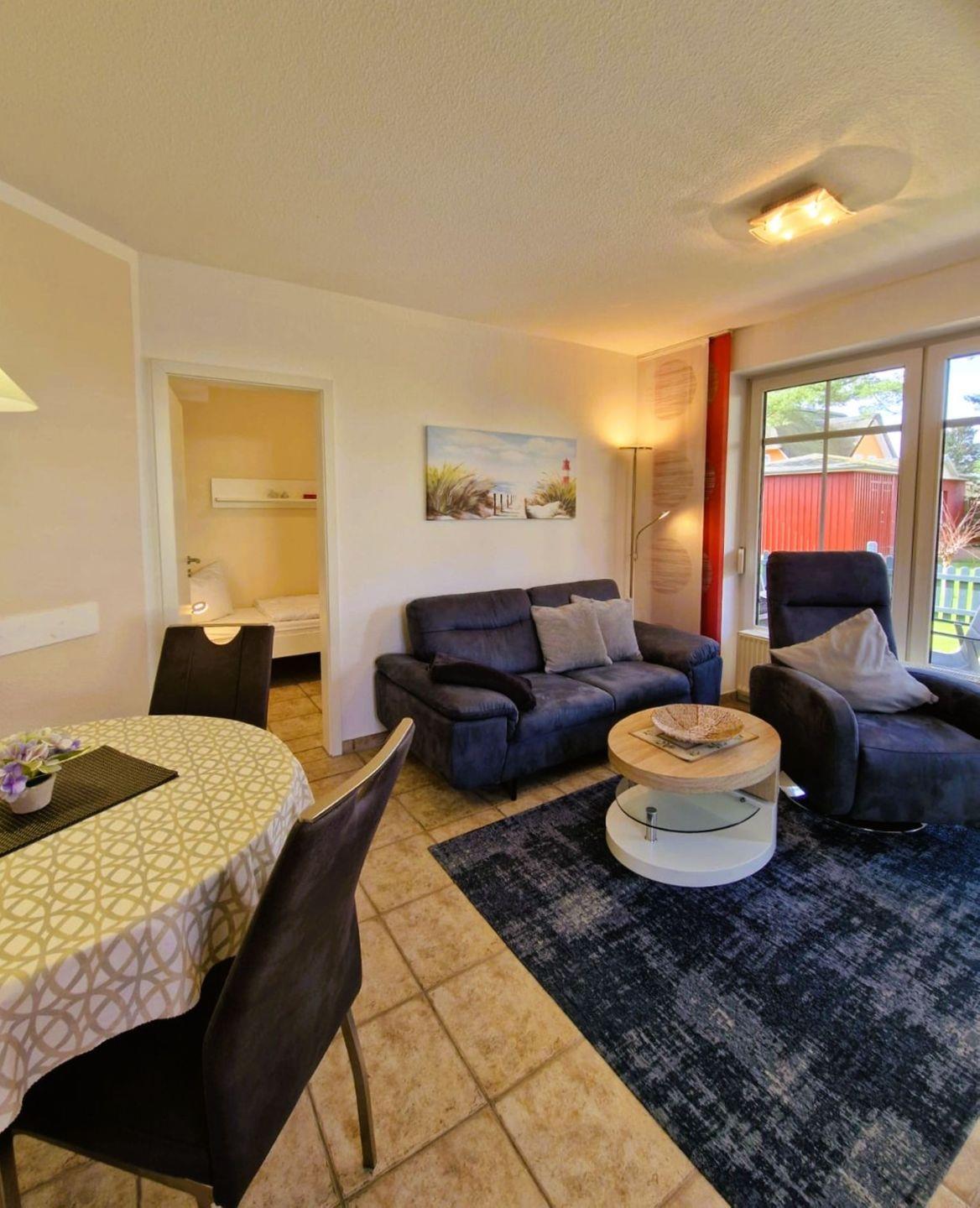 Wohnfläche ca. 56 m², Küche komplett ausgestattet, Wohnzimmer , Sat-TV, Radio mit CD-Player, DVD-Player, Südwestterrasse mit Terrassenmöbel, Sonnenschirm und 2 Liegen, Schlafzimmer mit Ehebett und Schranksafe, Schlafzimmer mit Einzelbett für 1 Person, Bad mit Dusche/WC, Handtuchtrockner, Kosmetikspiegel, Waschautomat mit Trockner sind inklusive, Fön,