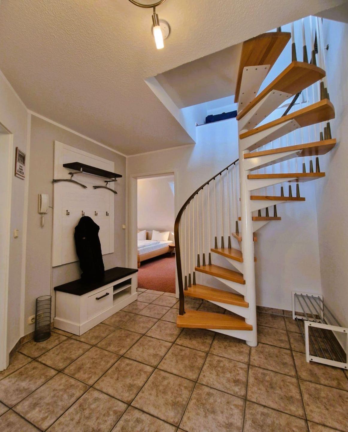 Strandentfernung ca. 600 Meter, 1.Etage, ca 66m² Wohnfläche, Einstufung 2011 "4 Sterne", Süd-Westbalkon mit Balkonmöbel und Sonnenschirm, Wohnzimmer mit Essbereich und komplett ausgestatteter Küchenzeile (E-Herd mit Backröhre, Geschirrspüler, Mikrowelle, Kühlschrank mit Gefrierfach, Kaffeemaschine, Toaster), Sitzecke mit Couch, Sat TV, Radio mit CD Player, DVD-Player, Schlafzimmer mit Ehebett und Schranksafe, Einzelschlafzimmer, Bad mit Dusche/WC, Fön, Handtuchtrockner, Waschmaschine gegen Gebühr, im oberen Geschoß befindet sich das 2.Schlafzimmer mit Ehebett, Sat_TV und Dusche/WC, ein Kinderreisebett und ein Hochstuhl sind ebenfalls vorhanden, jedes Zimmer ist mit Fliegenschutz ausgestattet
