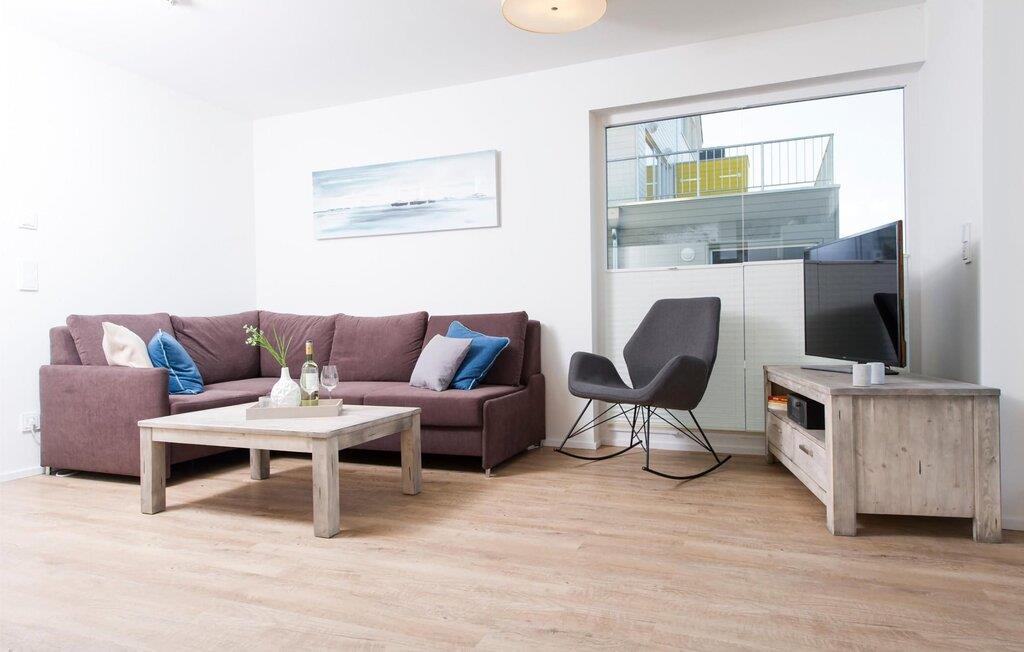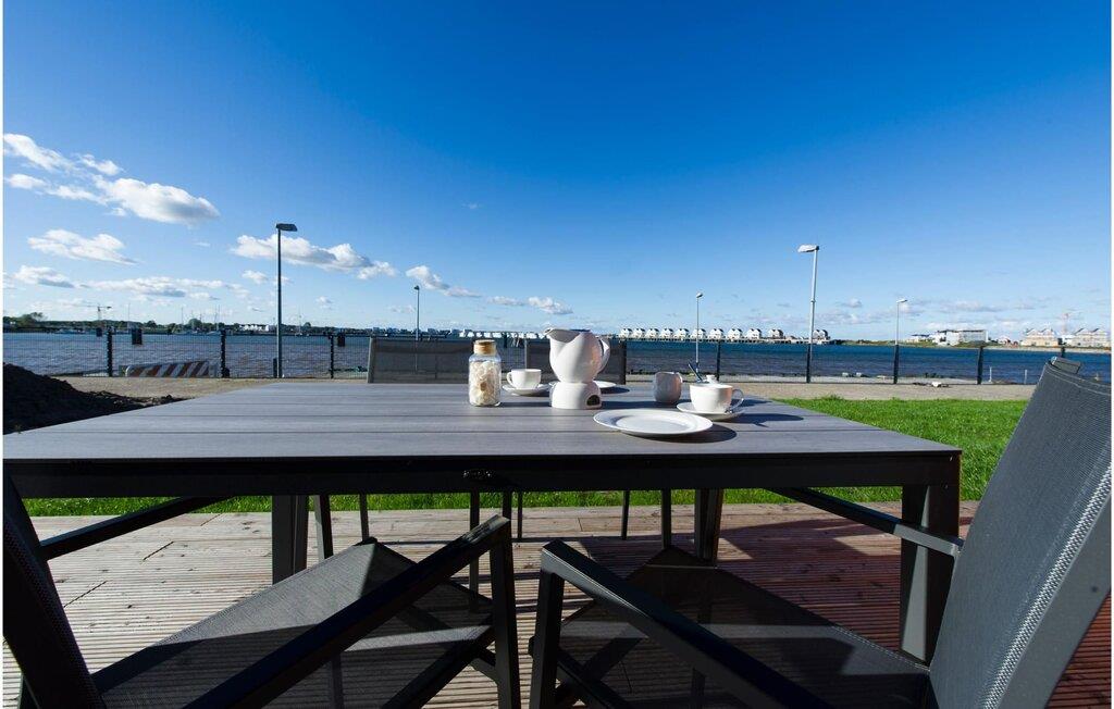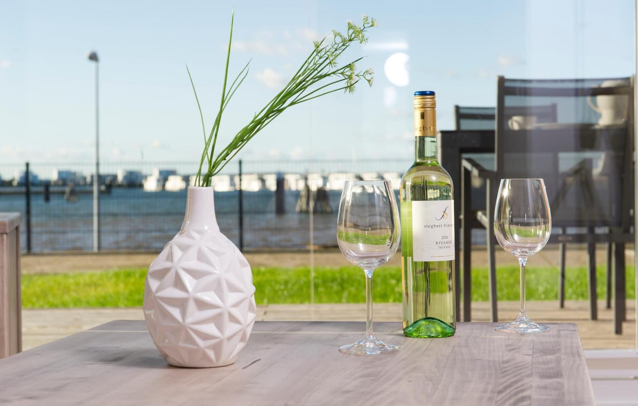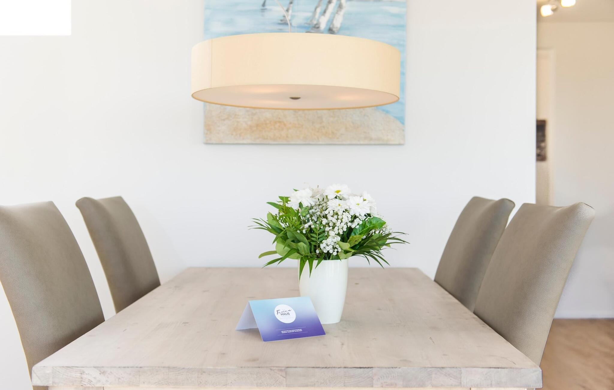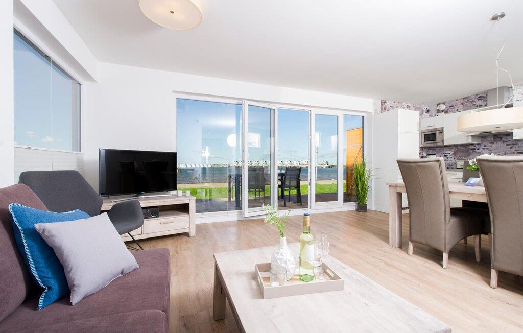 Geist und Seele finden in diesem Urlaubsdomizil den nötigen Ausgleich, denn lichtdurchflutet mit bodentiefer Fensterfront gestaltet sich der einladende Wohn- und Essbereich des Ferienobjekts mit angrenzender Wasserterrasse. Von hier aus lassen sich vorbeifahrende Segelschiffe, Möwen und einmalige Wolkenformationen beobachten. Die frische Ostseeluft klärt die Gedanken und die Weite des Meeres bringt einen zurück zu dem, was wirklich wichtig ist.