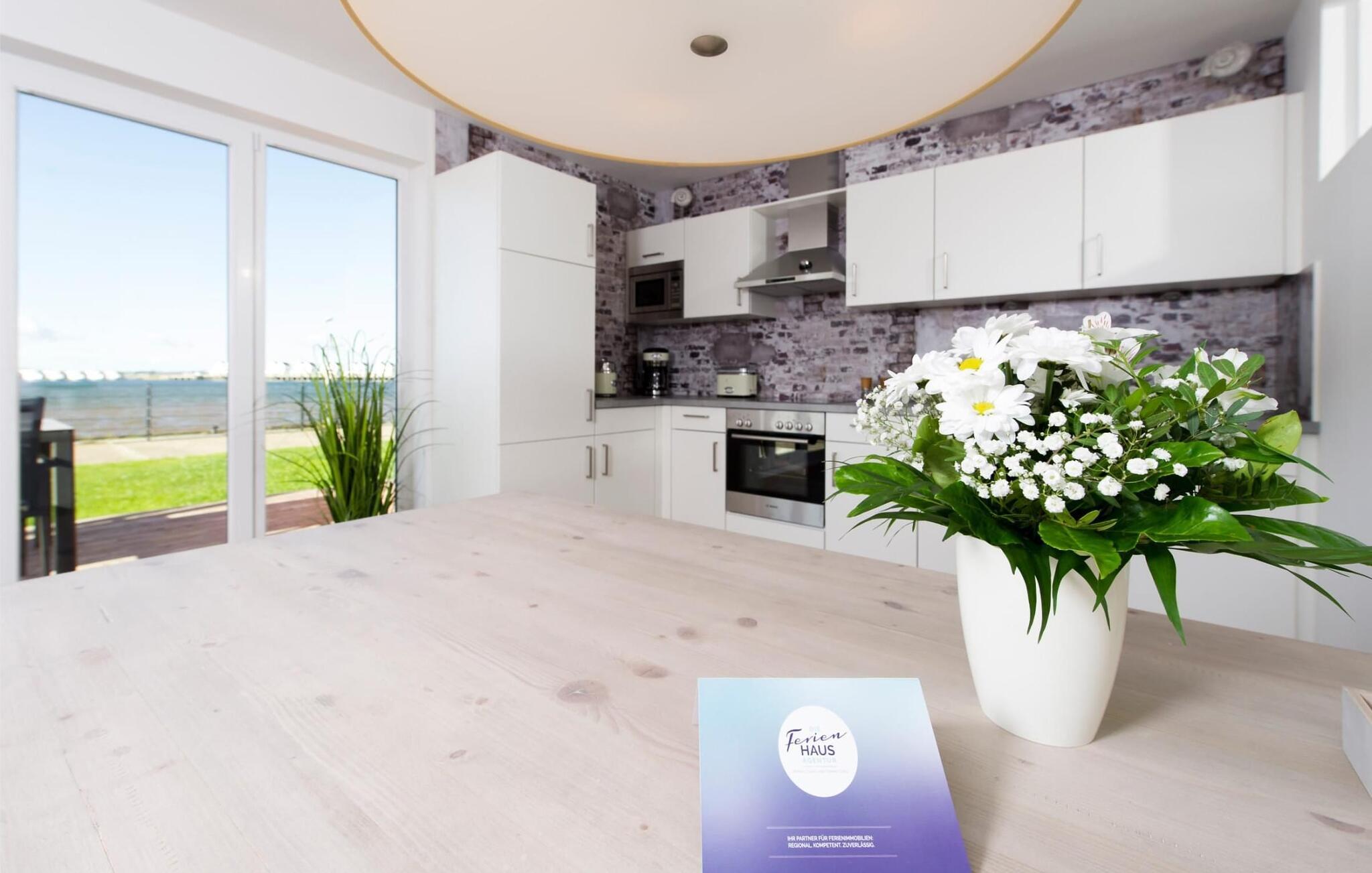 Damit der Tag urlaubsgemäß ausklingen kann, lassen sich in der offenen und rundum ausgestatteten Küche köstliche Urlaubsmahlzeiten zaubern, zu genießen auf der angrenzenden Terrasse mit atemberaubenden Wasserpanorama und traumhaften Sonnenuntergängen.
