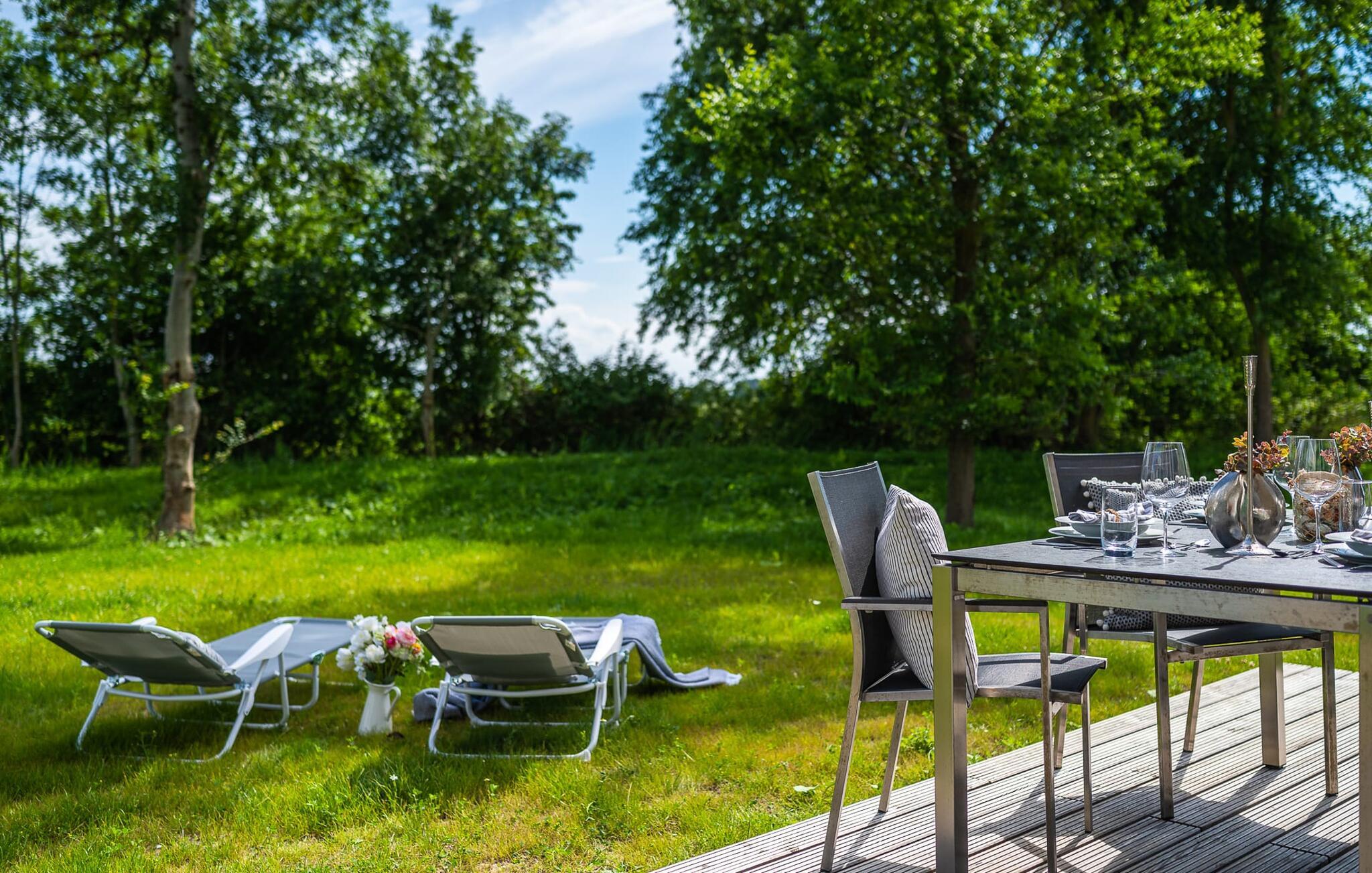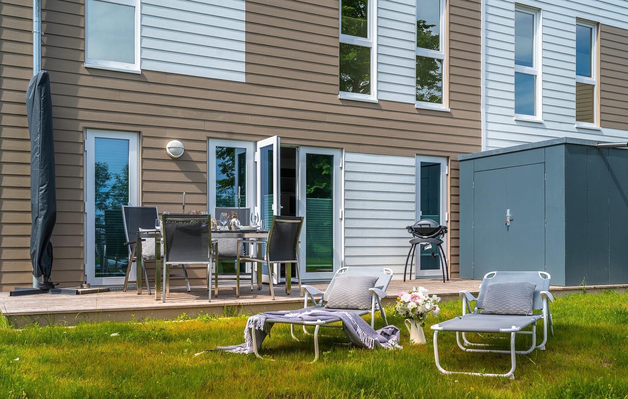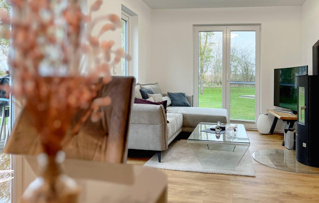 Moderne Ferienwohnung mit Terrasse und Blick auf Naturschutzgebiet in Olpenitz.