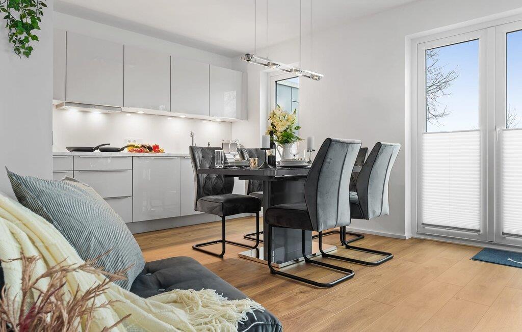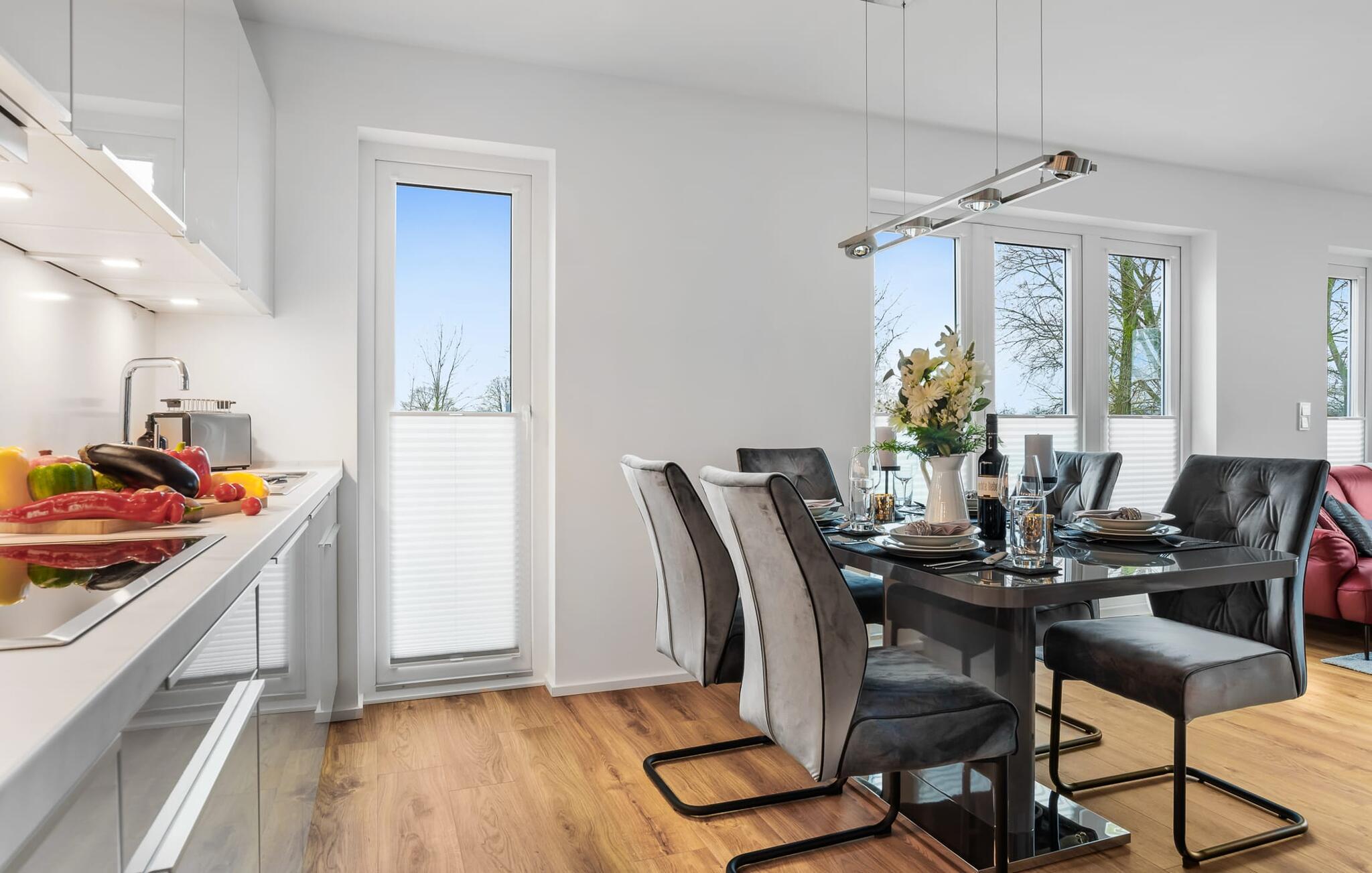 Und wenn die Sonne lockt, tretet einfach auf die große Terrasse hinaus und genießt die frische Ostseeluft in vollen Zügen. Die direkt an den Wohn- und Essbereich angrenzende Terrasse mit Su¨d-Ausrichtung bietet erholsame Stunden fernab von dem Trubel des restlichen OstseeResorts. Mit dem nach hinten ausgerichtetem Blick auf die Naturschutz-Salzwiesen und Felder laden die bereitstehenden Gartenmöbel zu erholsamen Urlaubstagen ein. Genießt tolle Grillabende oder nehmt euch im Urlaub Zeit für kreatives Kochen, die rundum ausgestattete Wohnküche lässt hierbei keine Wünsche offen. Entspannen Sie im privaten Strandkorb am Weidefelder Strand.