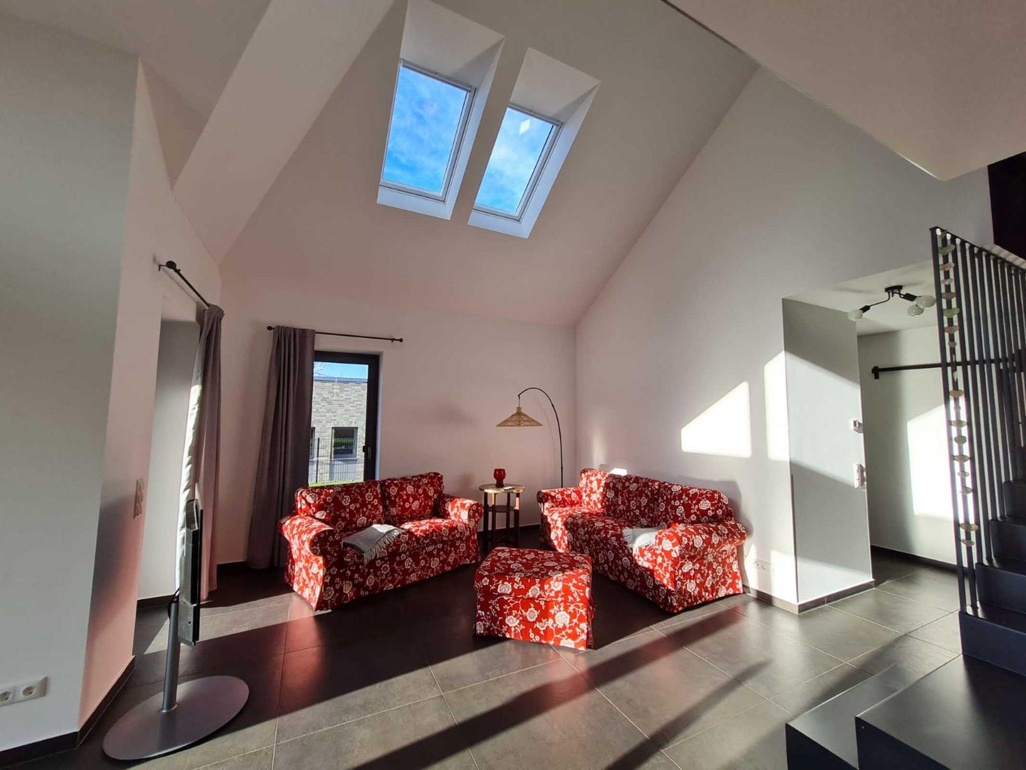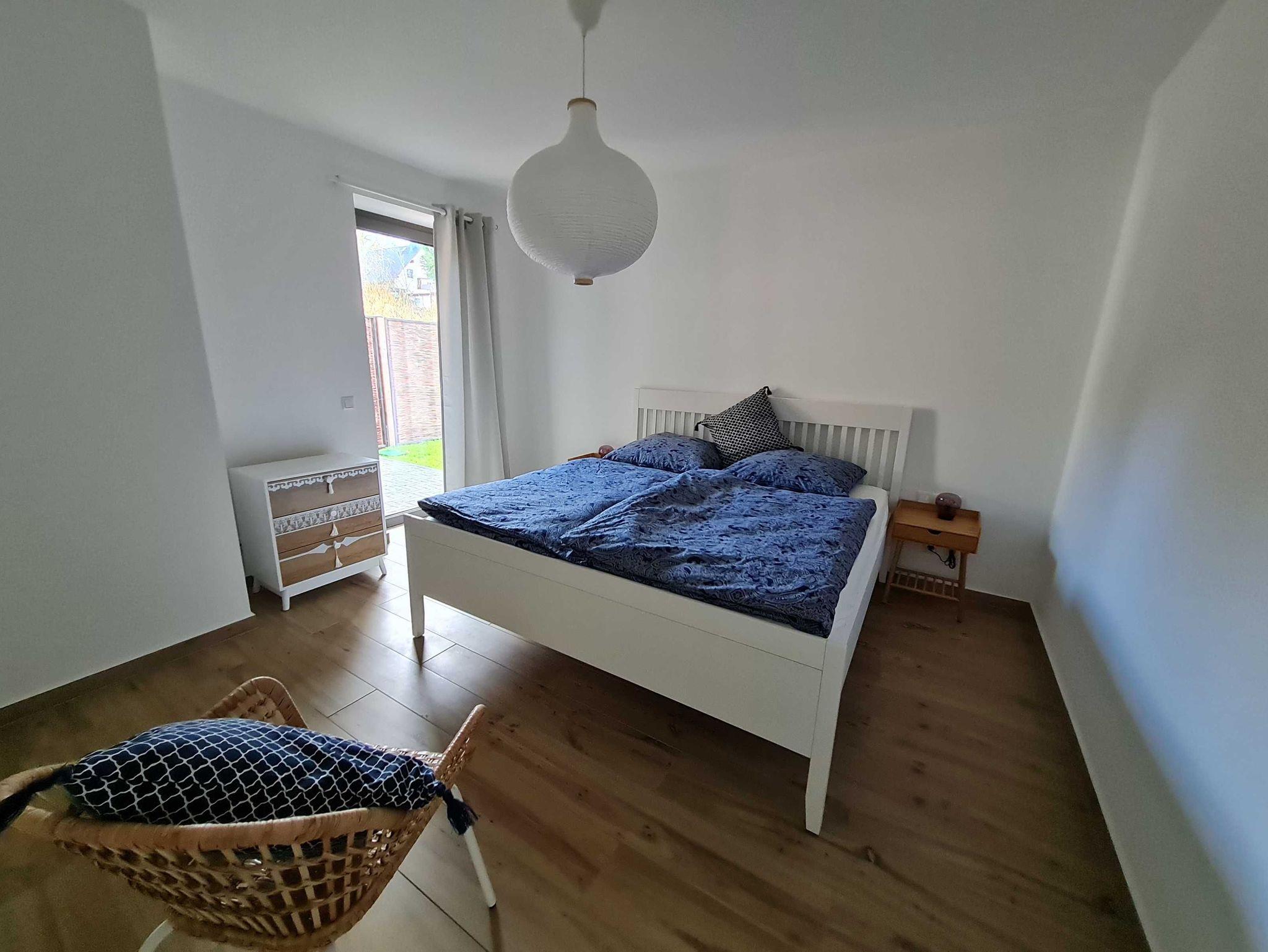 Das größzügige Ferienhaus verfügt in der unteren Etage über ein Wohn-/ Essbereich mit offener Küche, zwei Schlafzimmer mit Doppelbetten sowie ein großes Duschbad.