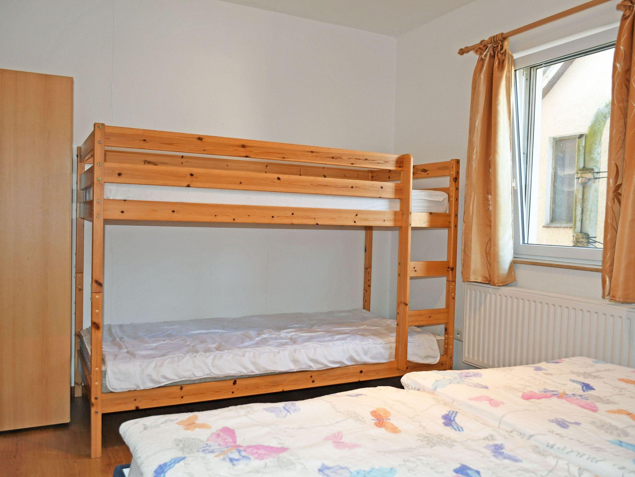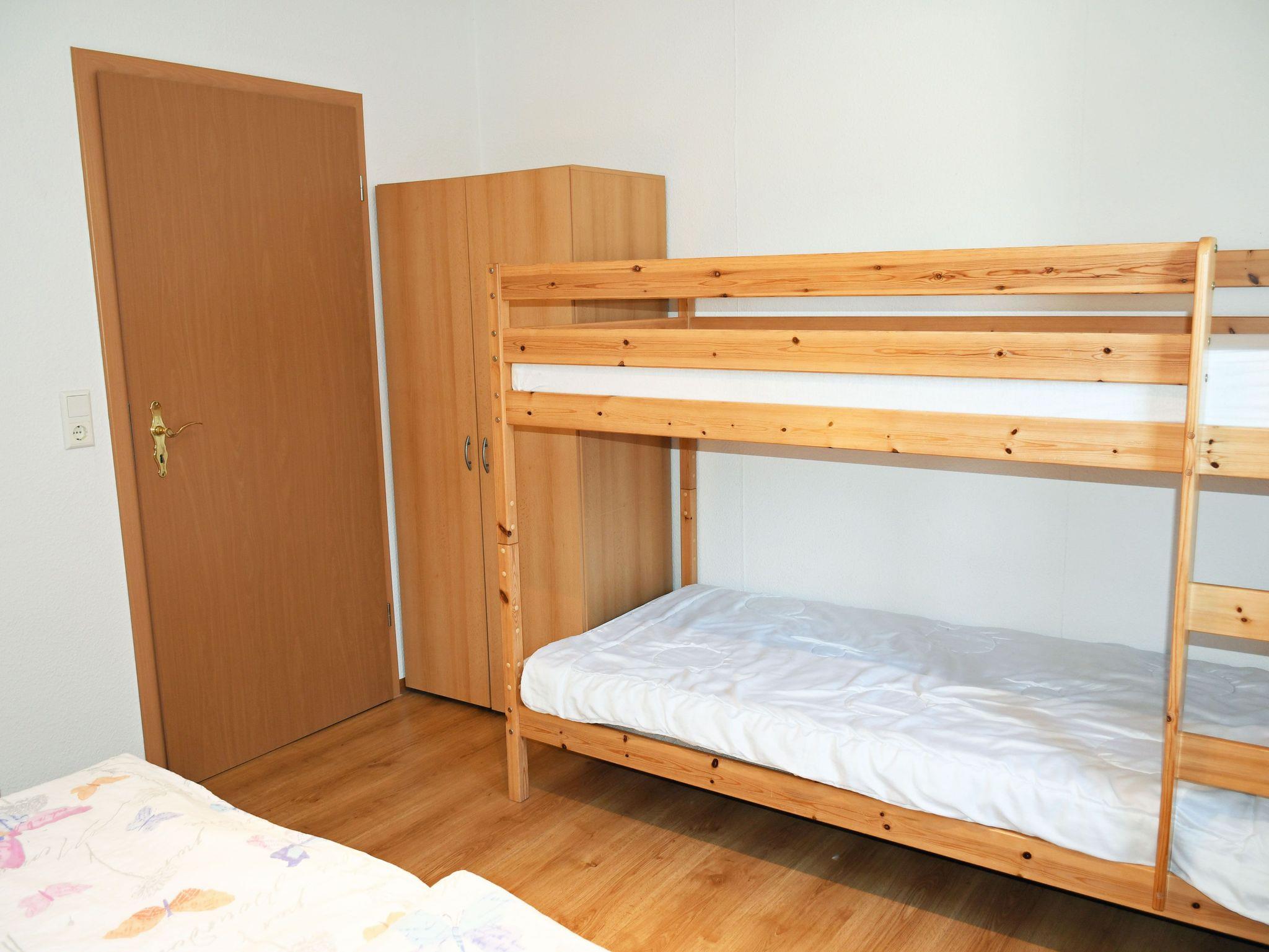 Über eine Holztreppe gelangt man in das Obergeschoss mit zwei getrennten Schlafzimmern. Diese sind jeweils mit bequemen Doppelbetten mit Nachttischen und Leselampen sowie Ablageschränken ausgestattet. Im 2. Schlafzimmer steht ein zusätzliches Etagenbett.