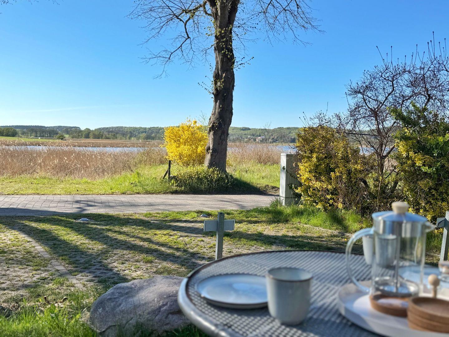 Genießen Sie entspannte Tage im gemütlichen Ferienapartment „Hygge“ mit Seeblick und sonniger Terrasse in idyllischem Seedorf.