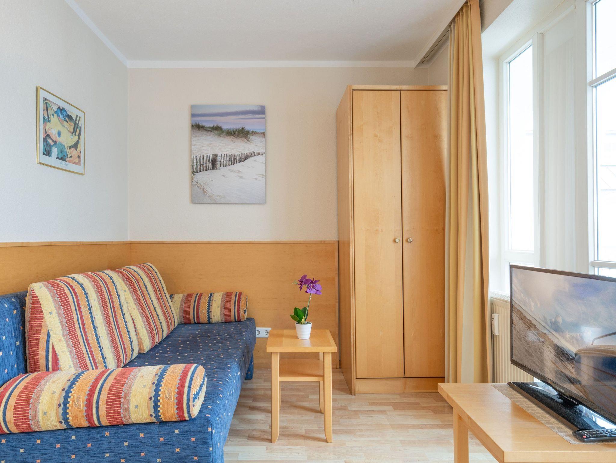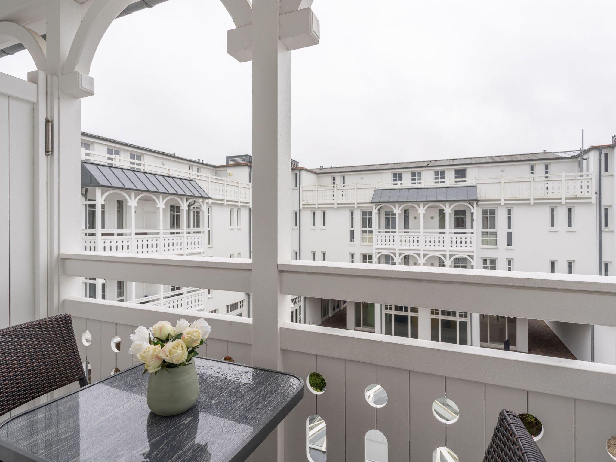 Komfortable Ferienwohnung im Seepark Sellin mit Balkon, WLAN und Zugang zum Schwimmbad, ideal für einen entspannten Ostseeurlaub.
