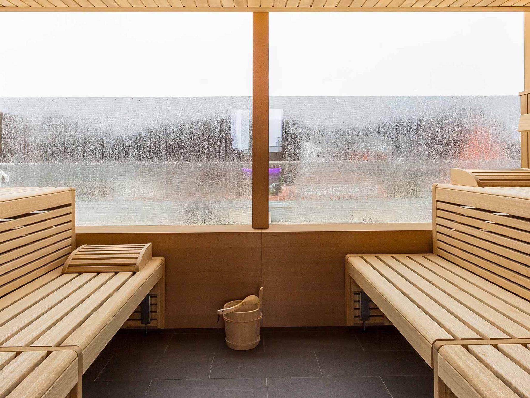 Entspannen Sie im Wellnessbereich des First im Infinitypool oder Saunabereich und abends vor Ihrem Kamin.