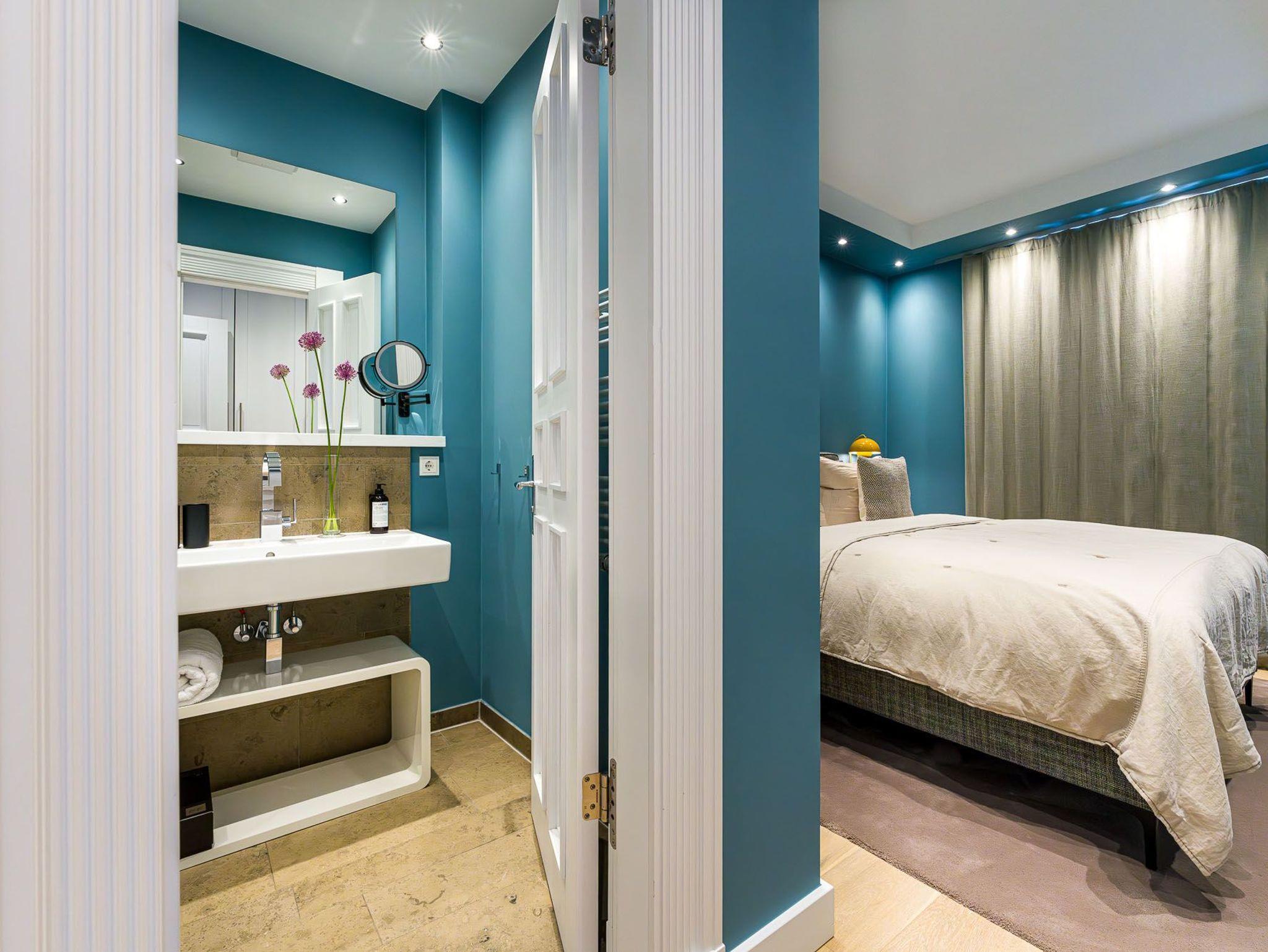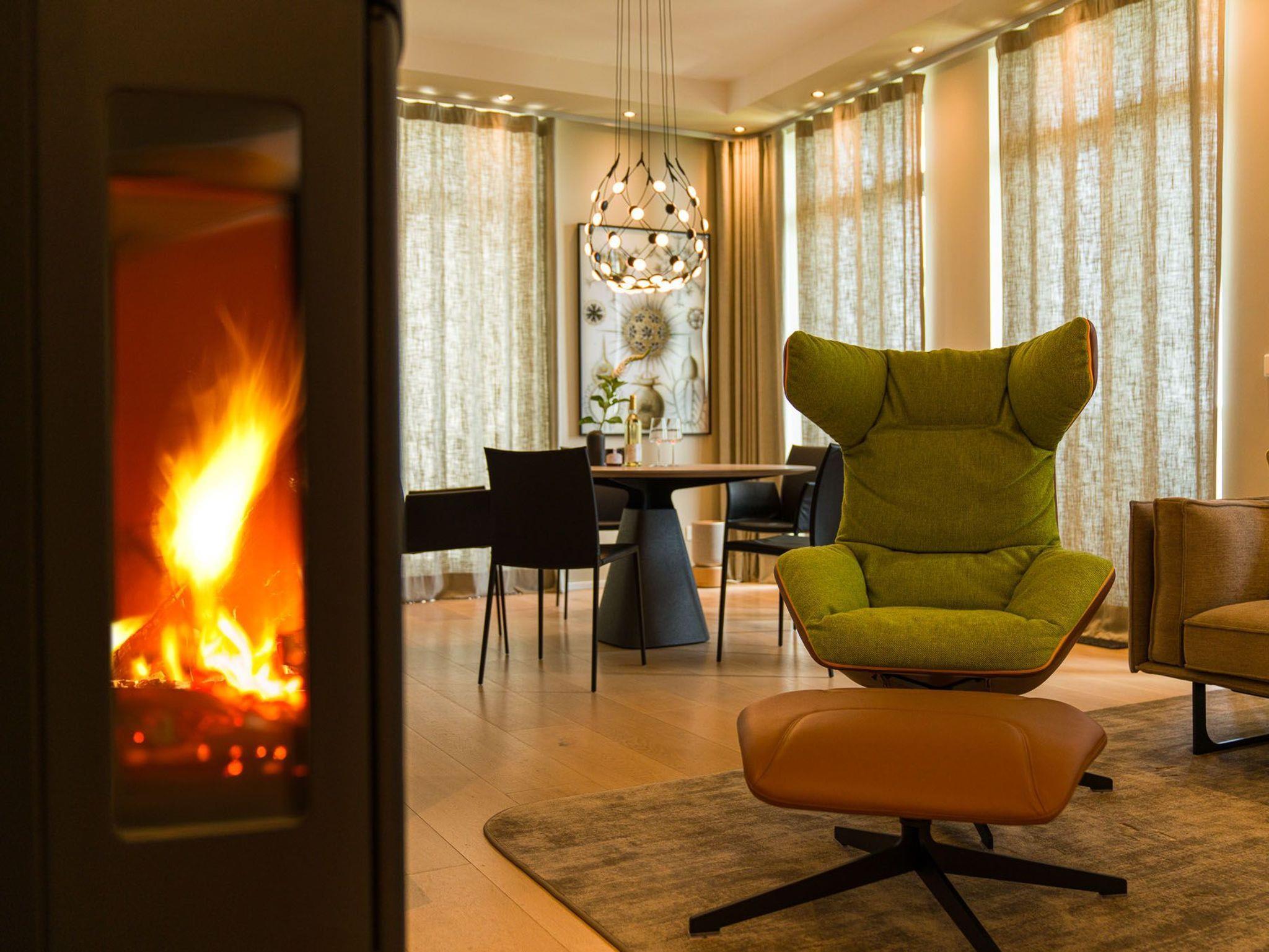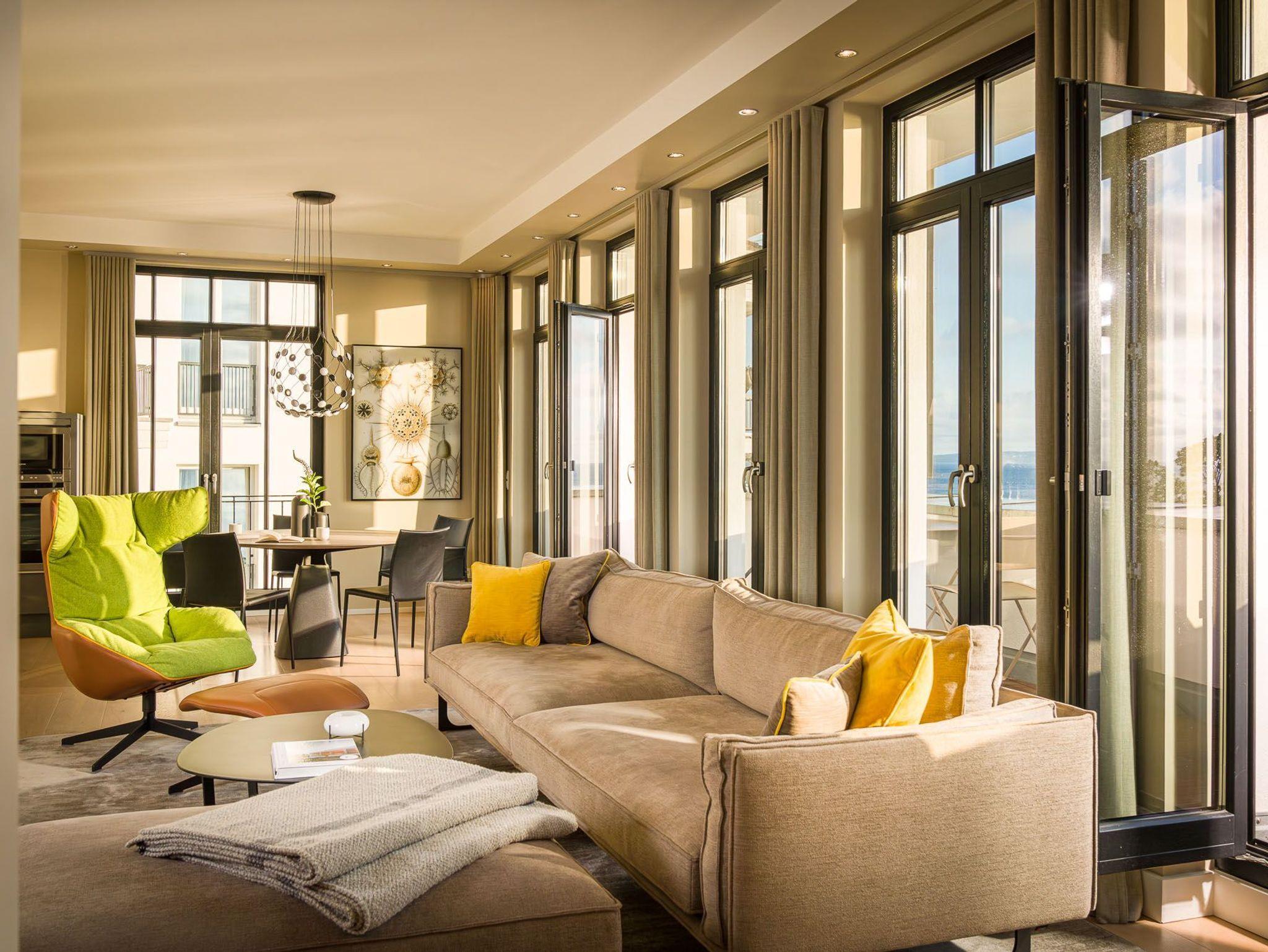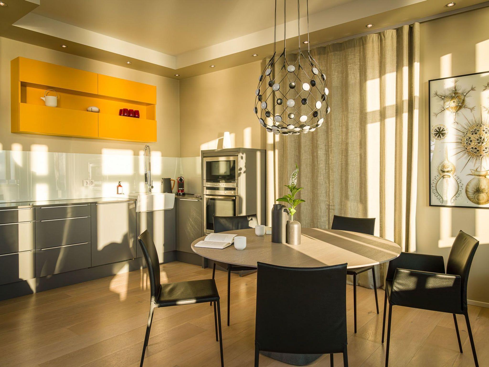 Die hochwertige und perfekt aufeinander abgestimmte Einrichtung mit Marken wie Thonet, Luceplan, Mobimex, Zanotta, JAB, Moroso, Gubi, Villeroy [&] Boch oder IP Design bietet höchsten Komfort in bewährter Qualität.