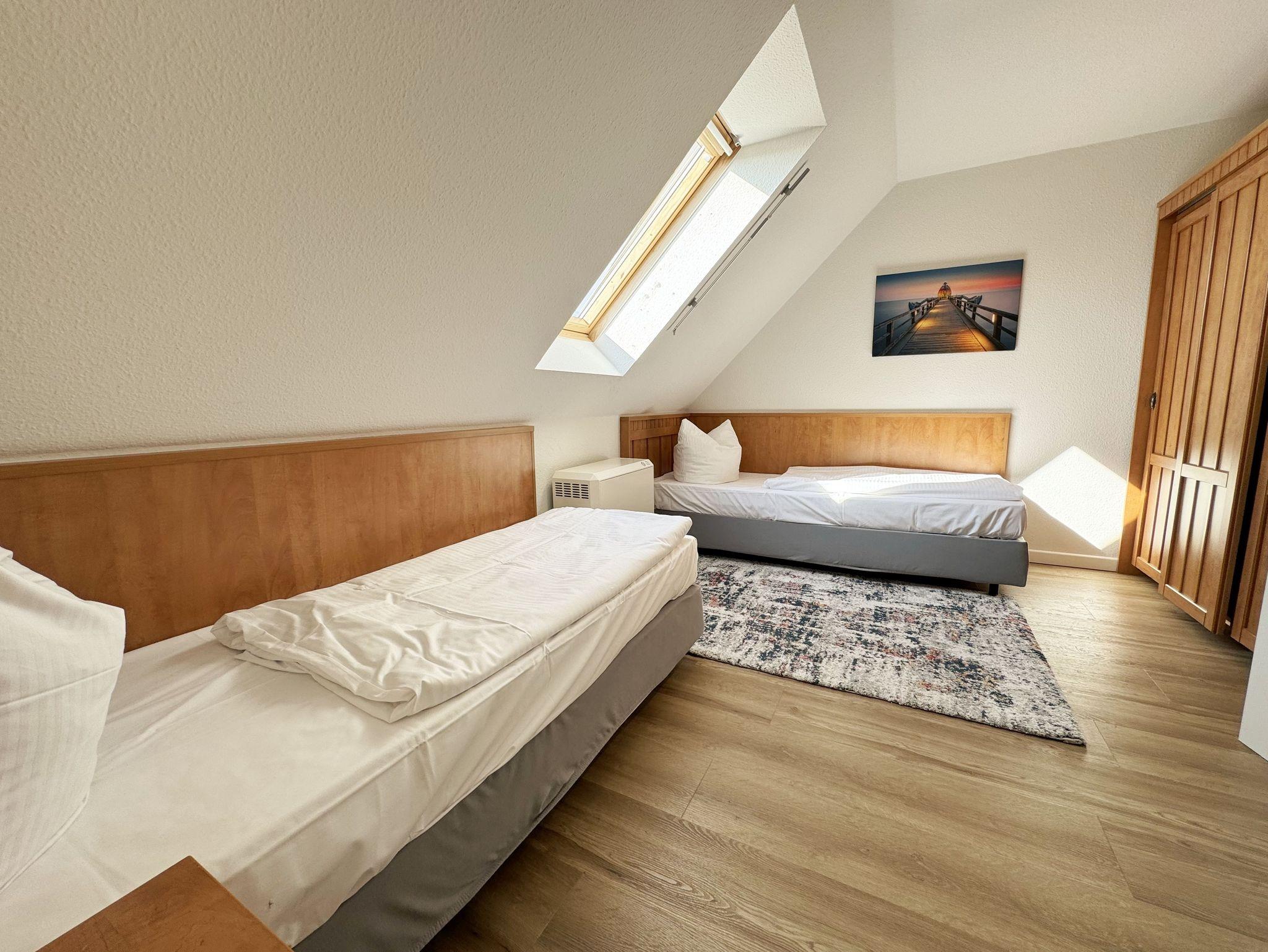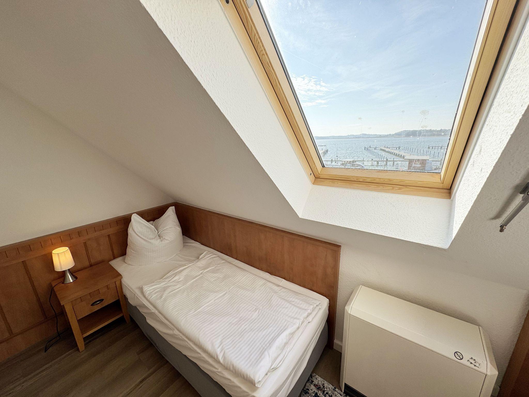 Die Nichtraucherwohnung mit ca. 66 m² besticht durch ihre komfortable Raumaufteilung. Die in 1. Obergeschoss liegende Maisonettferienwohnung Nr.12 bietet ausreichend Platz für 2 bis 4 Erwachsene + 1 Kind bis 10 Jahre. Im Wohnbereich wird die Unterhaltungstechnik durch einen modernen Smart-TV, ein CD-Player und ein Radio abgerundet. Auch im Urlaub müssen Sie nicht auf einen Internetanschluss (W-LAN) verzichten. Dieser ist für Sie inklusive. Für die Gemütlichkeit wurde der Wohnbereich mit zwei Couchen, einen Sessel, Couchtisch und einem Sideboard ausgestattet. Den bestuhlten Balkon (Osten) mit einem Sonnenschirm sowie einer Sonnenliege können Sie vom Wohnbereich erreichen. Er lädt bei einem Glas Wein zum Entspannen ein und bietet Ihnen etwas Blick auf den Selliner See. Die angrenzende Küchenzeile verfügt über eine Spülmaschine, eine Mikrowelle, Ceranfeld mit Backofen, Kühlschrank, Wasserkocher, Toaster, Kaffeemaschine, Eierkocher und diverse Küchenutensilien. Ein Esstisch für 6 Personen kann auch für einen unterhaltsamen Spieleabend genutzt werden. Das 1. Schlafzimmer wurde mit einem Doppelbett (1,80 m x 2,00 m), Nachttischablagen, einen Kleiderschrank sowie eine Couch (1,10m x 1,90m) welche als Aufbettung für das Kind genutzt werden kann, ausgestattet. Das 2. Schlafzimmer verfügt über 2 Einzelbetten (0,90 m x 2,00 m), Nachttischablagen und einen Kleiderschrank. Im Tageslichtbad befinden sich eine Dusche, ein Waschtisch, ein WC und ein Fön. Beide Schlafzimmer sowie das Bad erreichen Sie bequem über die Treppe da Sie sich im oberen Bereich befinden. Fensterläden und Vorhänge dienen zum Verdunkeln der Räumlichkeiten. In allen Räumlichkeiten finden Sie Nachtspeicheröfen. Ein Wäscheständer sowie Reinigungsutensilien stehen für Sie bereit. Maximal 2 Haustiere können gegen eine Gebühr dazu gebucht werden. Ein PKW-Stellplatz Nr. 12 befindet sich direkt auf dem Grundstück. Ihre mitgebrachten oder geliehenen Fahrräder können Sie nach Verfügbarkeit im abschließbaren Fahrradraum unterstellen. Die Erstausstattung eines Wäschepaketes (komplette Bettwäsche, 1 Duschhandtuch, 1 kleines Handtuch) können Sie bis 14 Tage vor Anreise gegen einen Aufpreis dazu buchen oder durch eigene ergänzen. Ab 2 gebuchten Paketen erhalten Sie einmalig 1 Geschirrhandtuch und 1 Duschvorleger dazu.