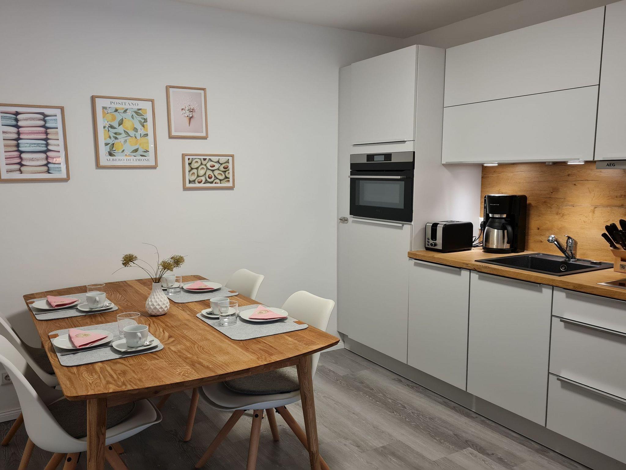 Die modern und mit viel Liebe eingerichtete Ferienwohnung Hygge bietet auf 70 m² ausreichend Platz für bis zu 4 Gäste.