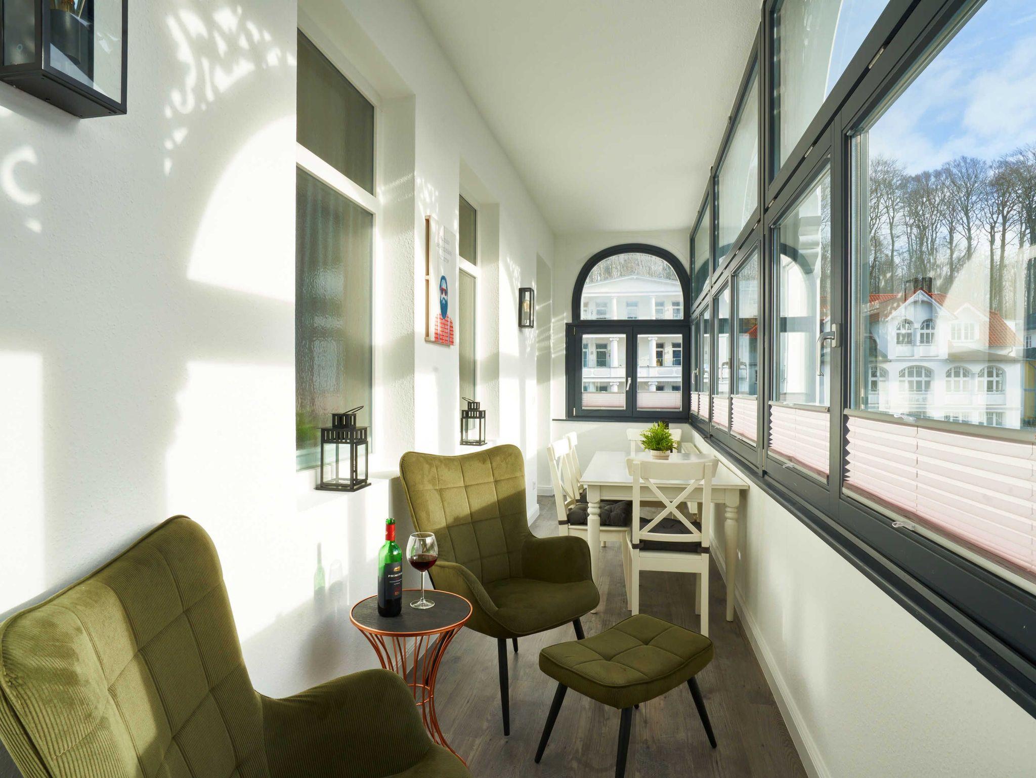 Modern renoviertes Appartement mit Wintergarten in Sellin, nur 100 Meter vom Strand entfernt.