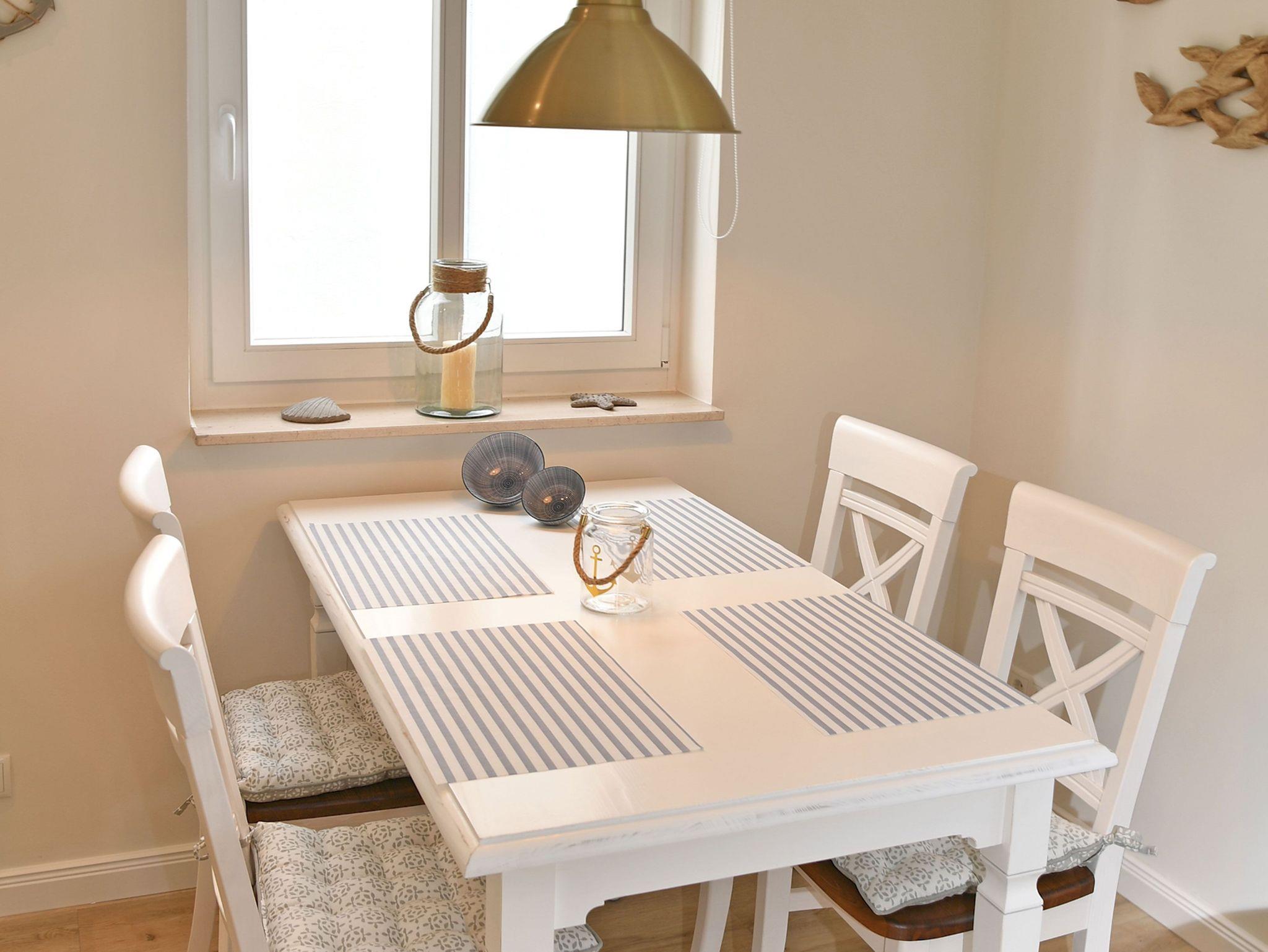 Vom Eingangsbereich gelangen Sie in den modern und freundlich eingerichteten Wohn- und Essbereich, der mit einem 43? Flachbild-Fernseher und einer Stereoanlage mit CD-Player ausgestattet ist. Die in den Wohnbereich harmonisch integrierte Küche ist mit Herd (Backofen, Grill), Einbau-Mikrowelle, Geschirrspüler, Kaffeemaschine, Toaster, Eierkocher, Wasserkocher und einem Kühlschrank mit 4* Gefrierfach sowie diversem Kleininventar, das die Küchenausstattung komplettiert, eingerichtet.
