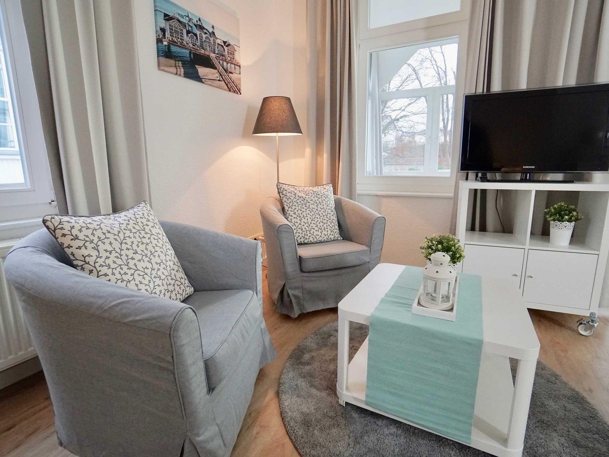 Modernes Appartement in historischer Villa direkt an Sellins Hauptpromenade mit Blick zum Laubwald und WLAN inklusive.