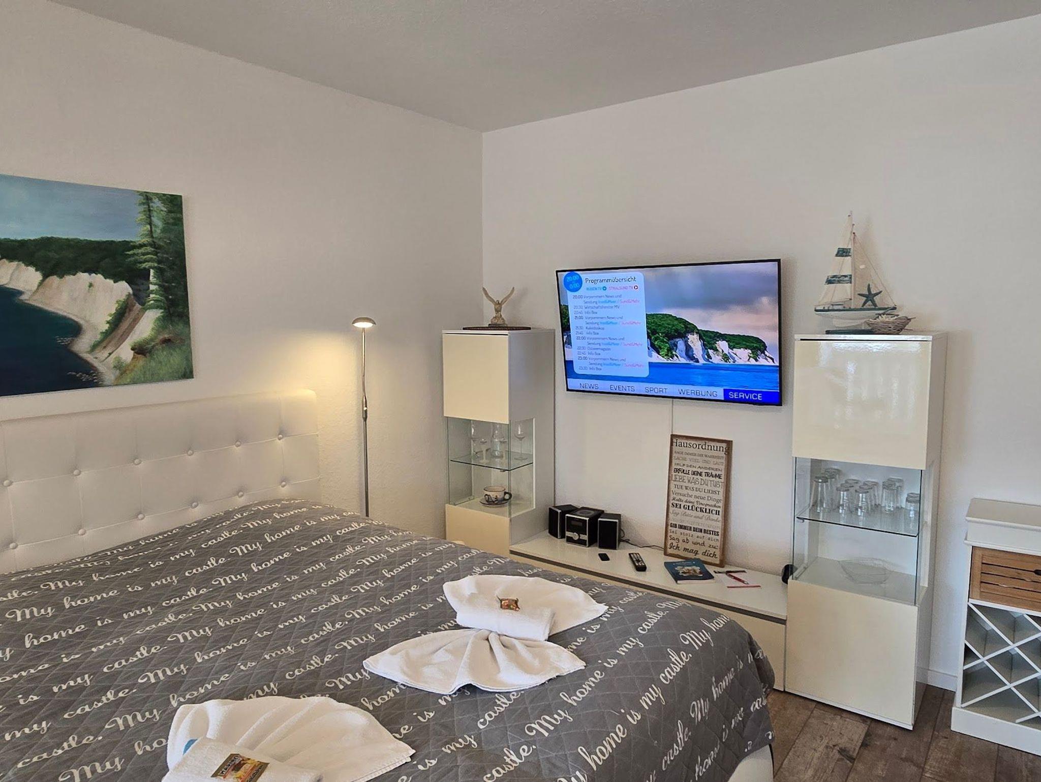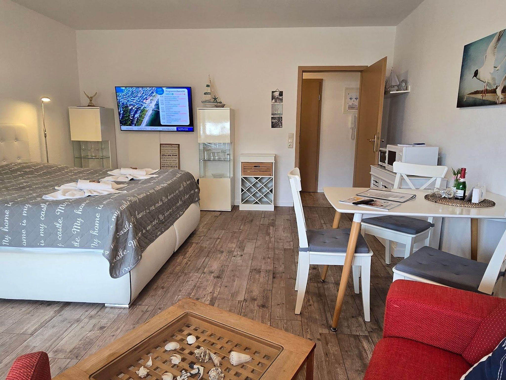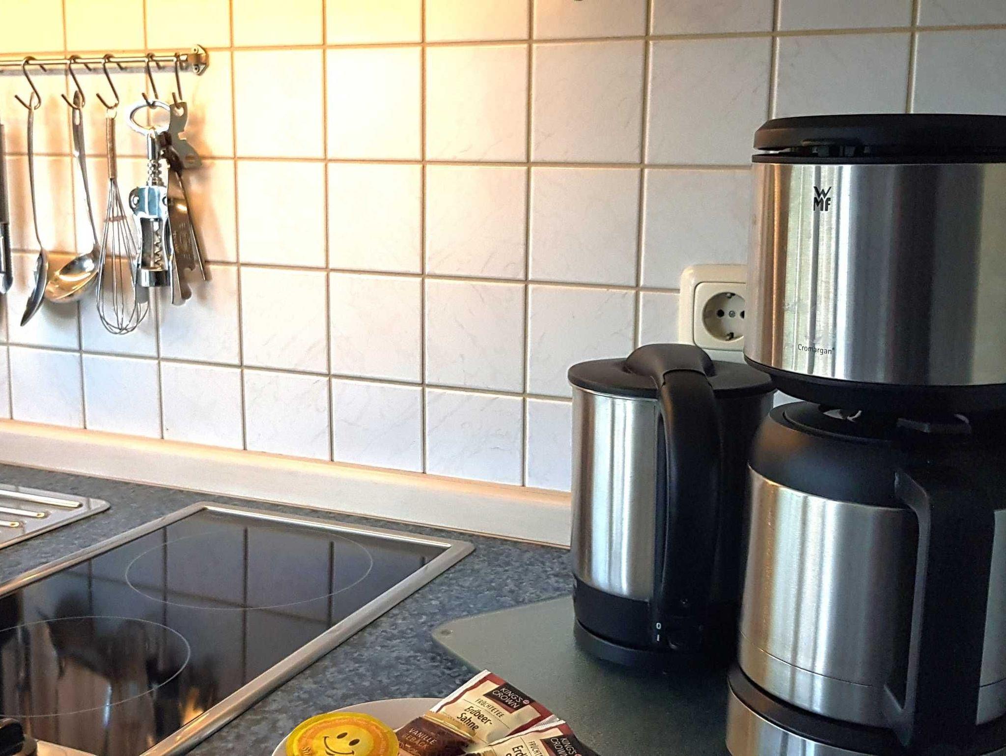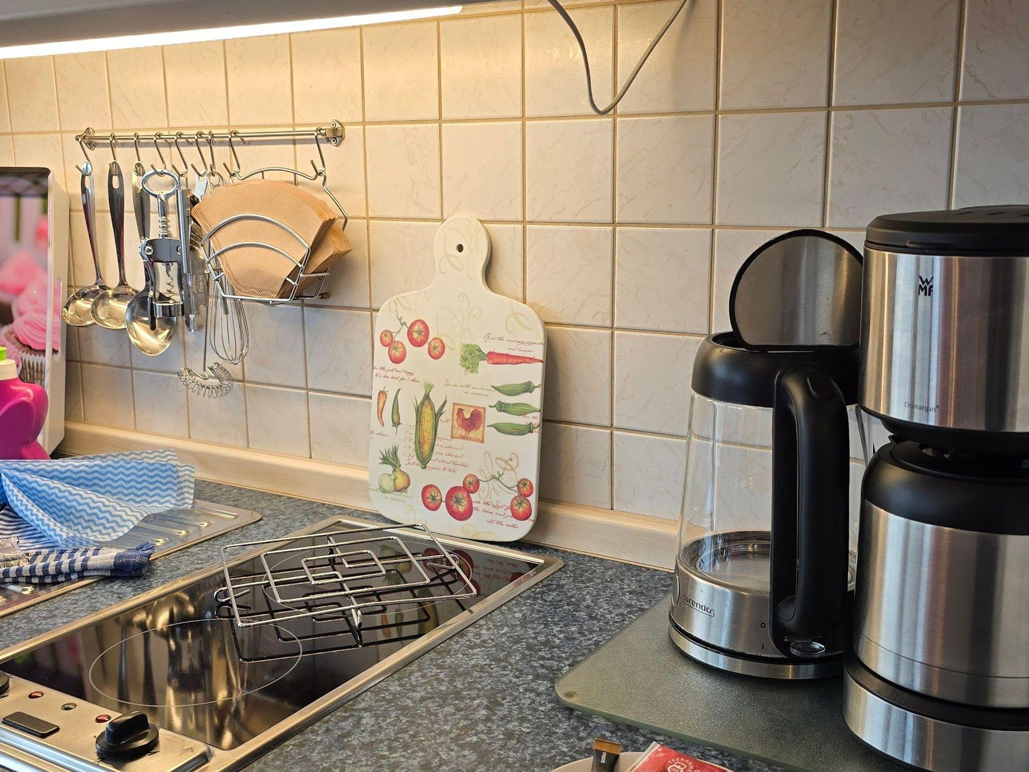 Die Einrichtung mit eine Miniküche ( 2-Pl.-Ceran Kochfeld , Kühlschrank,Geschirrspüler, Kaffeemaschine, Wasserkocher, Mikrowelle, etc.) , DU/WC, Kabel-TV und das gemütliche Flair haben laden zum wohlfühlen ein.