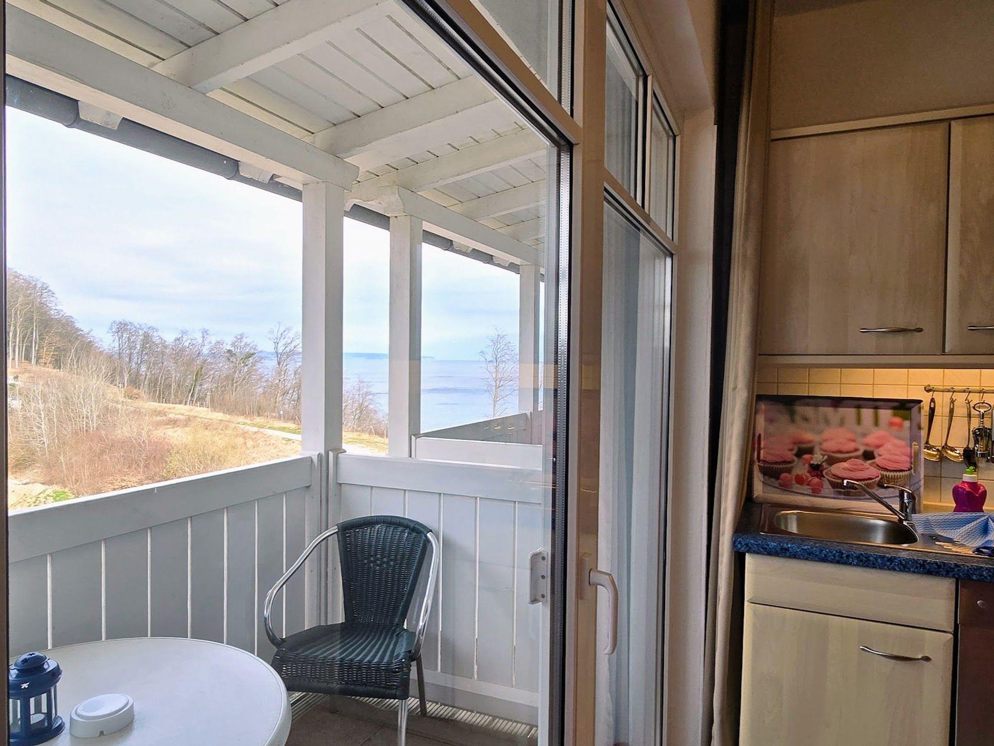 Vom Balkon haben sie einen seitlichen Ostseeblick auf die Kreidefelsen.
