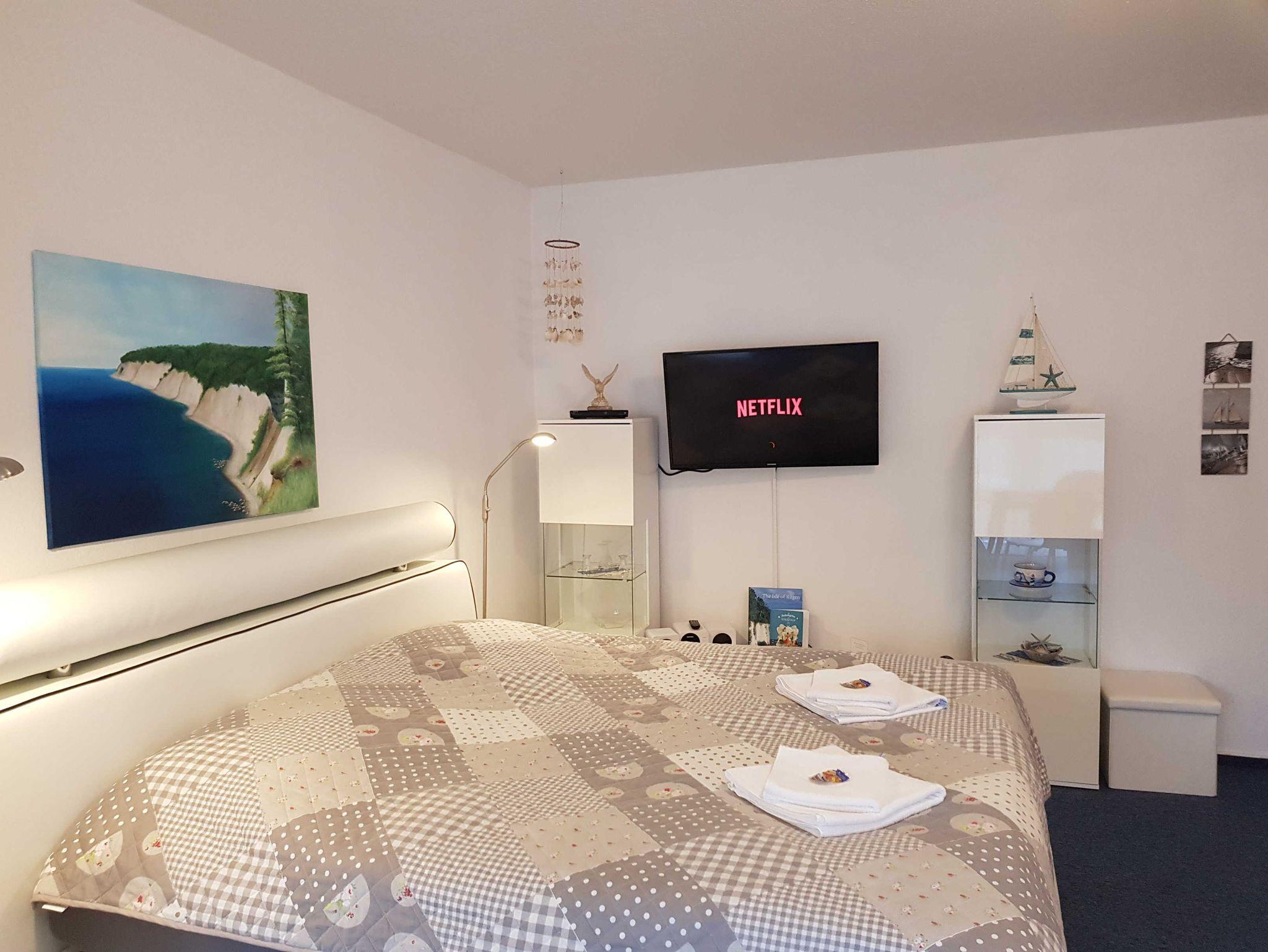Modernes Studio mit Balkon und seitlichem Ostseeblick in Sellin, nur wenige Meter vom Strand und der Seebrücke entfernt.