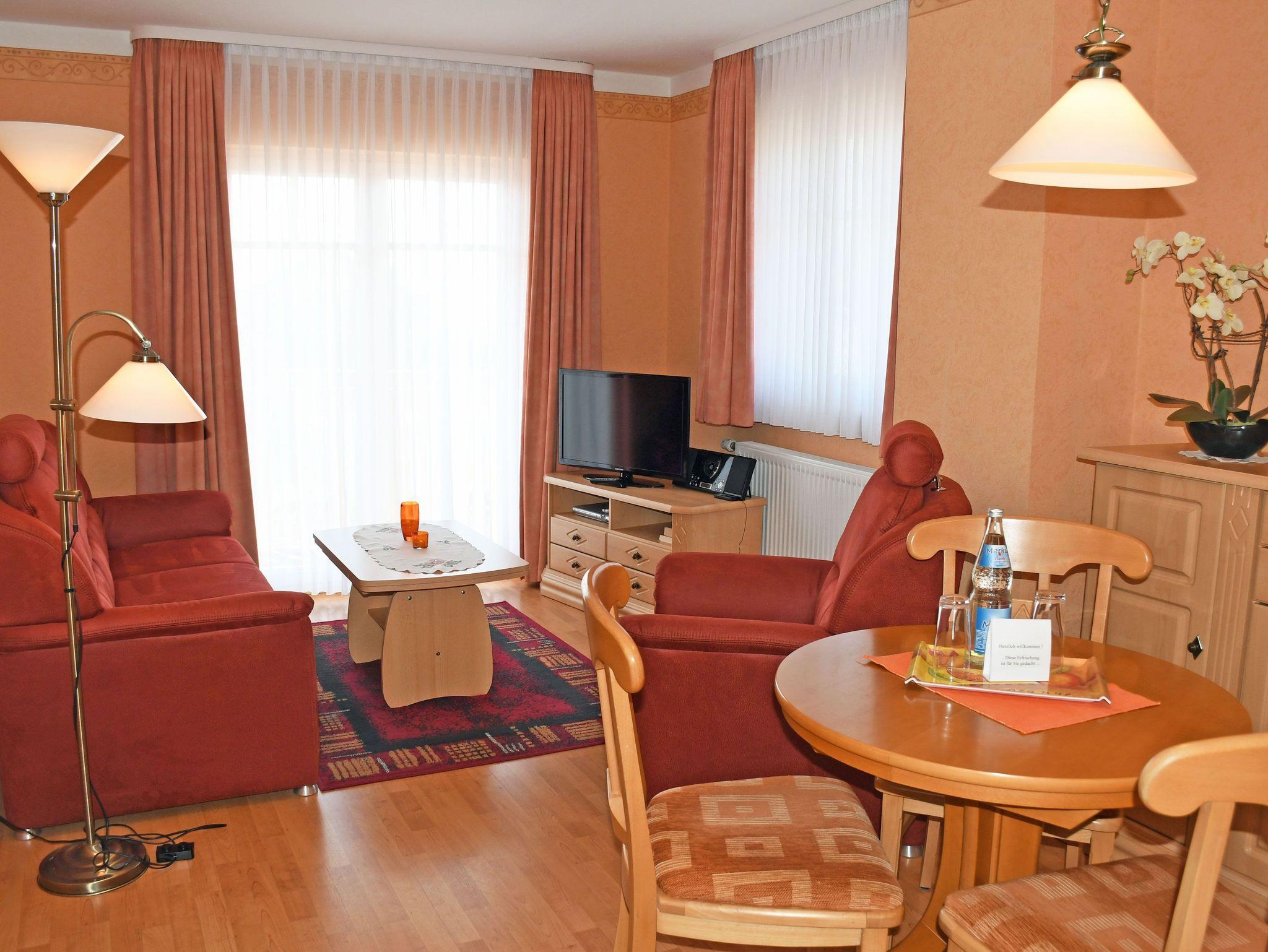 Unsere modern und stilvoll eingerichteten Appartements der Kategorie Relax sind für 2 Gäste ausgelegt und bieten Ihnen einen getrennten Wohn- und Schlafraum sowie einen dazugehörigen Vorflur. Im Schlafraum stehen ein großer Schrank und ein bequemes Doppelbett. Ein großzügiges Bad mit Dusche, WC und Handtuchtrockner gehören ebenso zur Ausstattung, wie eine komplett ausgestattete Küchenzeile, ein Balkon zur Südseite mit Stühlen und Tisch, Kabel-Radio/TV mit DVD-Player sowie Gesellschaftsspiele. Die Appartements erreichen Sie mit einem Lift, mit dem Sie auch im Bademantel gekleidet, bequem in die Wellness- bzw. Fitnessetage gelangen.