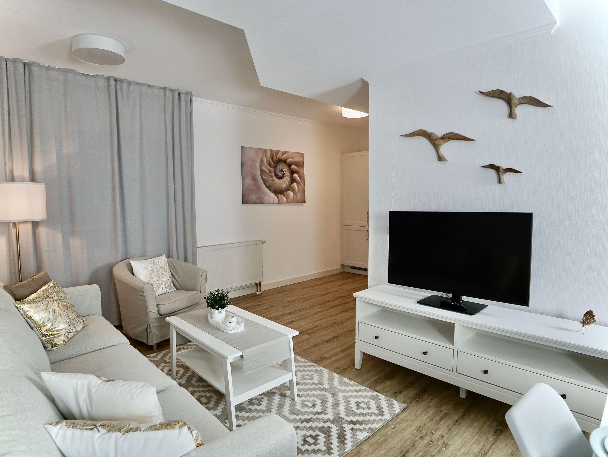Mit einer Größe von 48 m² eignet sich das Appartement für 1-3 Personen und befindet sich im Erdgeschoss zur Südwestseite mit großer möblierter Terrasse und Zugang zum Garten. In dem behaglichen Wohn-/Essbereichen mit Esstisch, LCD TV und bequemem Sofa (Liegefläche 1,40 x 2 m) können Sie gemeinsam gemütliche Stunden verbringen. Außerdem verfügt das Appartement über eine voll ausgestattete offene Küche mit Geschirrspüler. Ein separates Schlafzimmer mit einem komfortablen Doppelbett (1,60 x 2 m) bietet die Möglichkeit zum Rückzug. Das Bad ist mit Dusche, WC und Fön ausgestattet. Bei Ankunft erwartet Sie eine Erstausstattung an Bettwäsche und Handtüchern.
