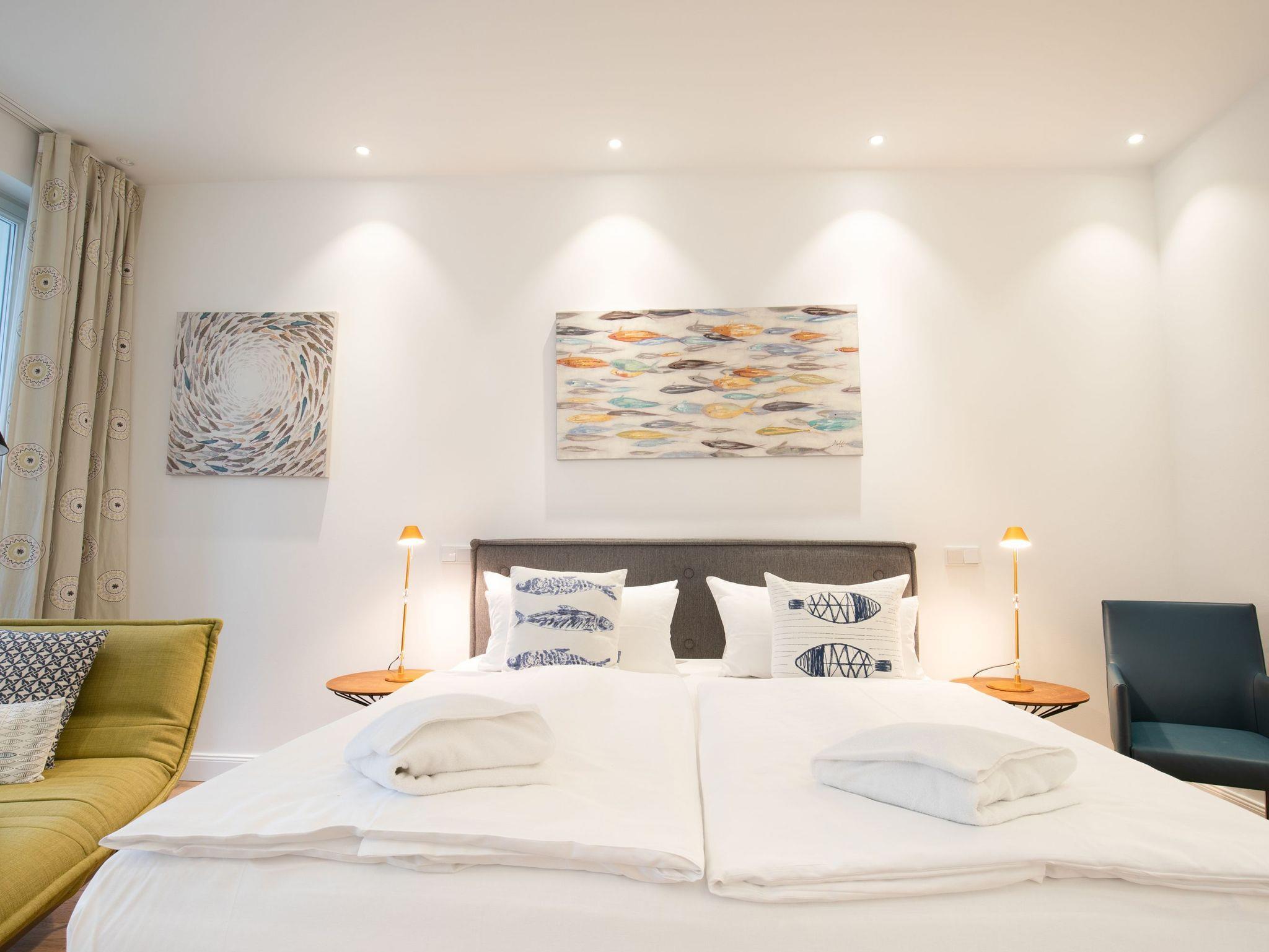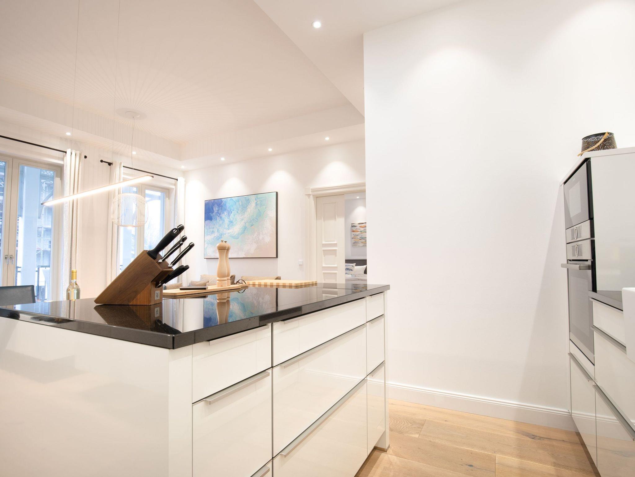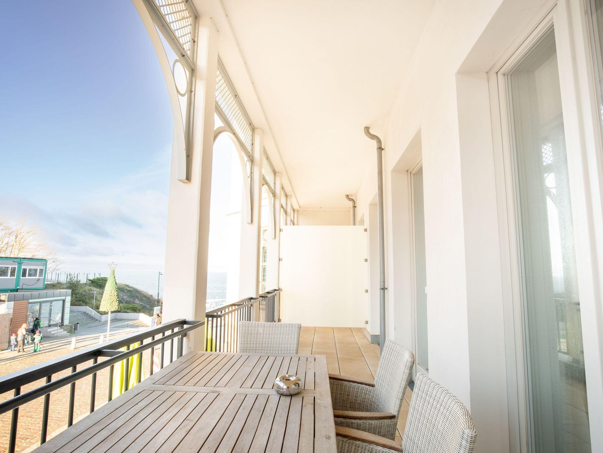 Moderne Ferienwohnung FIRST Bel Etage in Sellin mit Meerblick, Sauna, Pool und zentraler Lage nahe Strand und Ortsmitte.