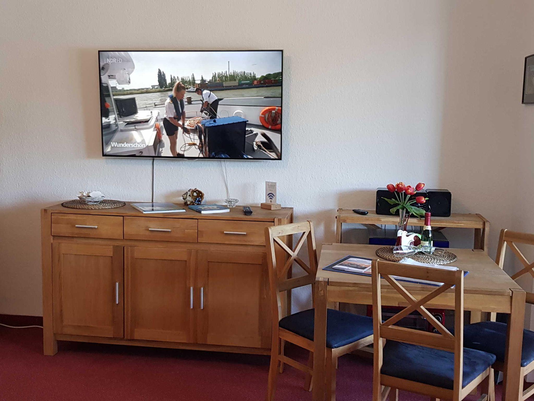 Die Einrichtung mit einer Miniküche ( 2-Pl.-Ceran Kochfeld , Kühlschrank,Geschirrspüler, Kaffeemaschine, Wasserkocher, Mikrowelle, etc.) , DU/WC, Kabel-TV .