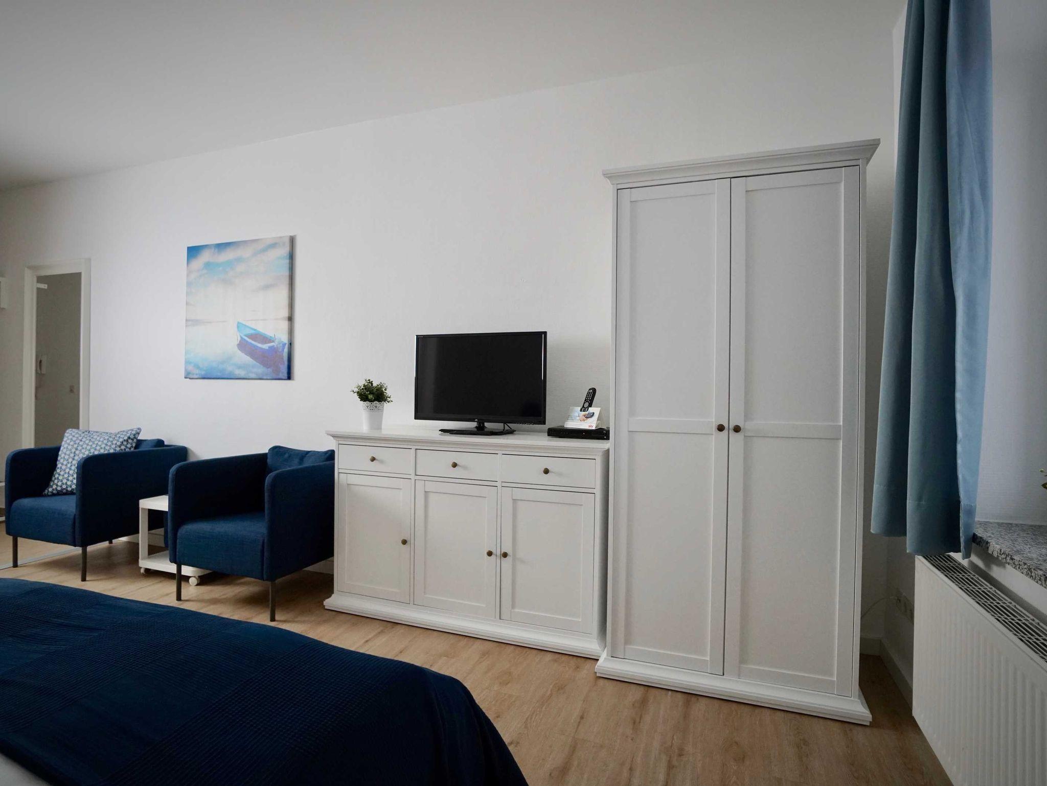 Das gemütliche Appartement Granitz (H) bietet Ihnen auf 30 - 34m² Platz für 2 Personen. Vom bequemen Doppelbett aus haben Sie einen direkten Blick auf den Flachbildfernseher. Entspannen können Sie in diesem Appartement sehr bequem auch im Wintergarten. Hier können Sie gemütlich frühstücken oder den Abend bei einem Gläschen Wein verbringen. Der WLAN-Zugang und ein SodaStream steht Ihnen kostenfrei zur Verfügung. In der modernen Pantryküche finden Sie neben einem Kühlschrank, Kaffeemaschine und Wasserkocher sogar ein 2-Platten-Cerankochfeld, um kleine Mahlzeiten zuzubereiten. Im modern gefliesten Badezimmer finden Sie neben WC und Waschbecken auch eine Dusche. Ein Babybett (bis zwei Jahre) kann bei Bedarf aufgestellt werden. Ein Fön gehört ebenfalls zur Ausstattung. Dieses Appartement liegt im Erdgeschoss, 1. oder 2. Obergeschoss mit Südost- bzw. Südwest-Ausrichtung.
