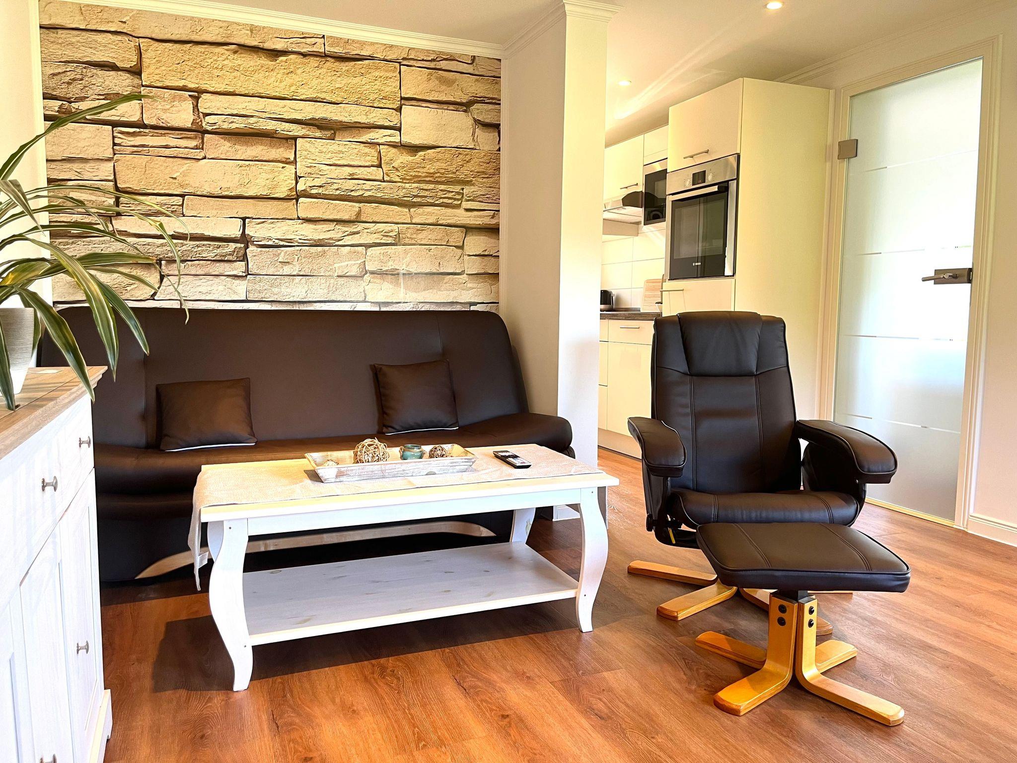 Es verfügt über einen großen Wohnraum mit SMART-TV inkl. HD+ (55 Zoll), HiFi-Alage mit CD, USB und Bluetoothfunktion und einen Bluray-Player. Die Schlafcouch bietet die Möglichkeit einer zusätzlichen Aufbettung. Eine gemütlichen Sitzecke im Eingangsbereich lädt zum Verweilen ein, von hier aus haben Sie einen tollen Blick auf Wald und Natur.