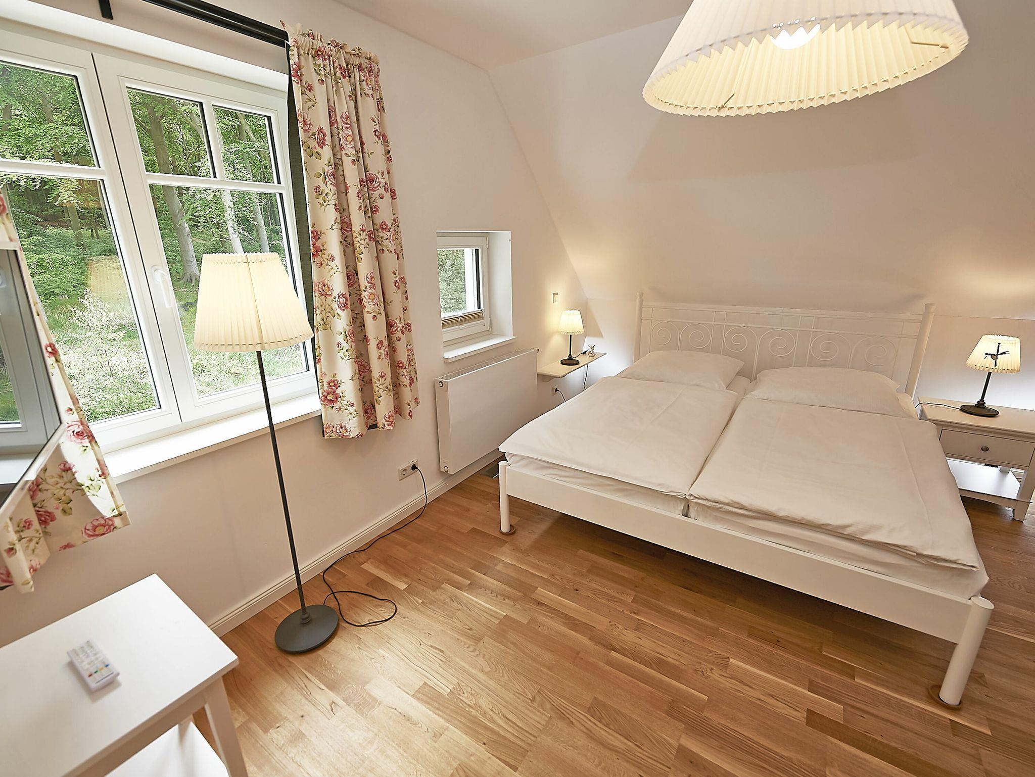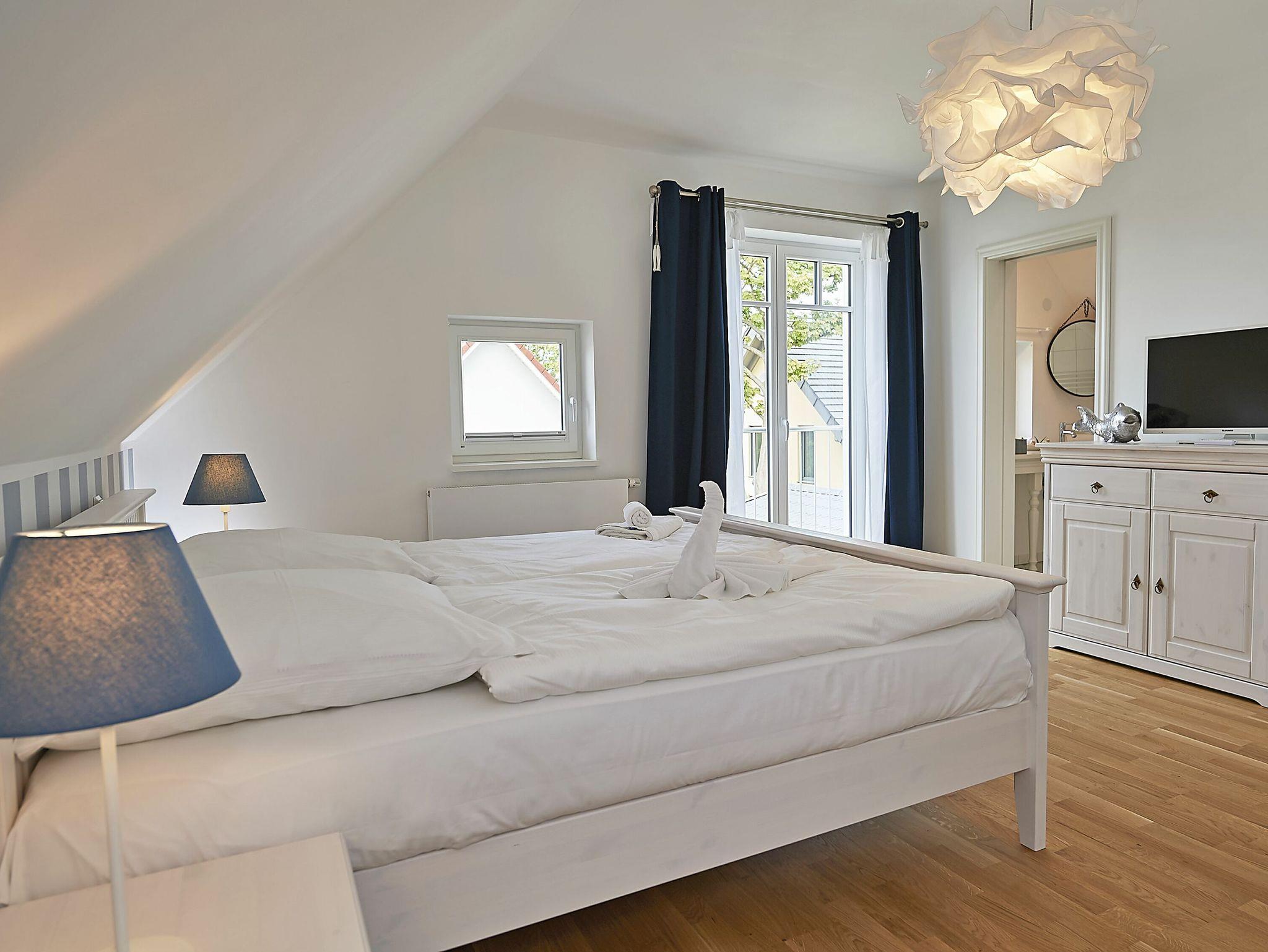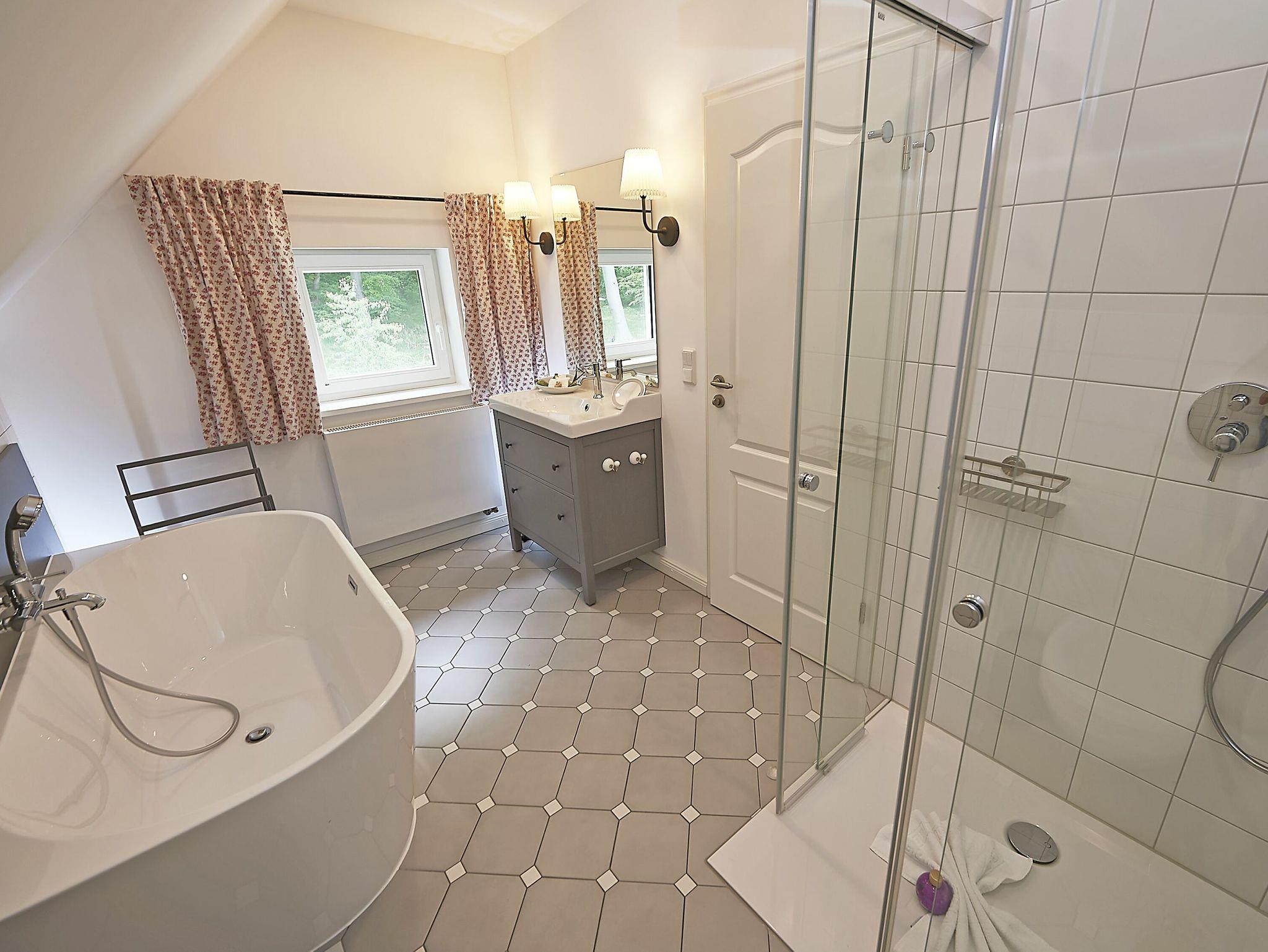 Im Dachgeschoss sind die beiden Schlafzimmer mit je einem großen Doppelbett und je einem separaten Bad untergebracht. Beide Bäder verfügen über eine Dusche und ein Bad zusätzlich über eine Badewanne. Der Fußboden ist mit einem Eichenparkett belegt. Die Heizung erfolgt über Wandheizkörper, welche sich individuell regeln lassen.