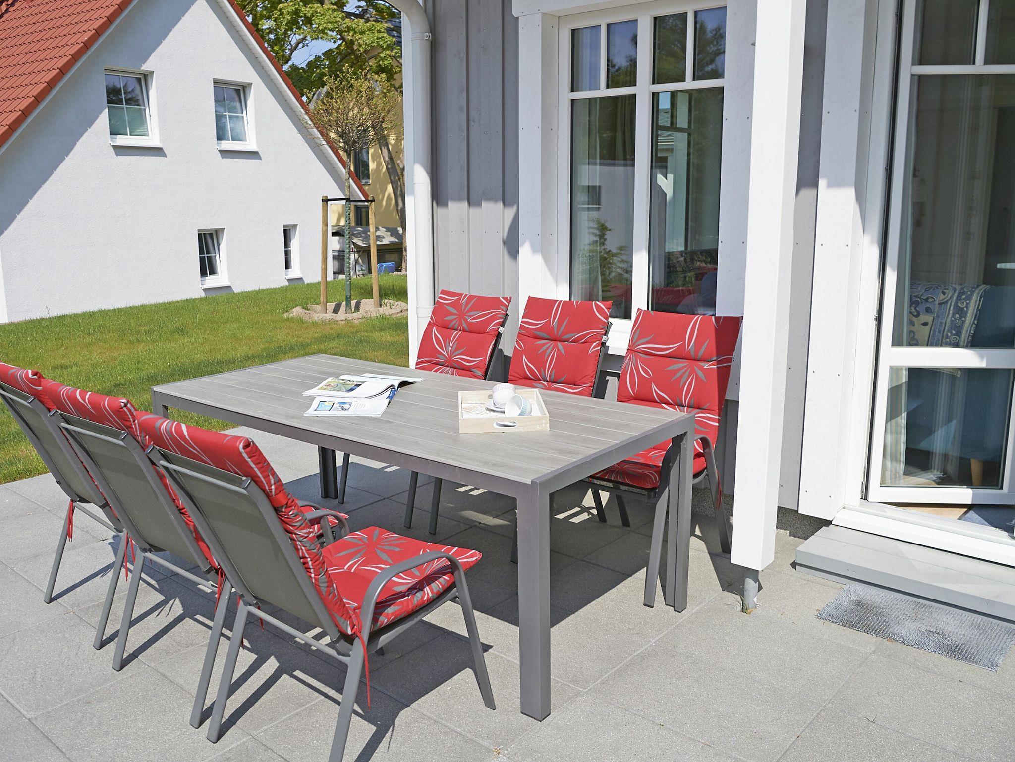 Am Haus laden eine Terrasse mit einem großen Tisch und ausreichend Sitzgelegenheiten und der liebevoll gestaltete Garten zum Relaxen ein.