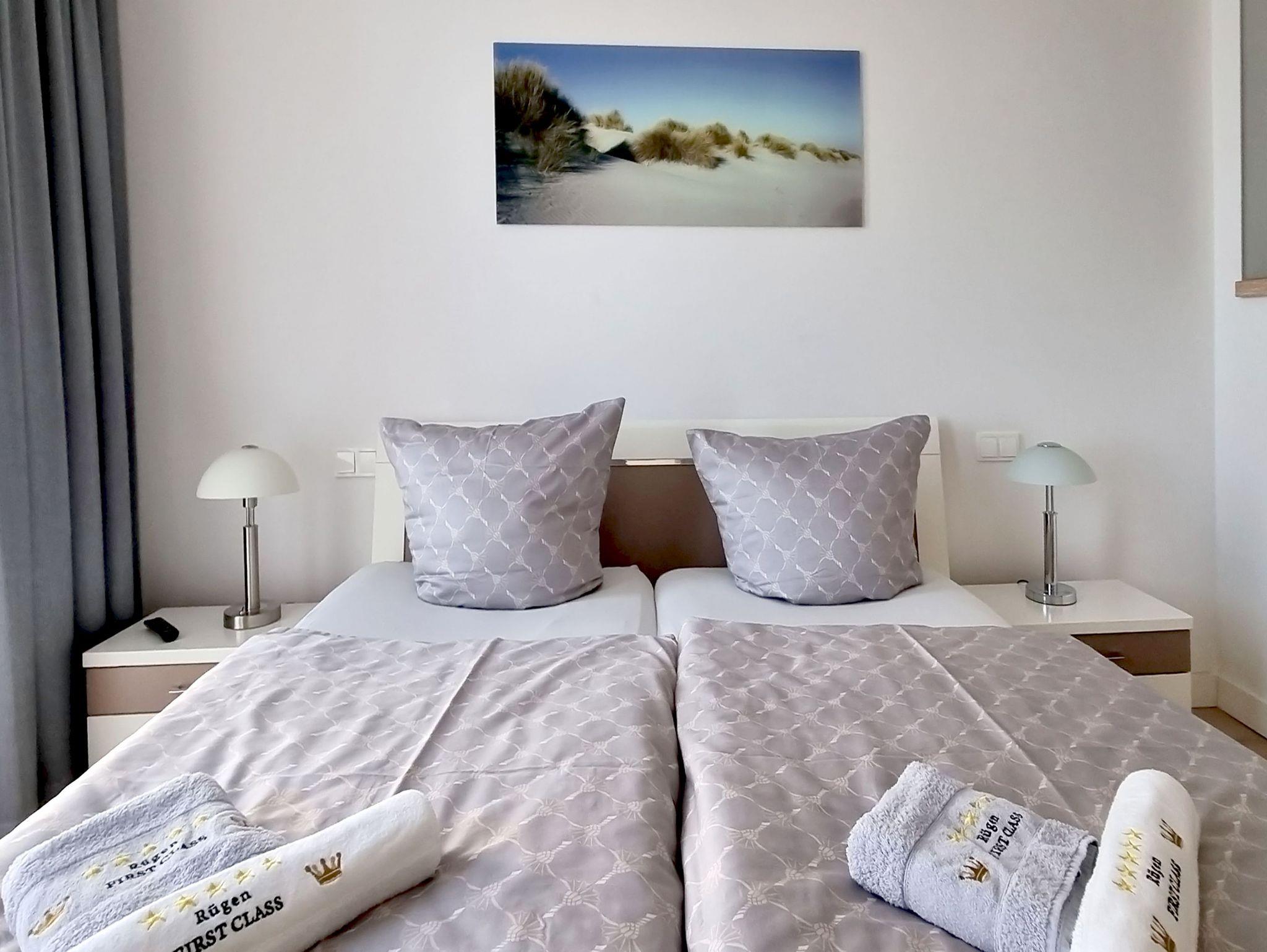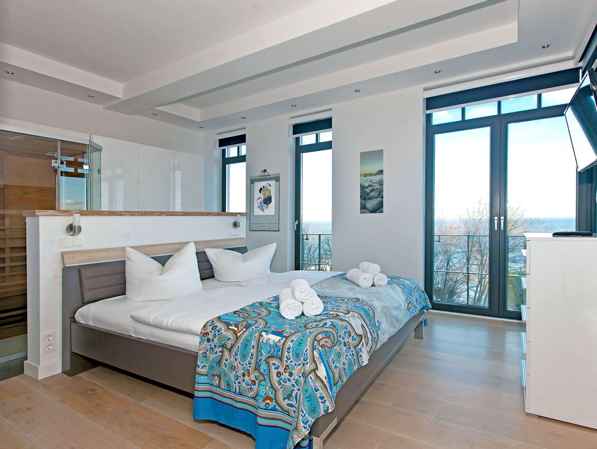 Beide Schlafzimmer - eines davon ebenfalls mit freiem Meerblick im Herbst/Winter - sind komfortabel ausgestattet und verfügen je über einen LCD-Fernseher. Ganz bequem gelangt man von den Schlafzimmern in das jeweils dazu gehörige Badezimmer. Beide modernen Duschbäder sind barrierefrei; eines ist zusätzlich mit einer Badewanne ausgestattet. Für private Wellnessfreuden steht Ihnen eine moderne Infrarotsauna zur Verfügung.
