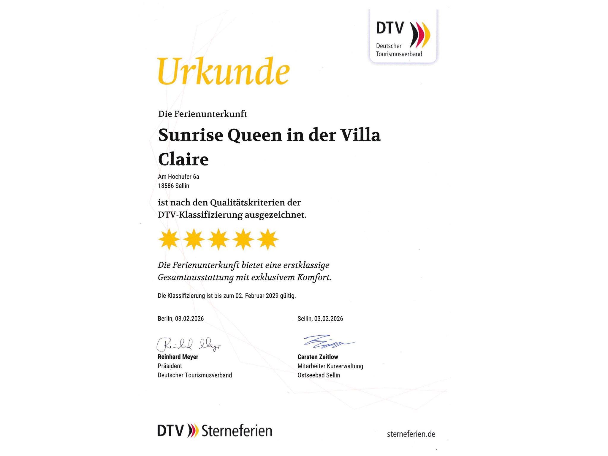Sunrise Queen ... auf stolzen 112 qm Wohnfläche erwartet Sie diese luxuriöse Meerblicksuite mit einer 5-Sterne-Ausstattung nach DTV-Klassifizierung in der 2. Etage der Villa Claire.