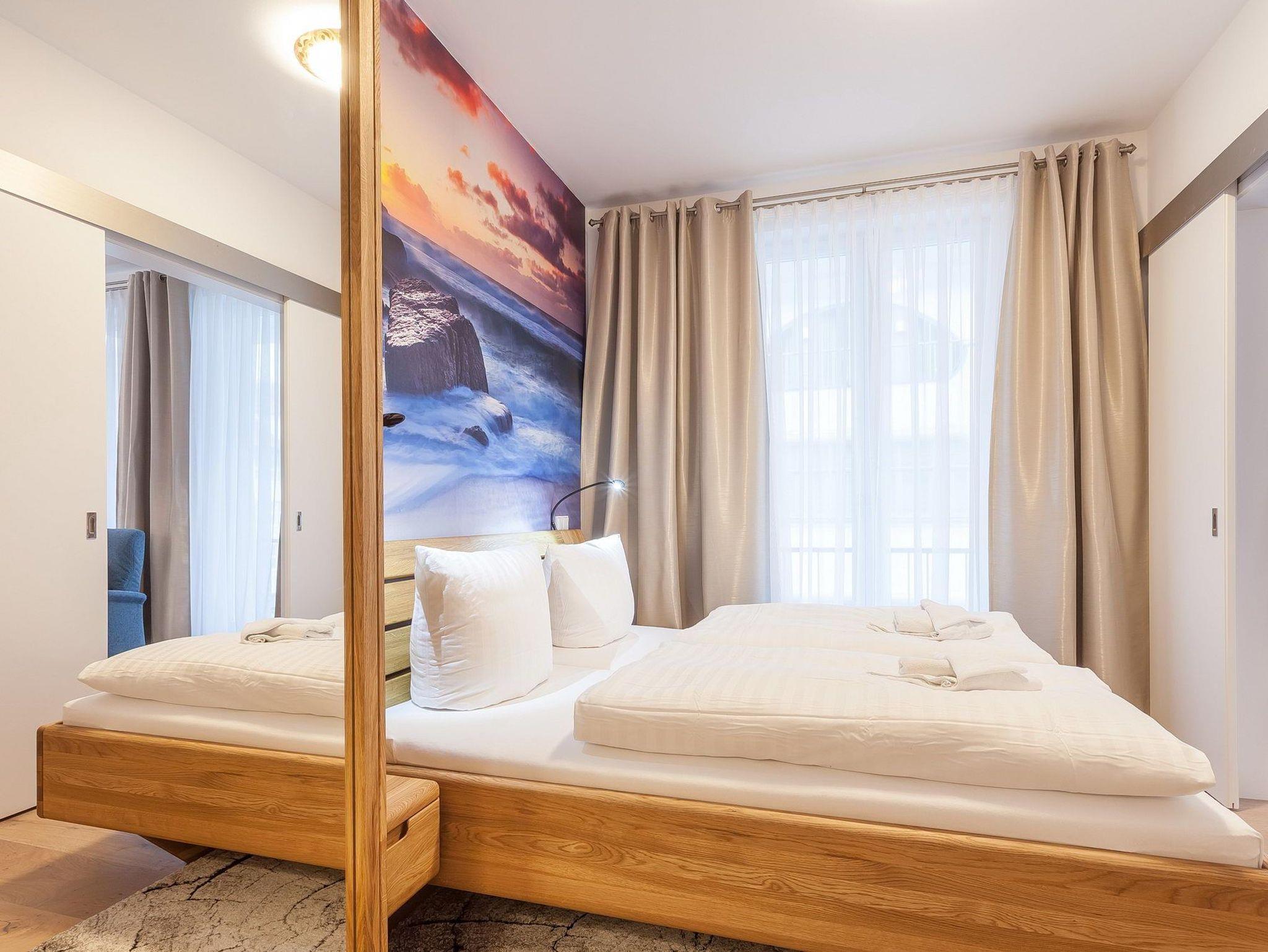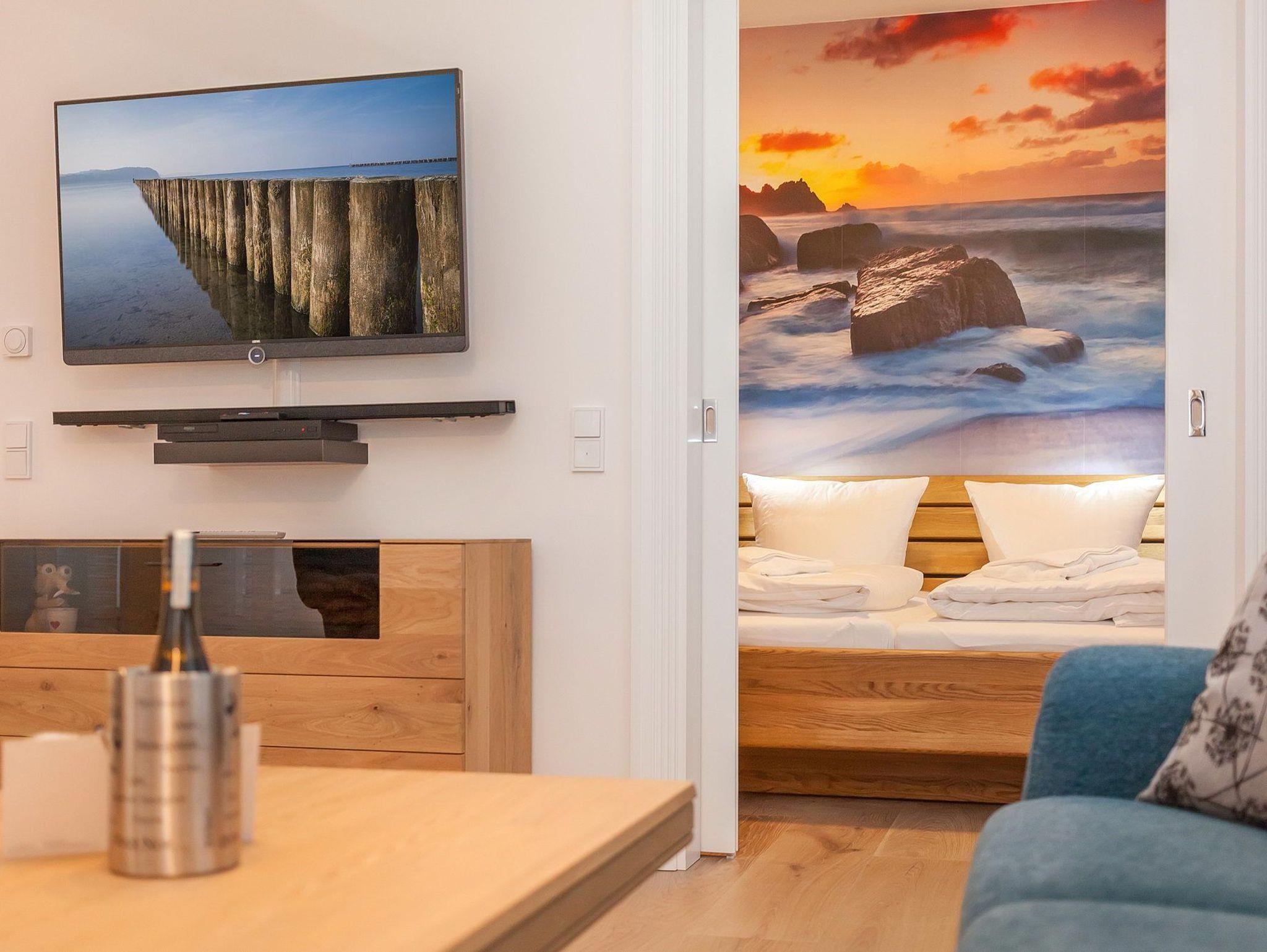 Rügenurlaub high-end! Im zweiten Obergeschoss des FIRST Sellin, mit faszinierendem Blick auf das Blau des Meeres und Sellins Flaniermeile, die Wilhelmstraße, begrüßt Sie mit Erstbezug das Appartement Wellentraum.