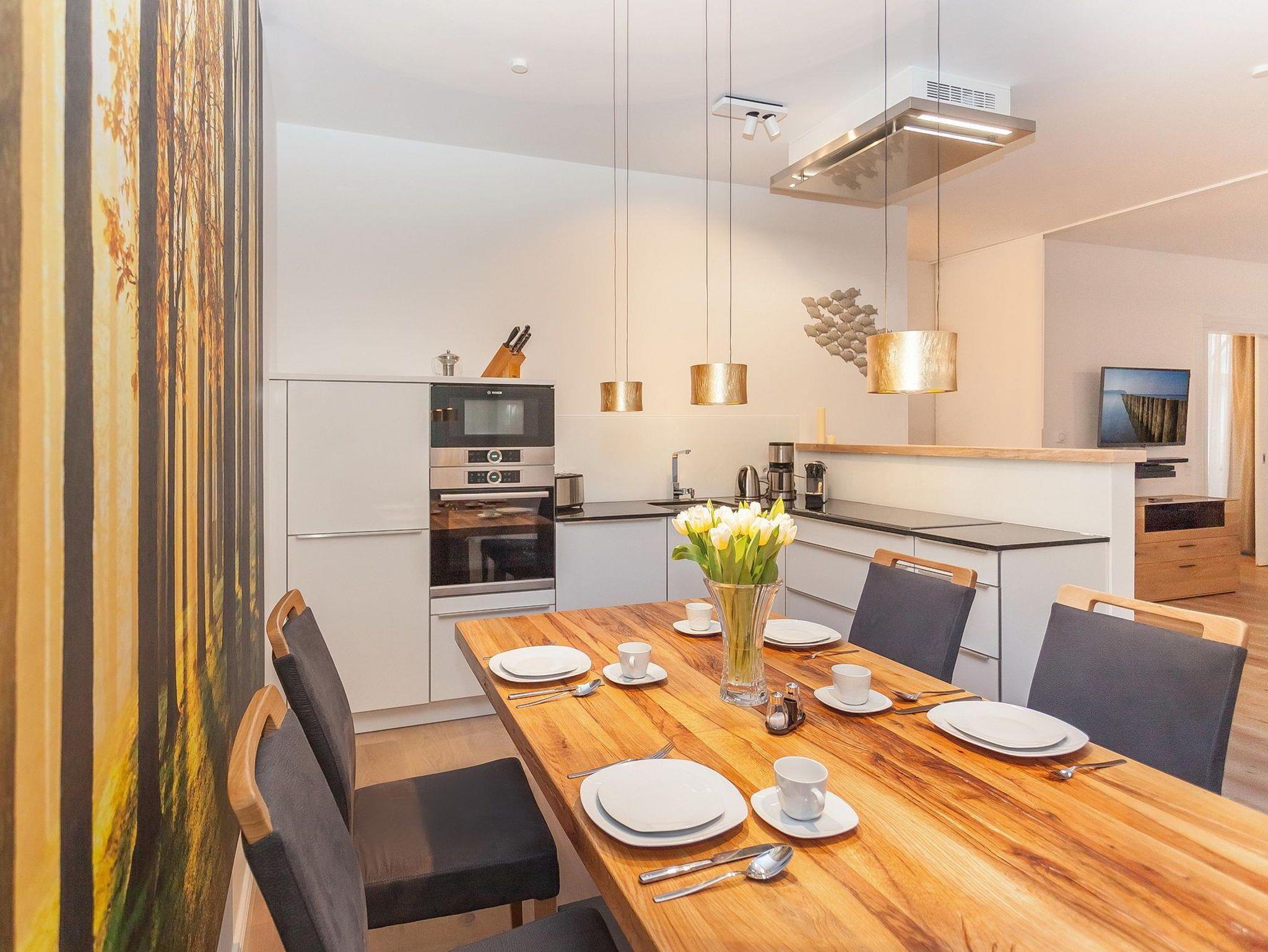 Auf rund 88 Quadratmetern Wohnfläche verwöhnt Sie Ihre Ferienwohnung mit viel Platz, einer freundlichen, lichtdurchfluteten Atmosphäre und einer Top-Ausstattung. Dazu zählen u.a. die flächendeckende Fußbodenheizung, die durchgehend exklusive Möblierung, die überaus geschmackvollen Dekorationen, die überdachte Meerblick-Loggia und natürlich auch die hochwertige TV- und Unterhaltungstechnik inklusive kostenfreiem W-LAN. Wohin man auch schaut, überall sieht und spürt man den erlesenen Stil und die Liebe, mit der das Appartement von seinen Besitzern eingerichtet wurde.