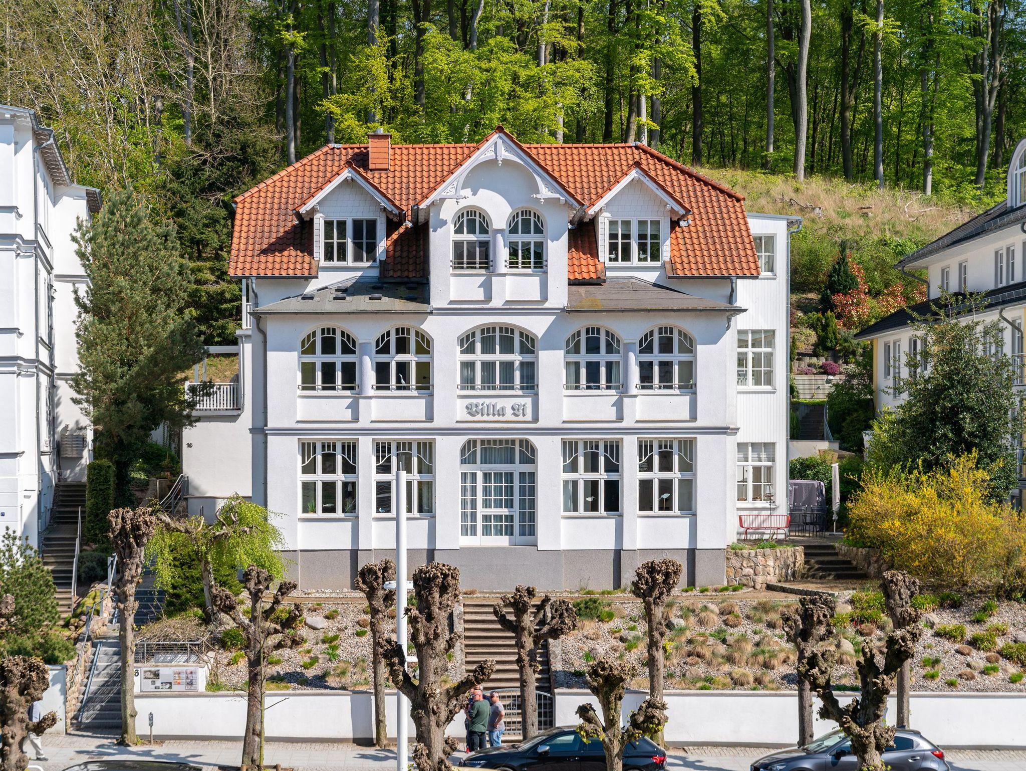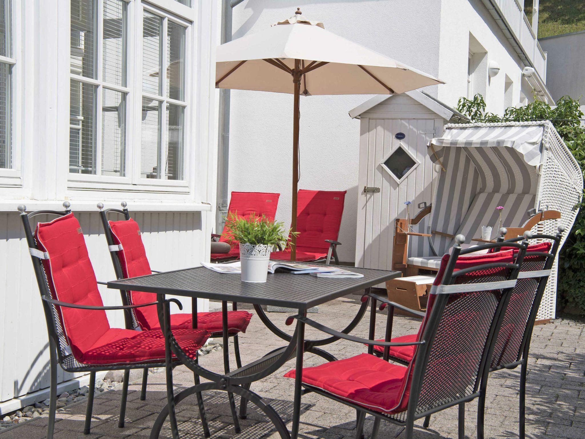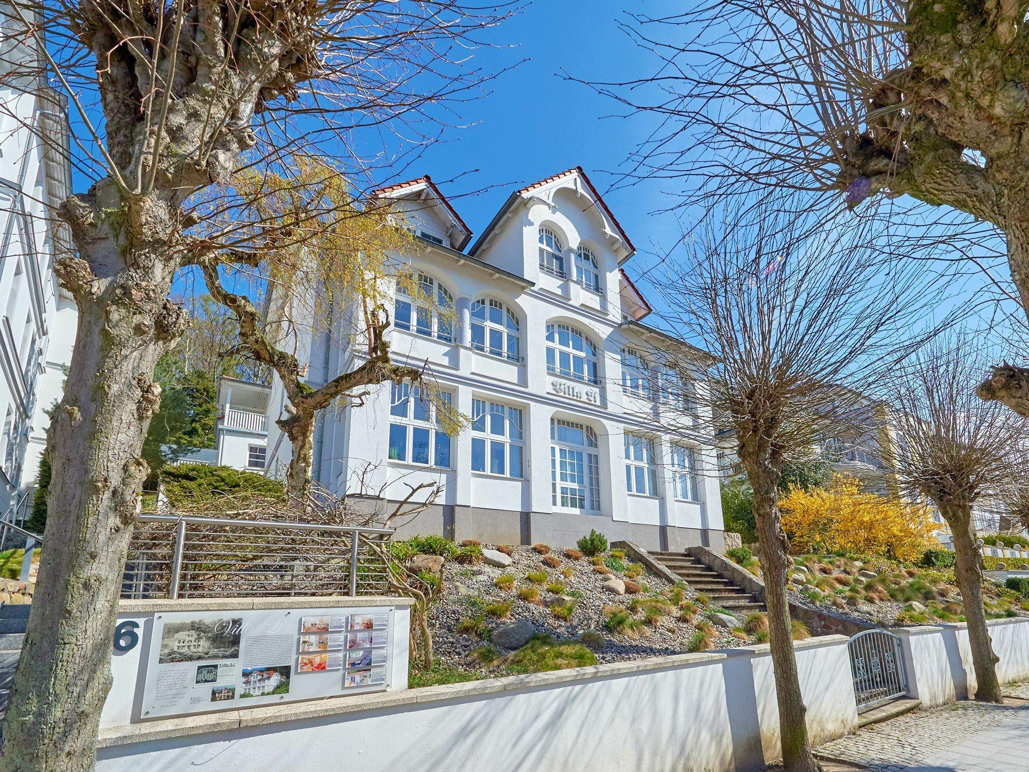 Dieses rund 76 m² große 3-Raum-Appartement begrüßt Sie im Hochparterre der Villa Li. Gut 4 Meter erhöht über der Wilhelmstraße thront die ca. 30 m² große Süd-Westterrasse Ihres Urlaubsdomizils, möbliert mit Tisch, Stühlen und Liegen sowie einem Strandkorb in exklusiver Ausstattung. Von hier aus genießen Sie einen hervorragenden Blick auf die Wilhelmstrasse und den gegenüberliegenden Friedensberg.