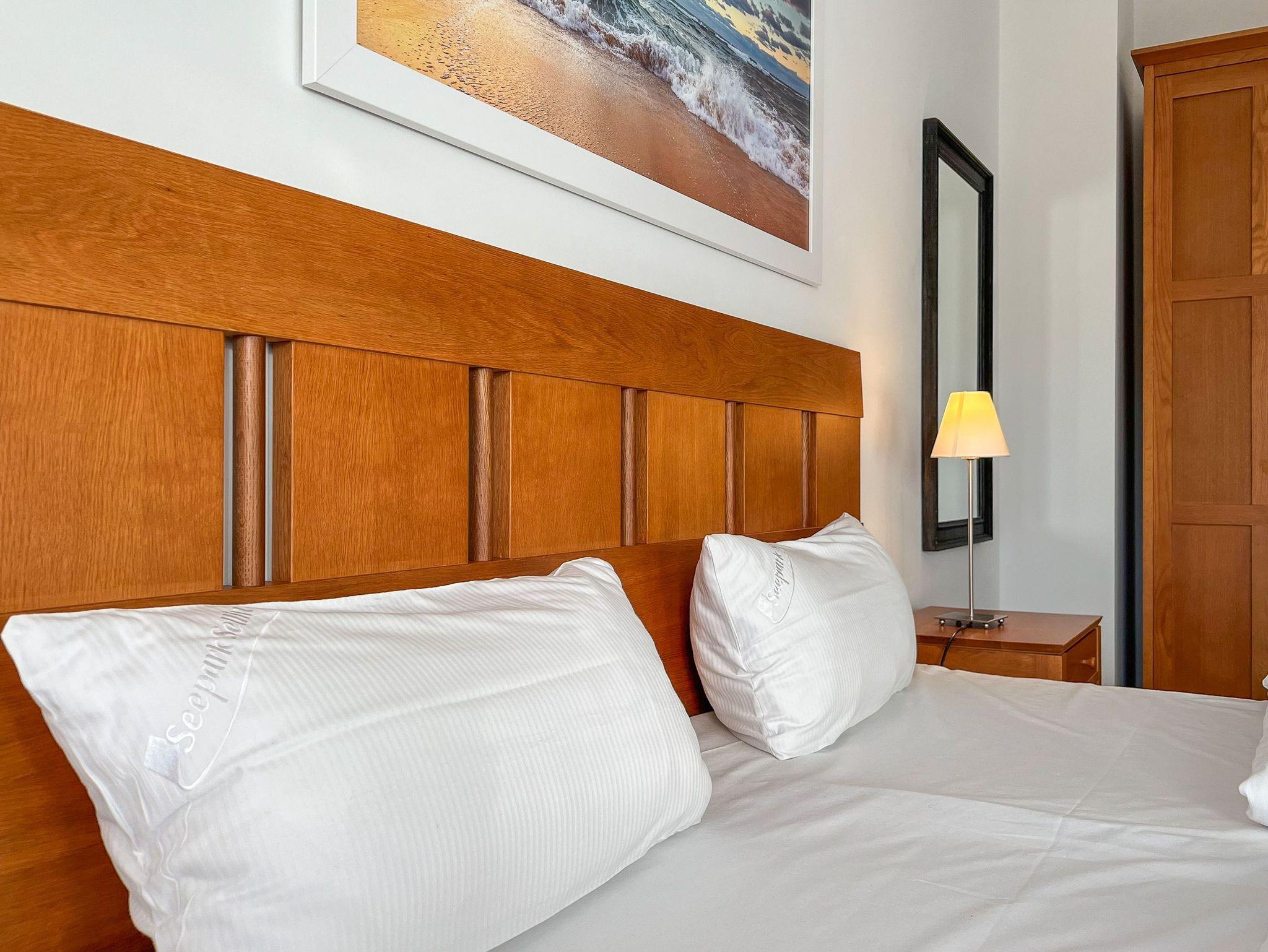 Die beiden Schlafzimmer sind mit Verdunklungsmöglichkeiten ausgestattet, haben jeweils ein Doppelbett und in einem Schlafzimmer kommen Sie zudem in den Genuss eines Fernsehers.