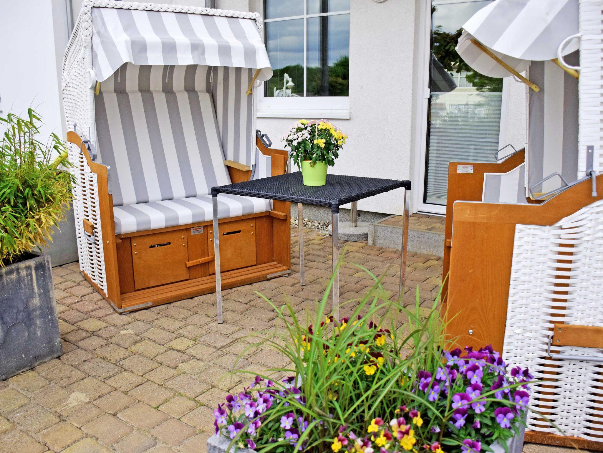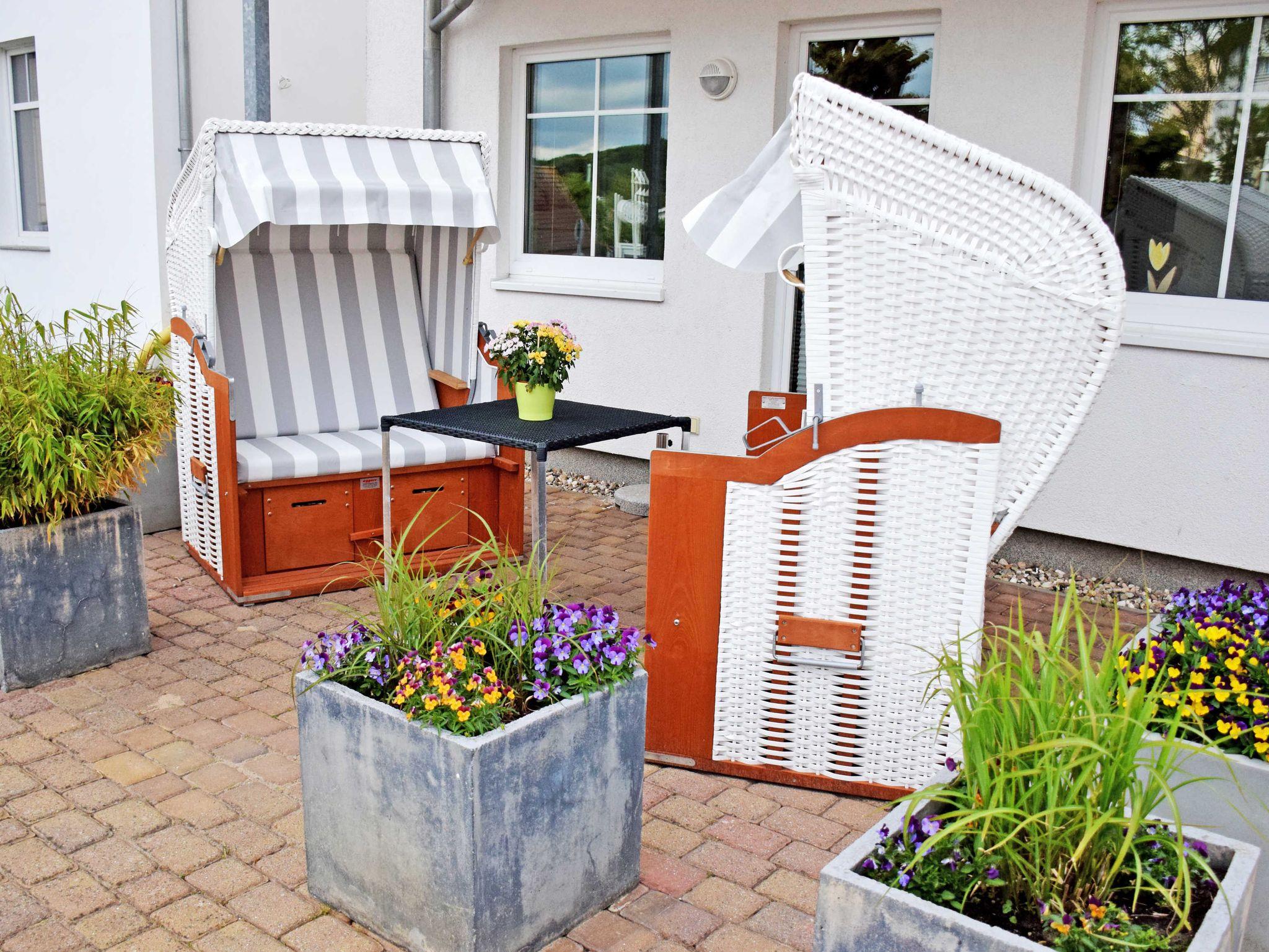 Modernes Appartementhaus Greta in Sellin mit Terrasse und Strandkorb nahe Ostseestrand.