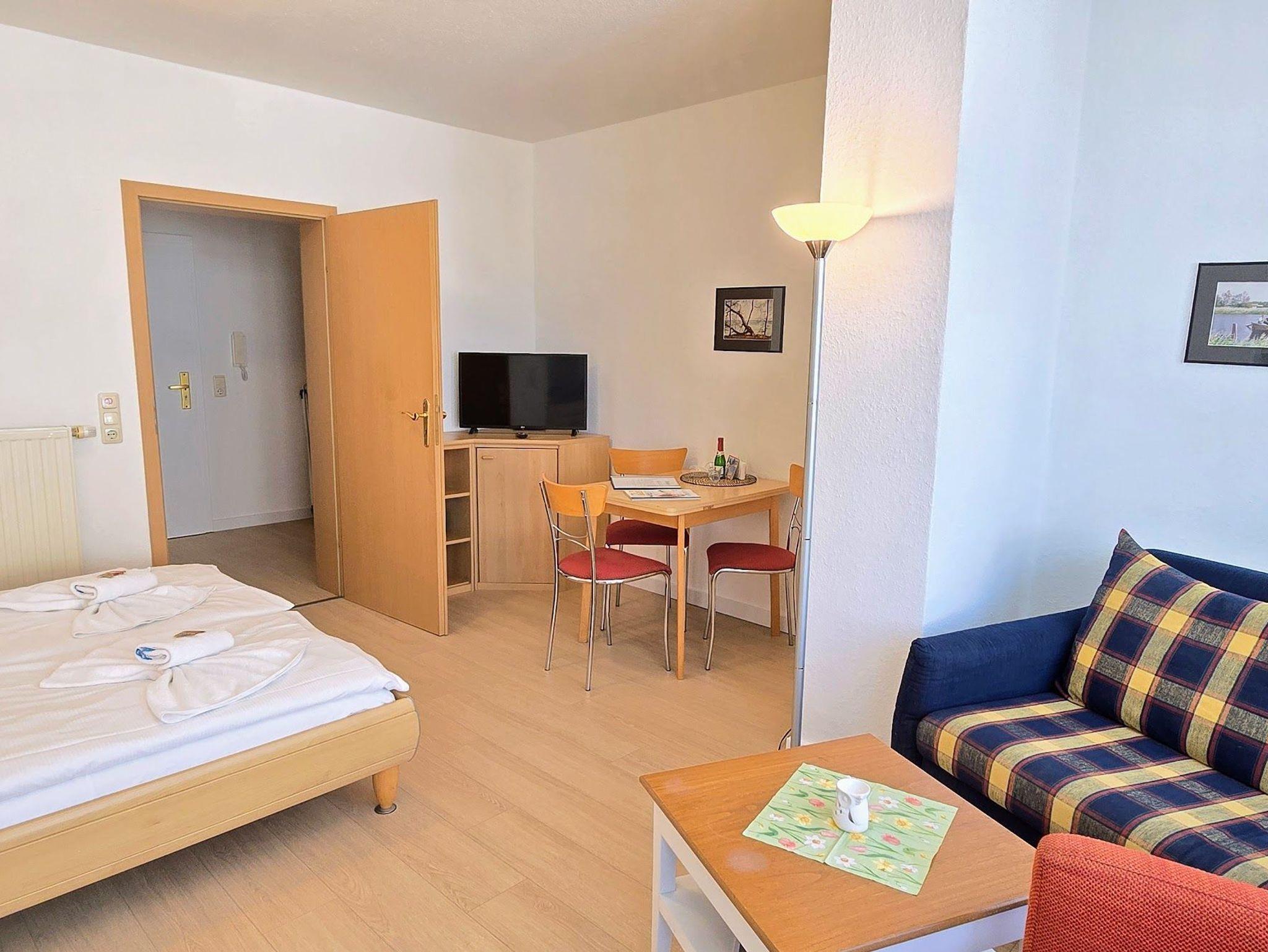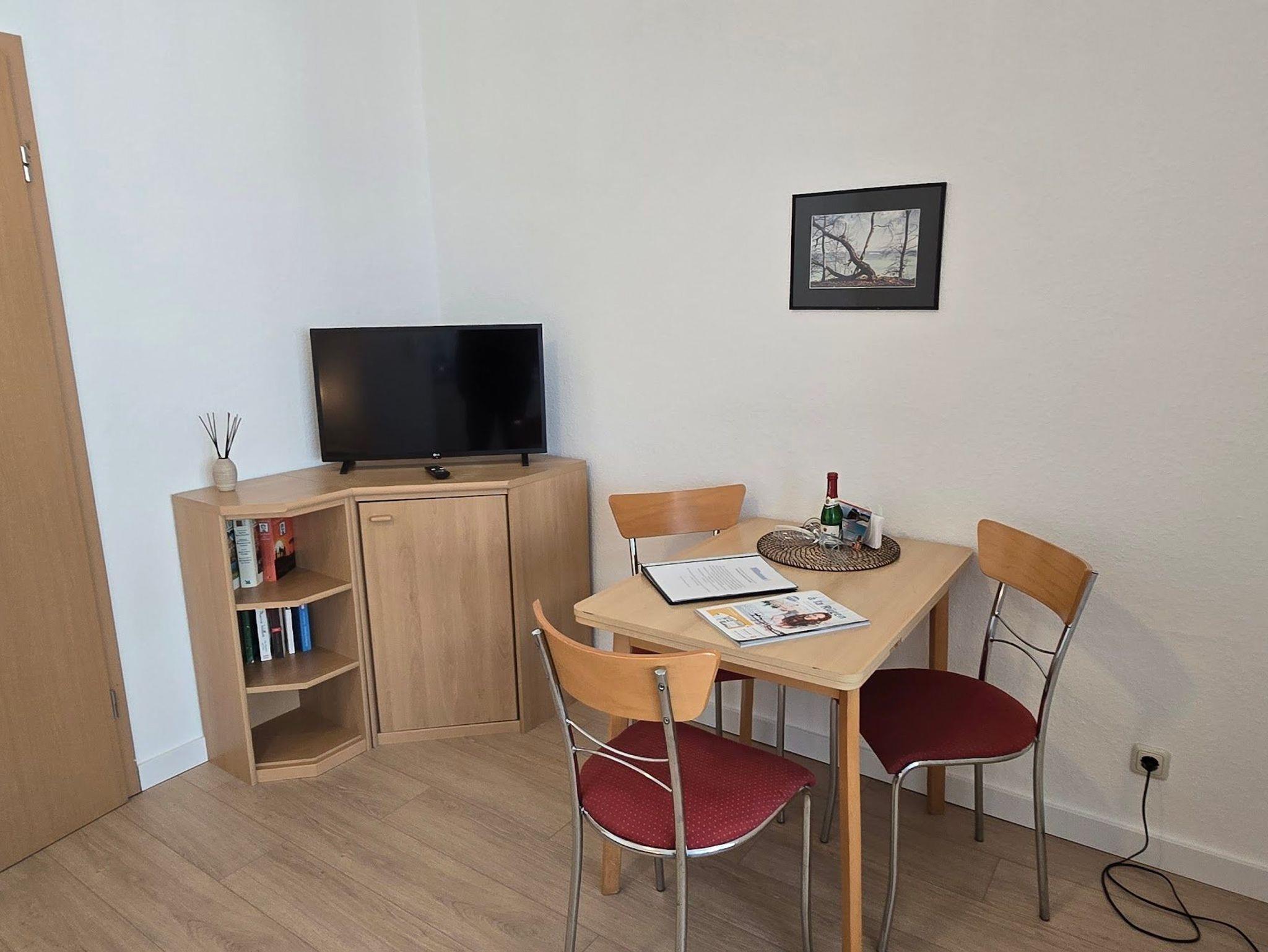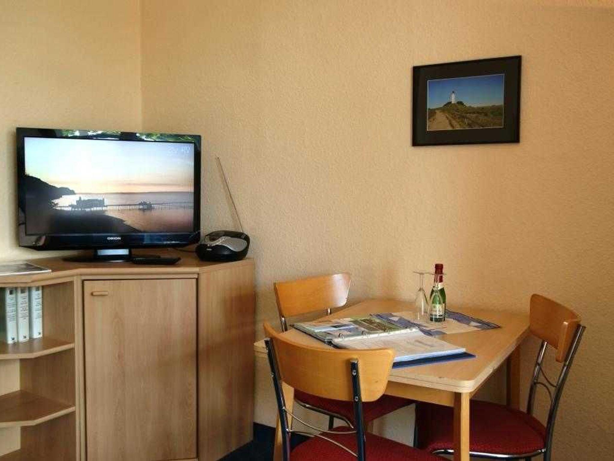 Das 1 Raum Appartement im 3. Stock mit Wohn-Schlafraum und Doppelbett für 2 Personen , Esstisch, Kabel-TV,CD Stereoanlage , gut ausgestattete Küchenzeile mit Geschirrspüler, Kaffeemaschine, Toaster und Microwelle. Babybett ( ohne Wäsche )und Hochstuhl für die Kleinen stellen wir gegen Gebühr zur Verfügung ( bitte vorbestellen ) .