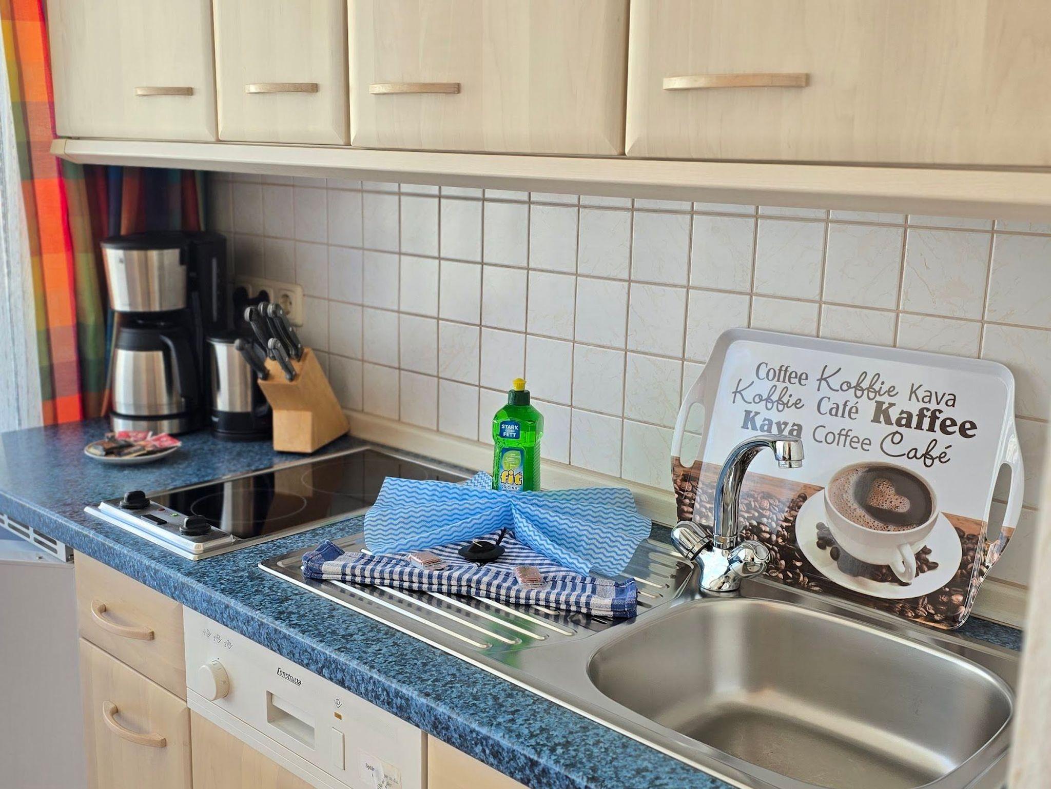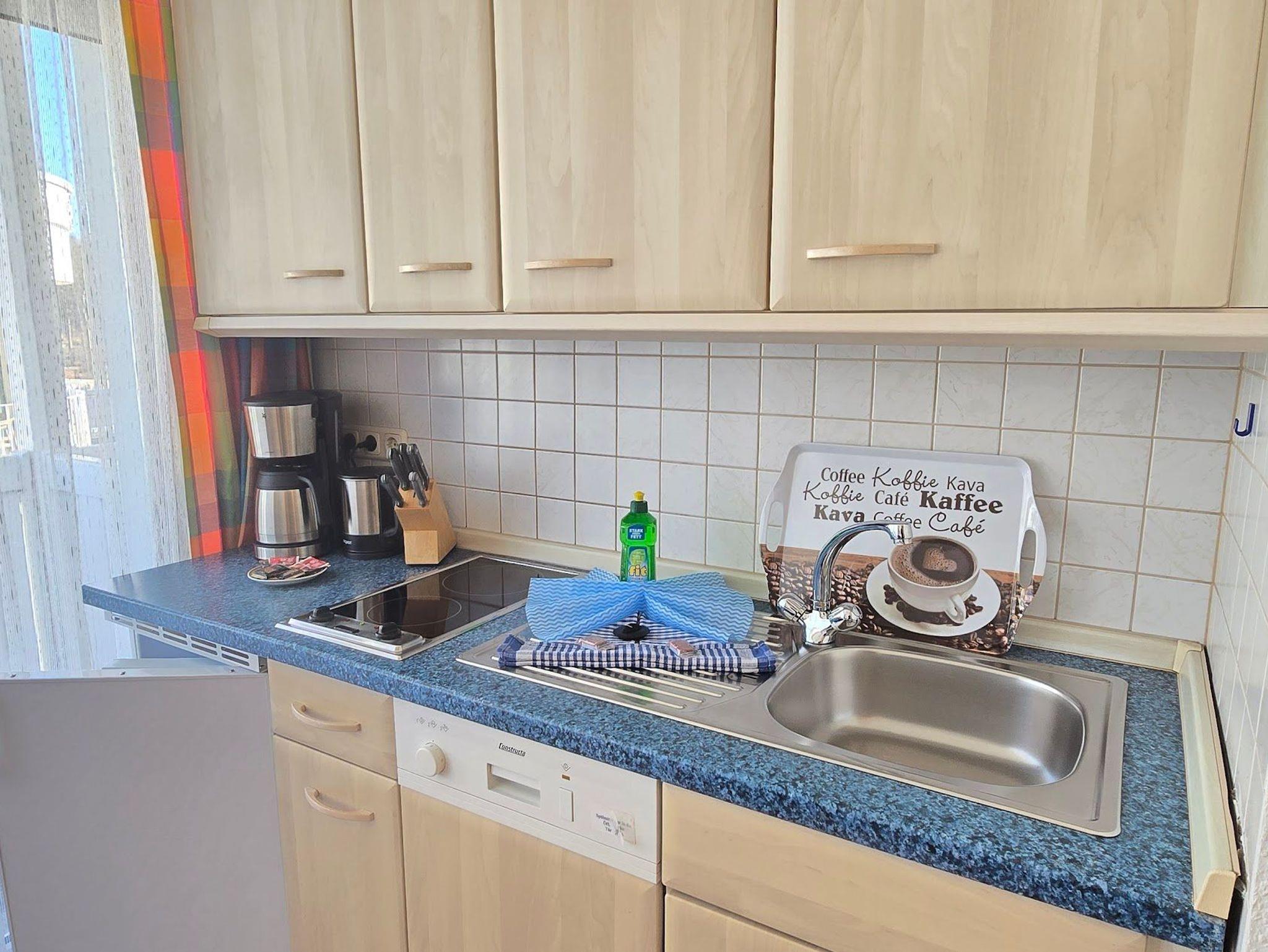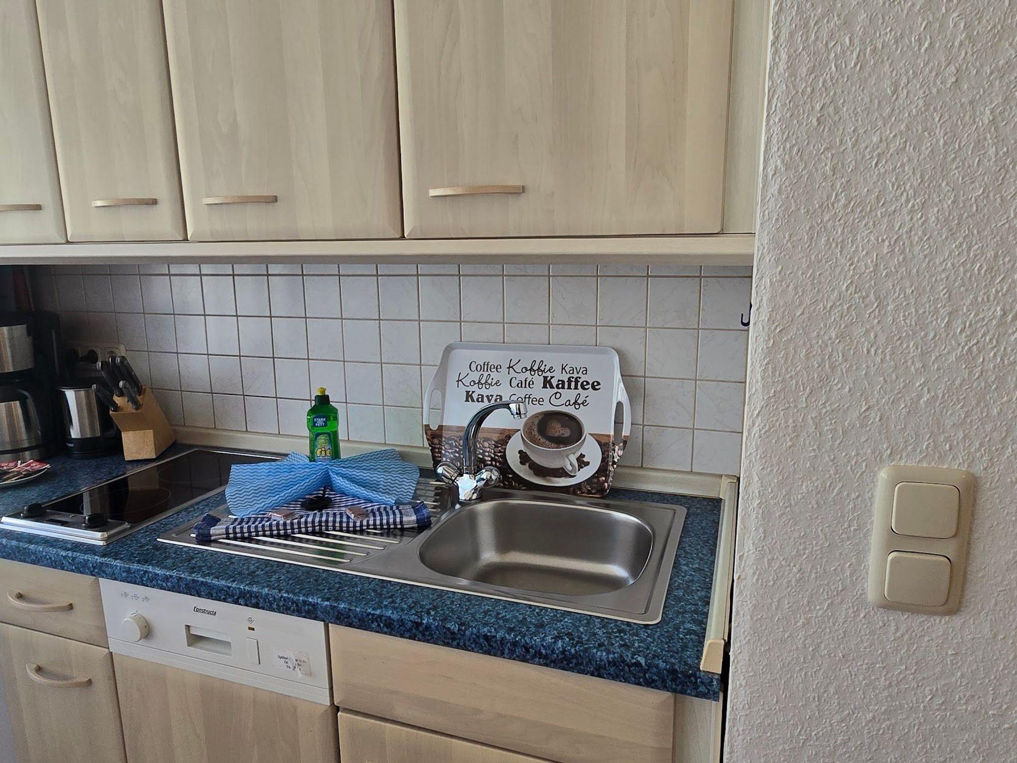 Das 1 Raum Appartement im 3. Stock mit Wohn-Schlafraum und Doppelbett für 2 Personen , Esstisch, Kabel-TV,CD Stereoanlage , gut ausgestattete Küchenzeile mit Geschirrspüler, Kaffeemaschine, Toaster und Microwelle. Babybett ( ohne Wäsche )und Hochstuhl für die Kleinen stellen wir gegen Gebühr zur Verfügung ( bitte vorbestellen ) .